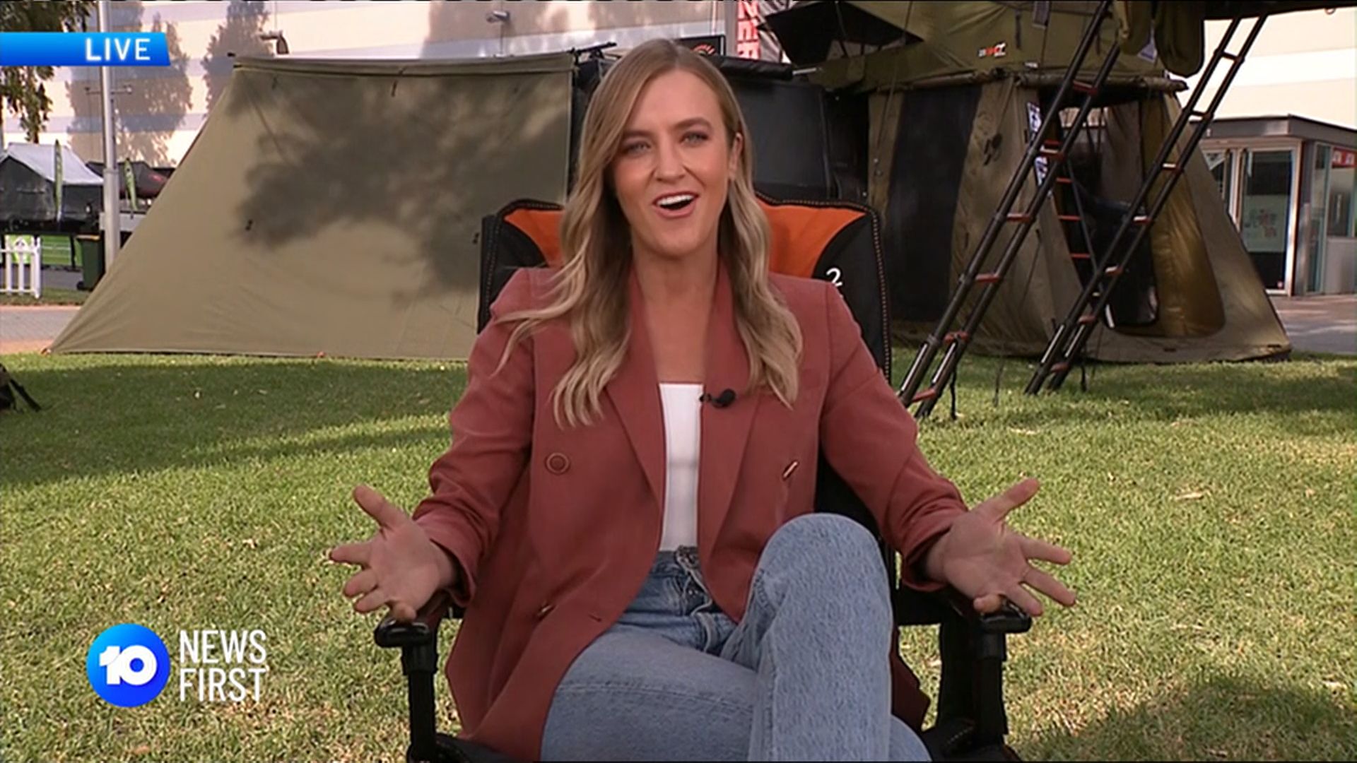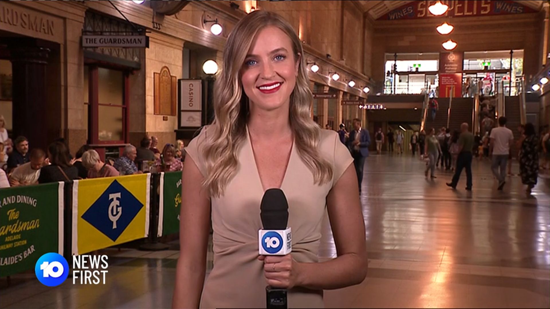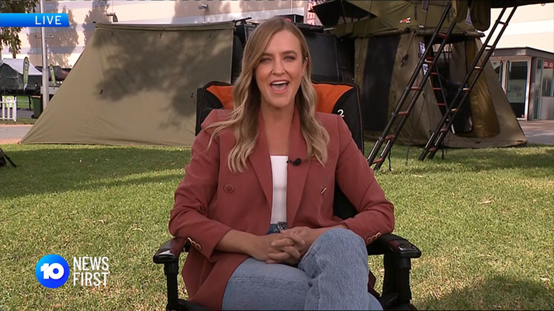 That's Rebecca Morse on the far left in the group photo. (Reads the news for 10 in Adelaide). She looks to have a huge camel toe in that swimsuit.
