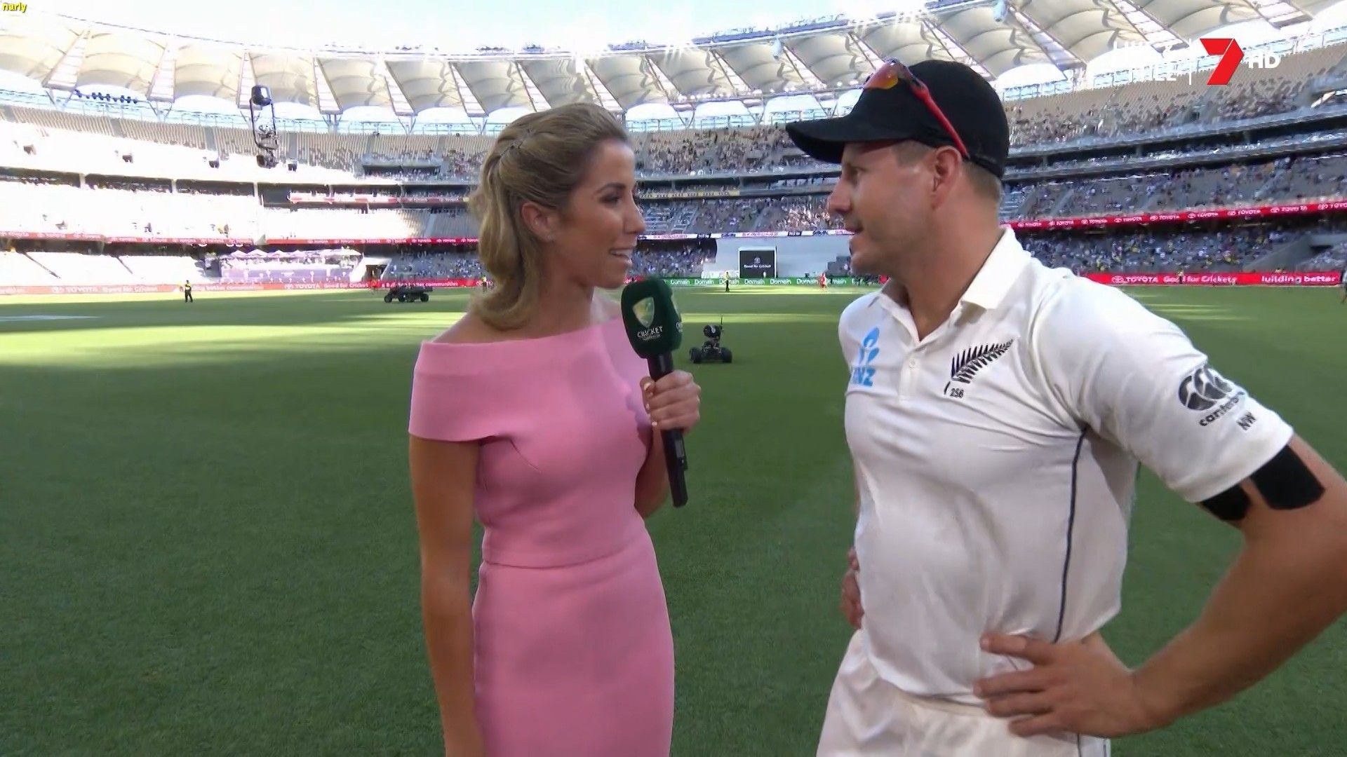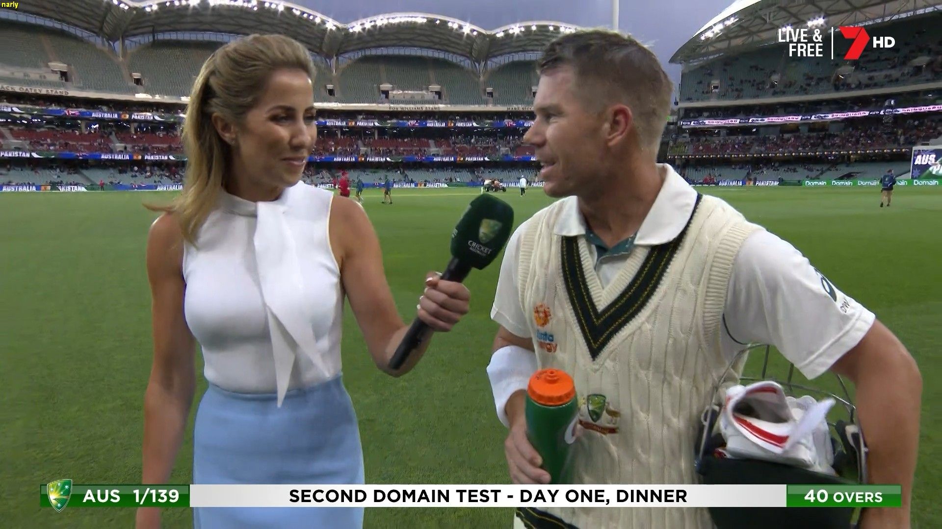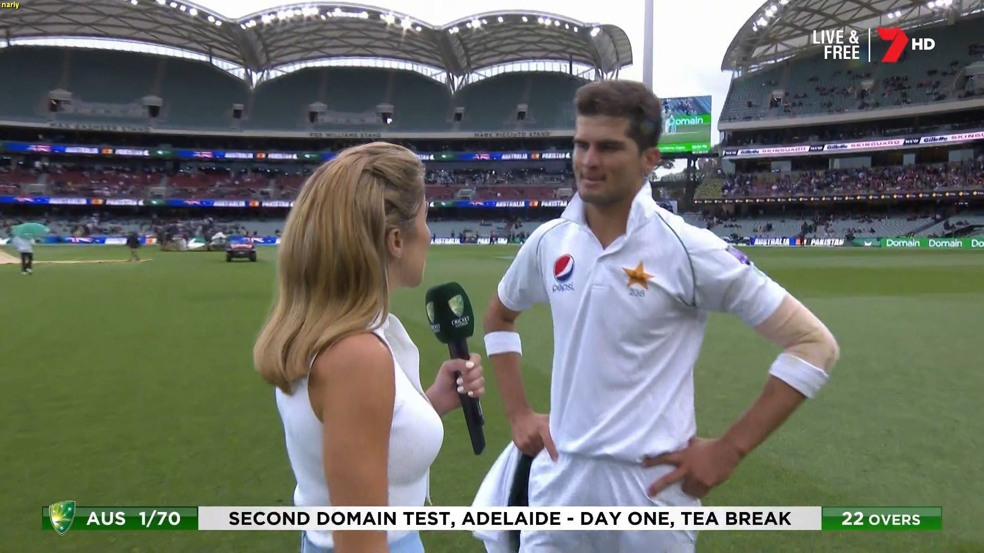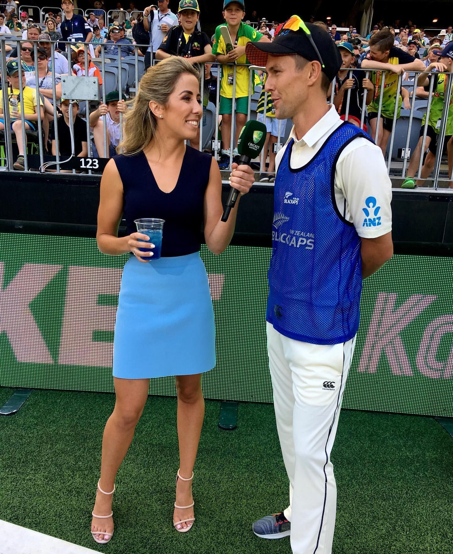 Looked smiling hot during the cricket today in the tight white top!