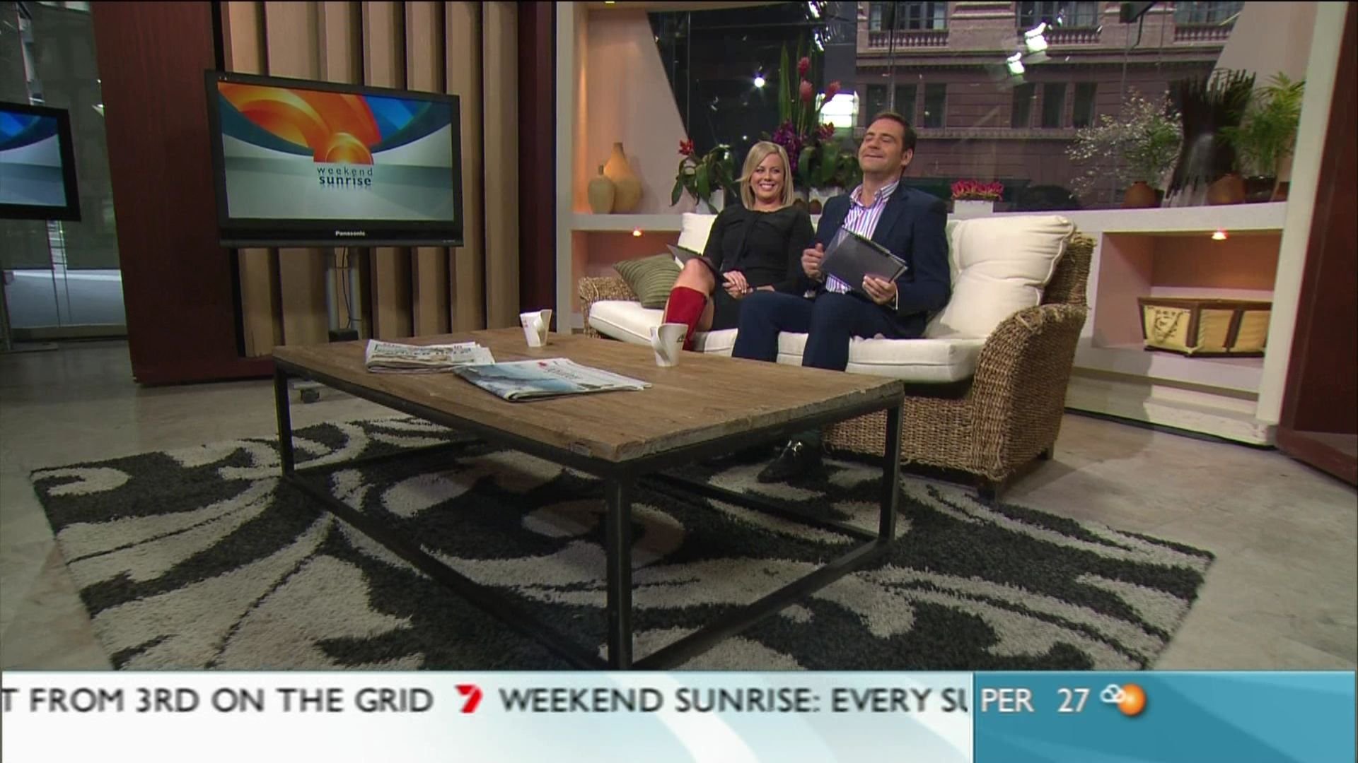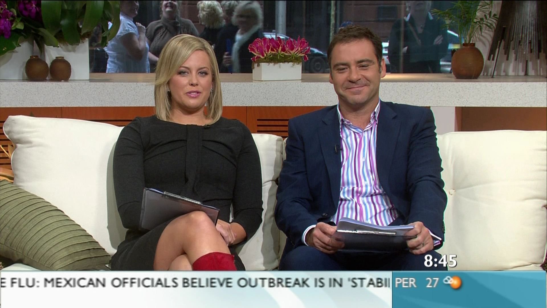 Sam looked absolutely stunning this morning, Leopard print really suites her, thats the best she has looked in quite sometime. Has anyone got a video of her and mark barretta singing "build me up buttercup" thanks for caps.