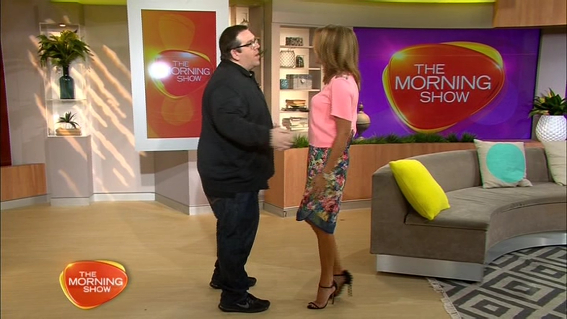 narly wrote: I've walked out the door , 3 & 1/2 hours before it's on so it's not even on in the background & I flick through it when i get home. I check the website during the day in case there's heads up of a boob falling out or she forgot to put her undies on when she cart wheels across the studio  The boob usually falls onto the couch next to her, he's called Larry