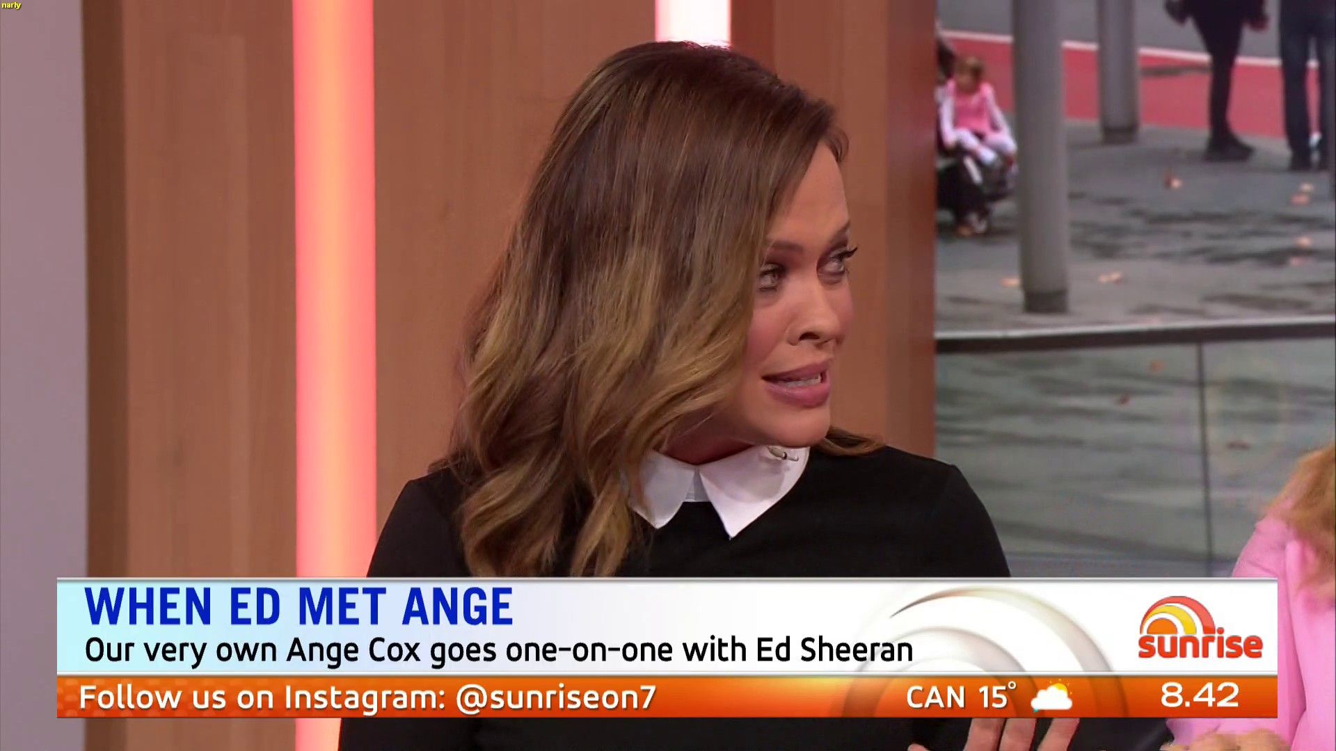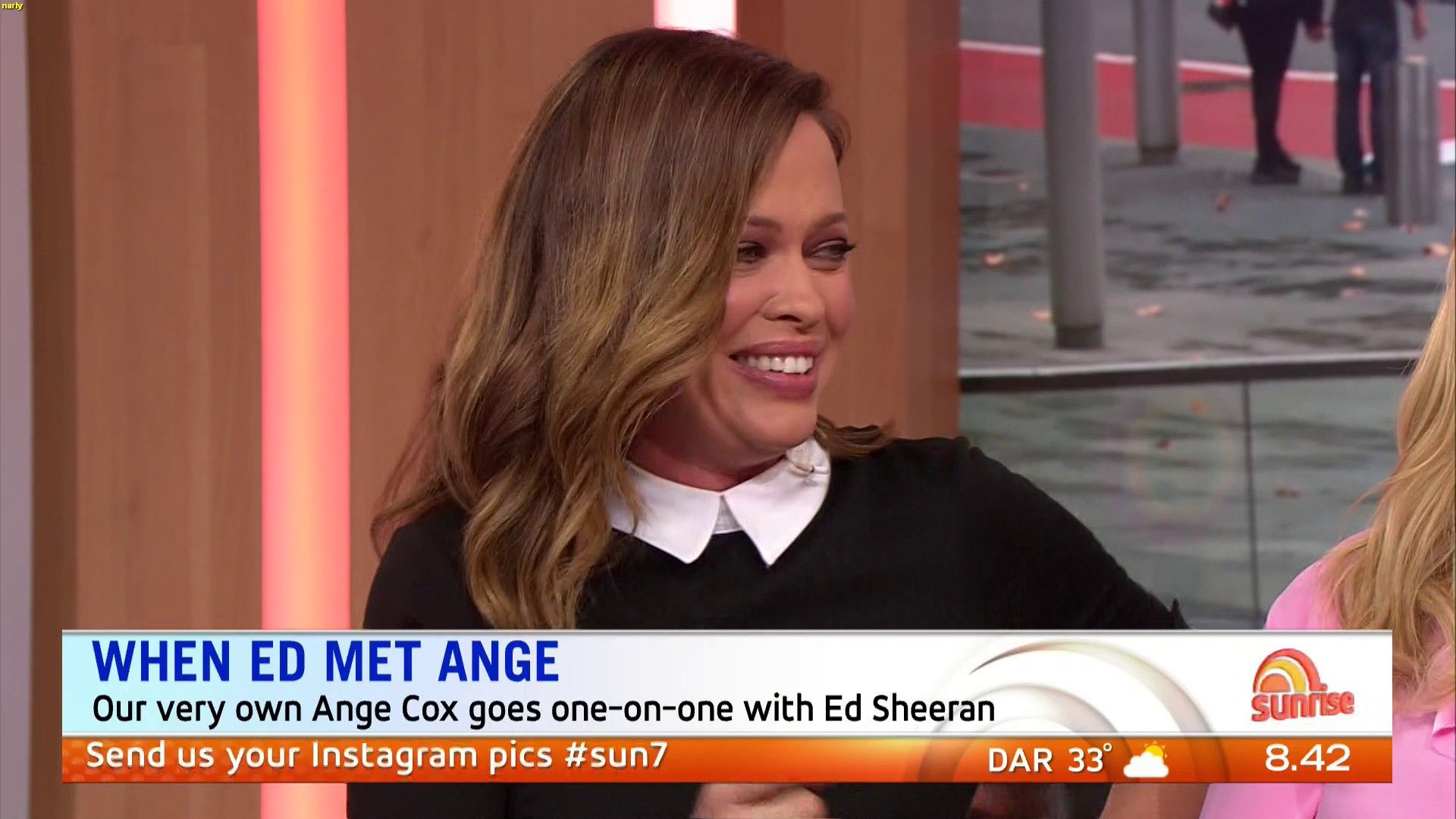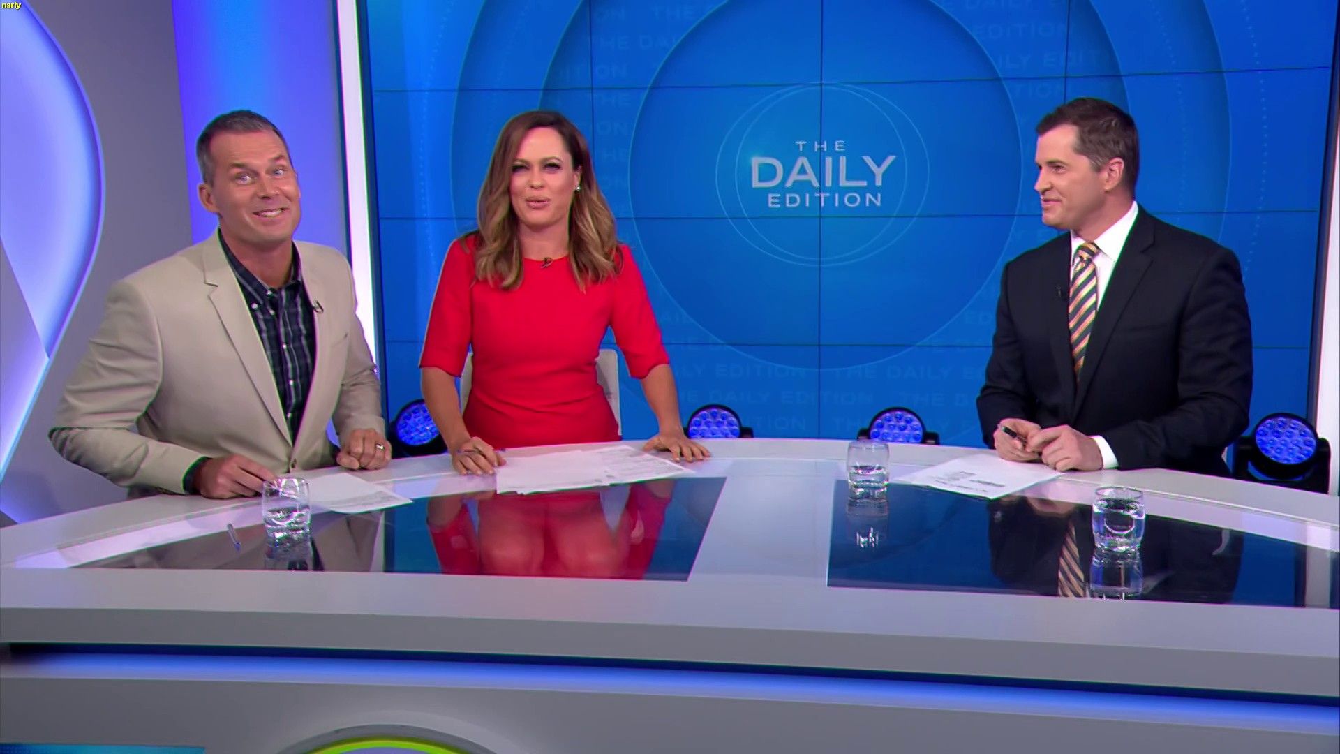 Traveltime wrote: what is wrong with ange??????? sitting there today with a skirt covering her knees and holding a piece of paper (upside down) over her knees  Yeah , she seems very concious of showing any leg , yet by doing the paper thing it just makes it more obvious