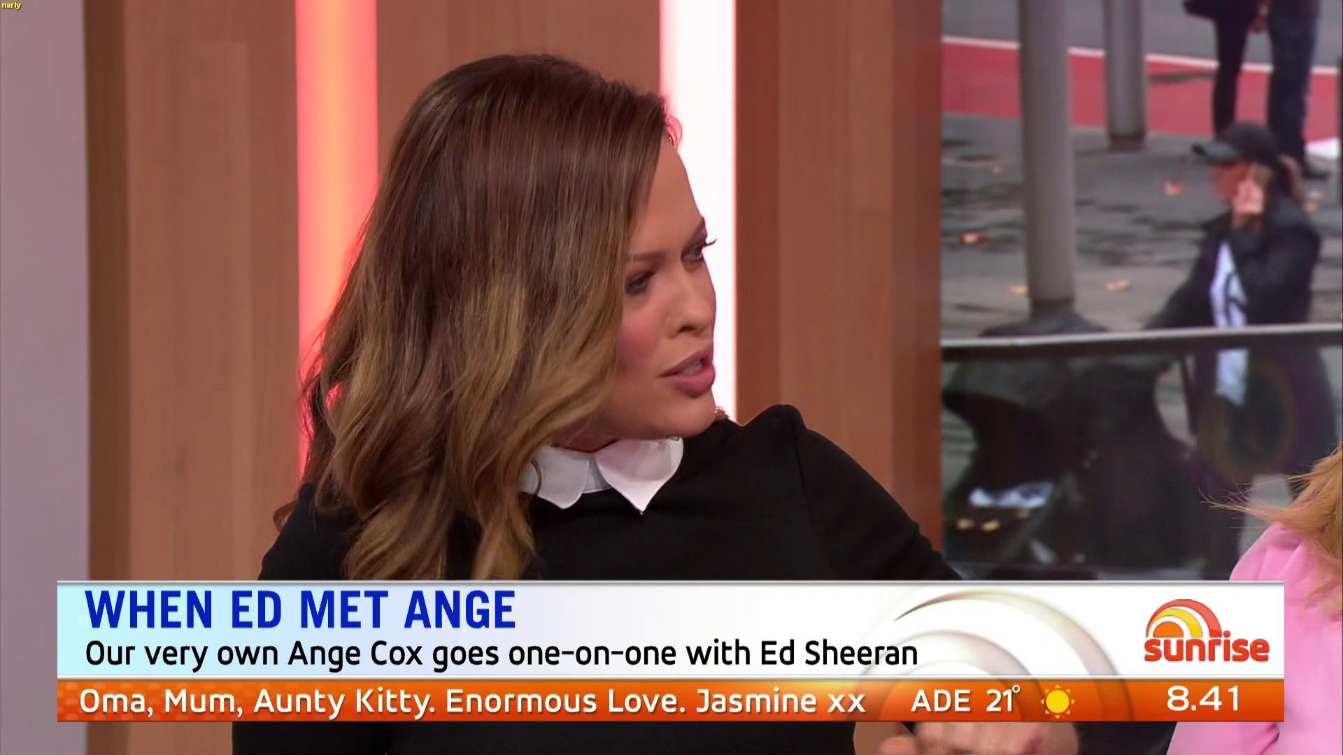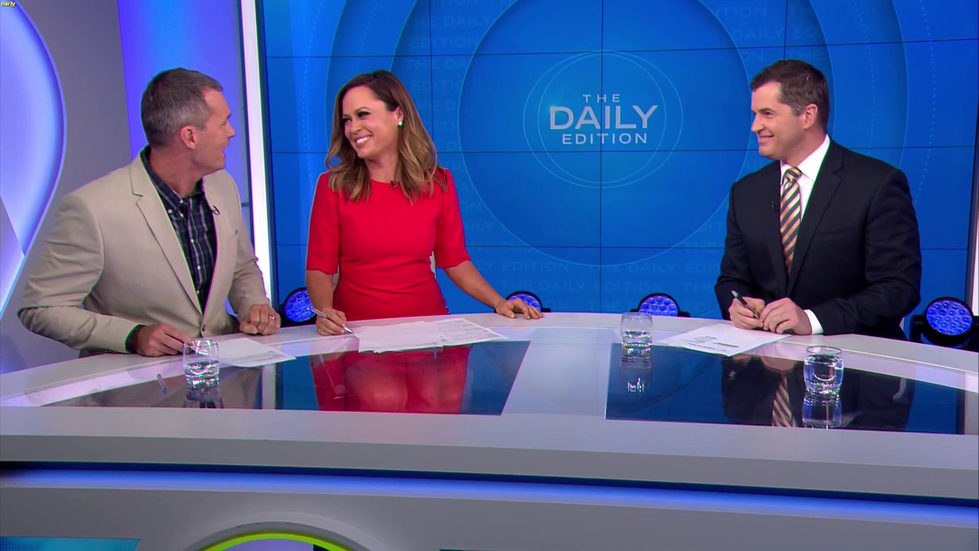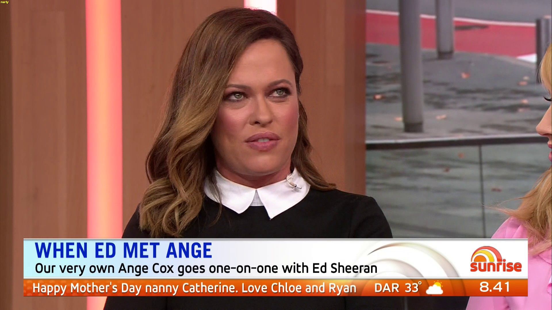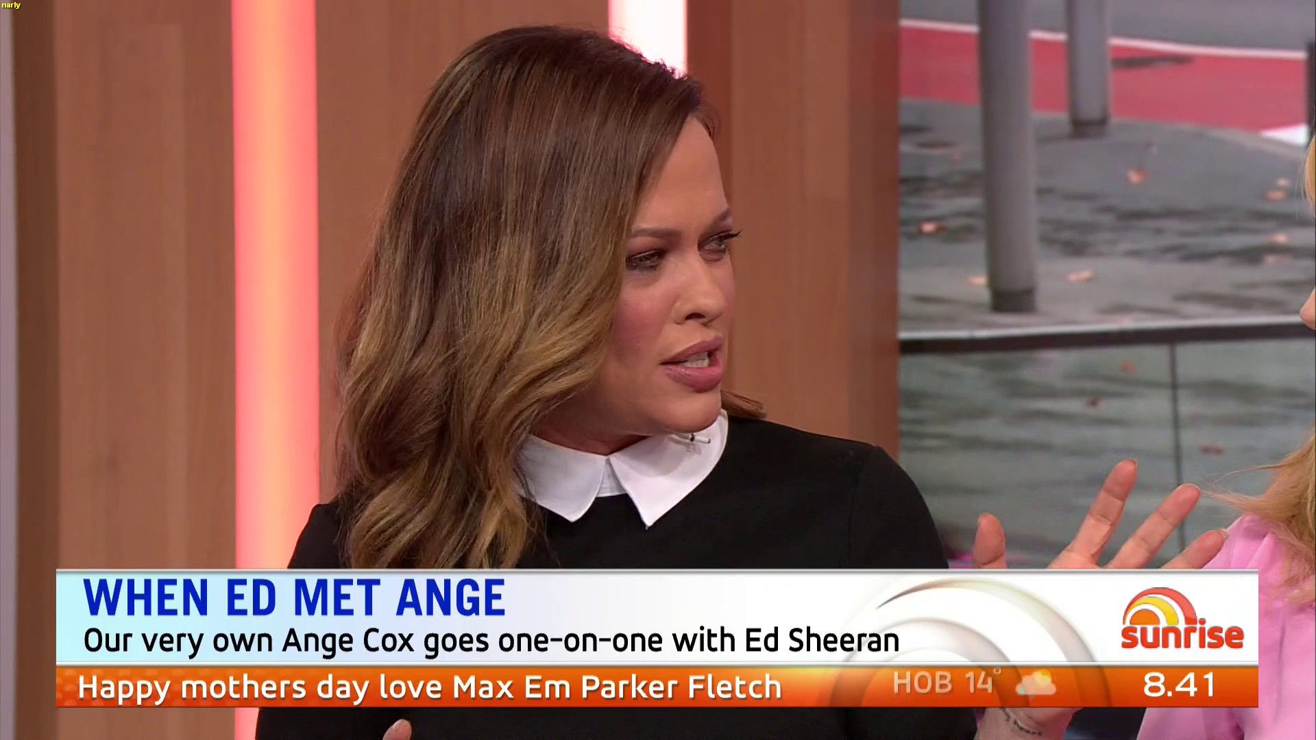 Traveltime wrote: what is wrong with ange??????? sitting there today with a skirt covering her knees and holding a piece of paper (upside down) over her knees  Yeah , she seems very concious of showing any leg , yet by doing the paper thing it just makes it more obvious