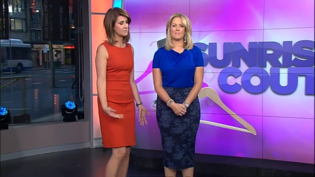 Sam, unfortunately, is in no win situation. Dress more sexy and there's a barrage of negative comments about her size and dressing appropriately from the press & social media at large. Dress more conservatively and she's criticised for being 'frumpy & boring'. If you look at the caps over the past few weeks, I think you will see as many leggy, short skirt caps as you will see what is being slammed here as boring 'Mel Doyle' like attire. As for the constant attempts to pull her skirts down, I've no doubt this is to avoid showing off her rather unflattering spanks, which are worn by pretty much all the women on TV wearing figure hugging dresses/skirts.
