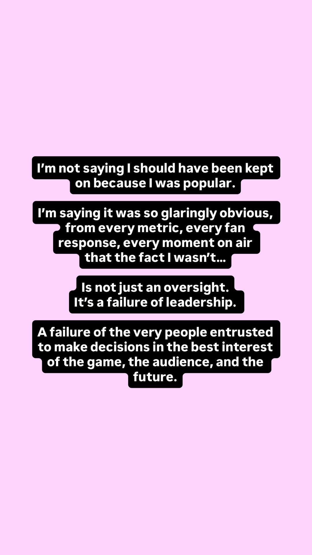 "Imagine what my presence alone could have done for the future of the game."