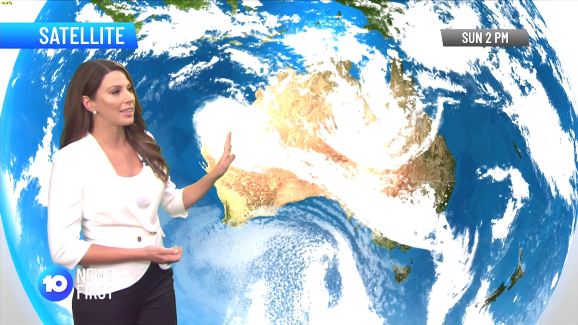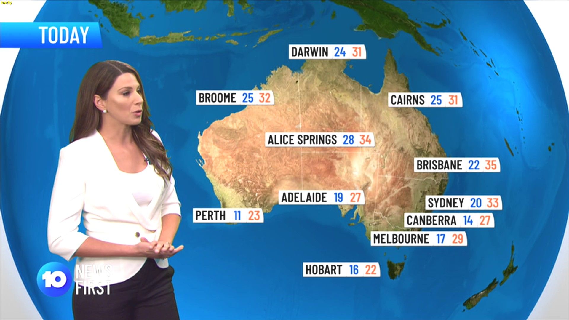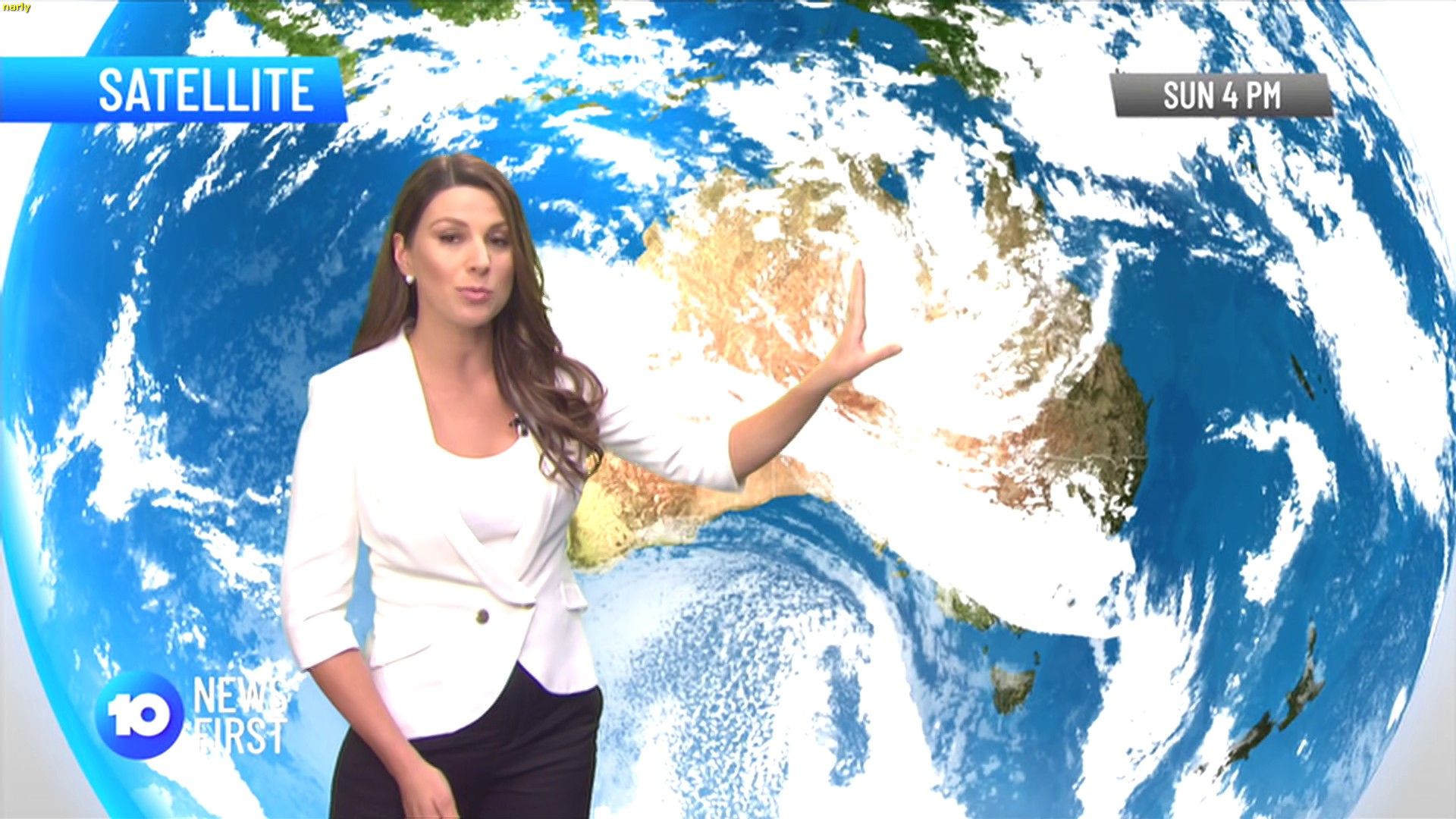 Amanda Jason looking completely rootable tonight in a white jumper  You have to hate the way Ch10 pulls right back and gets a full 12ft wall into the picture. No more close ups