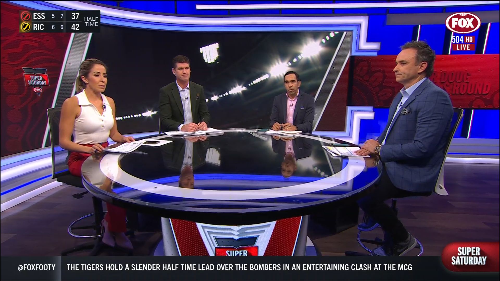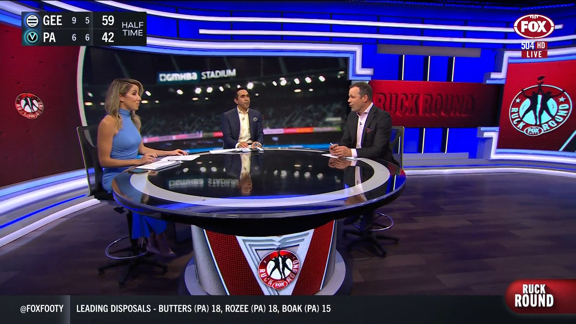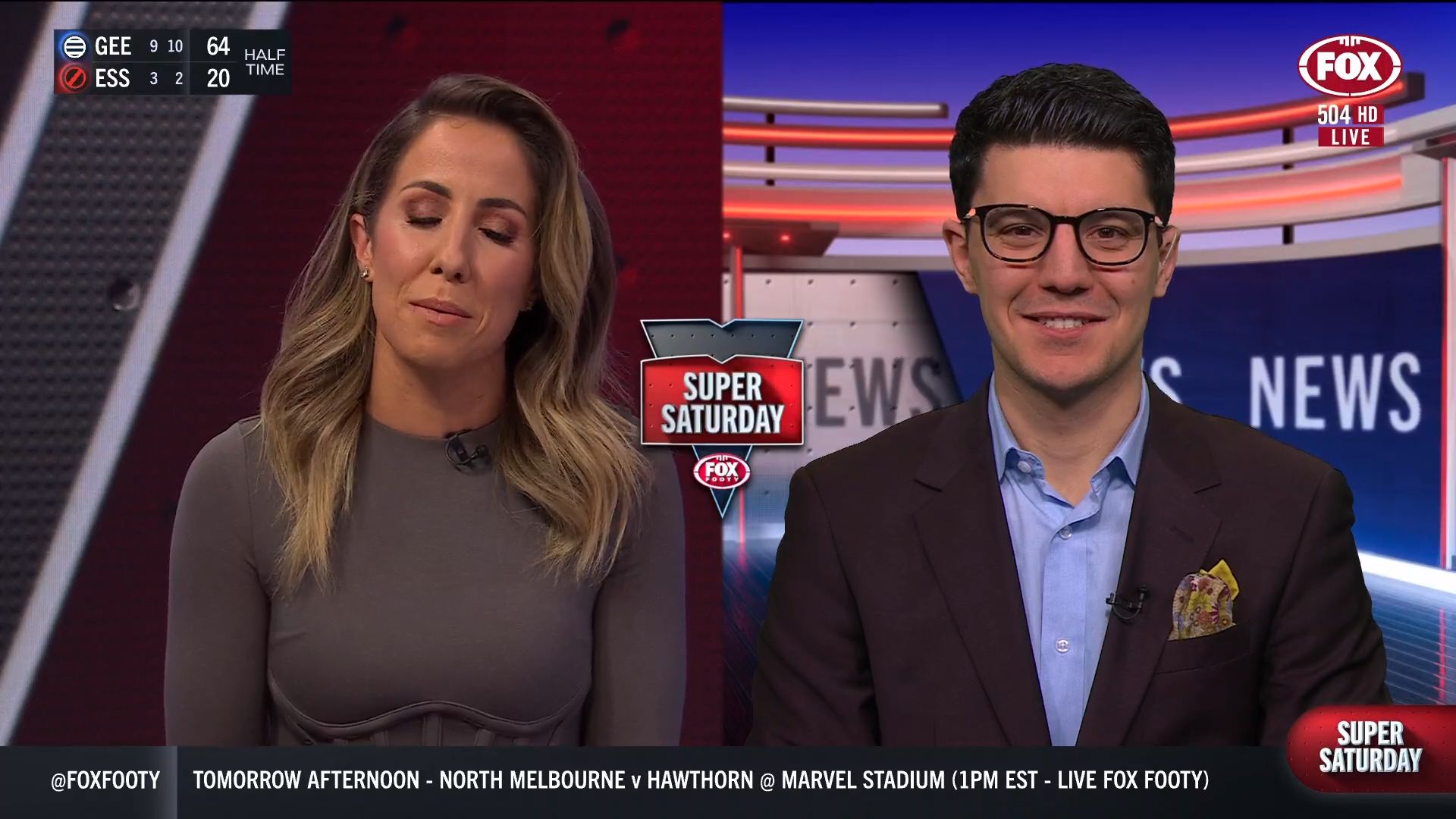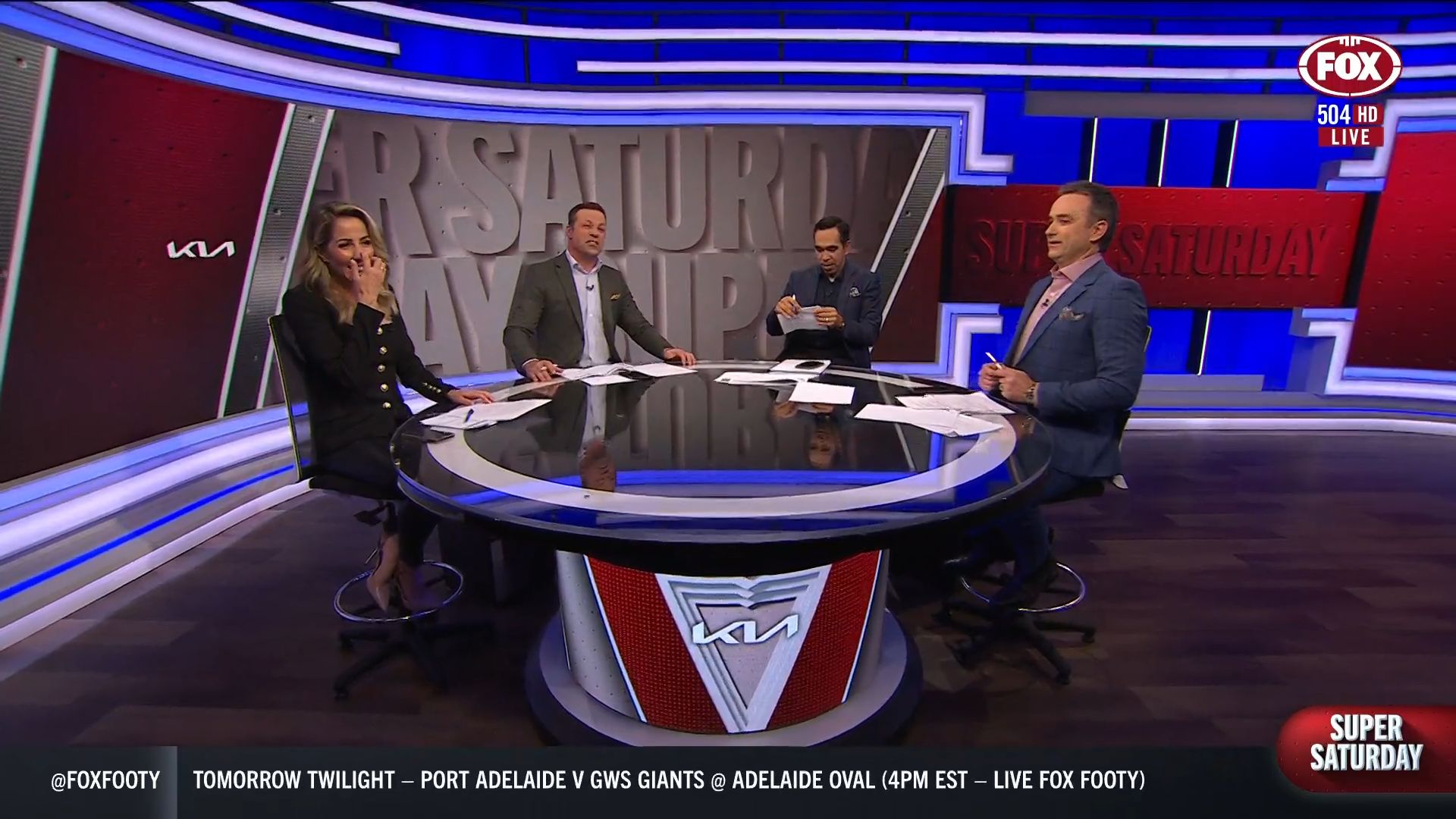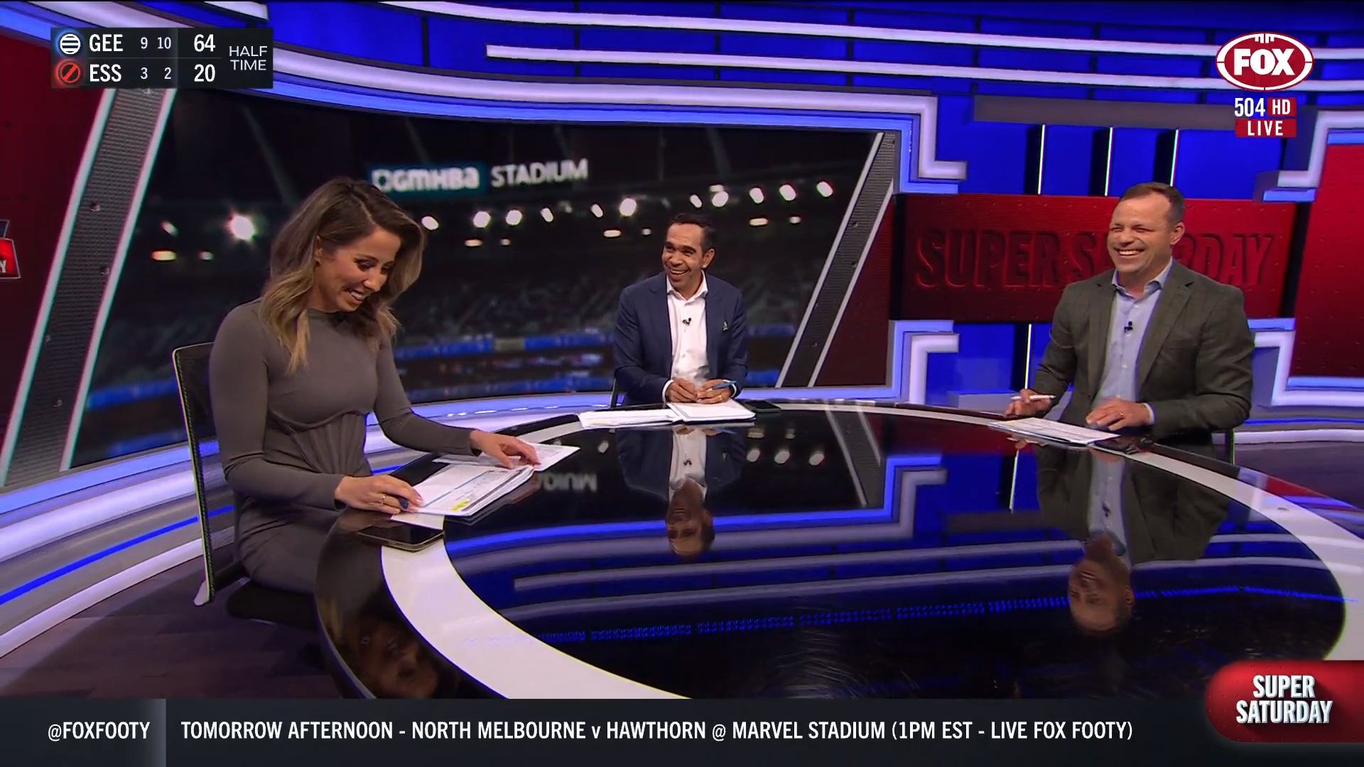 Kath looking great in a leather skirt on Fox Footy!