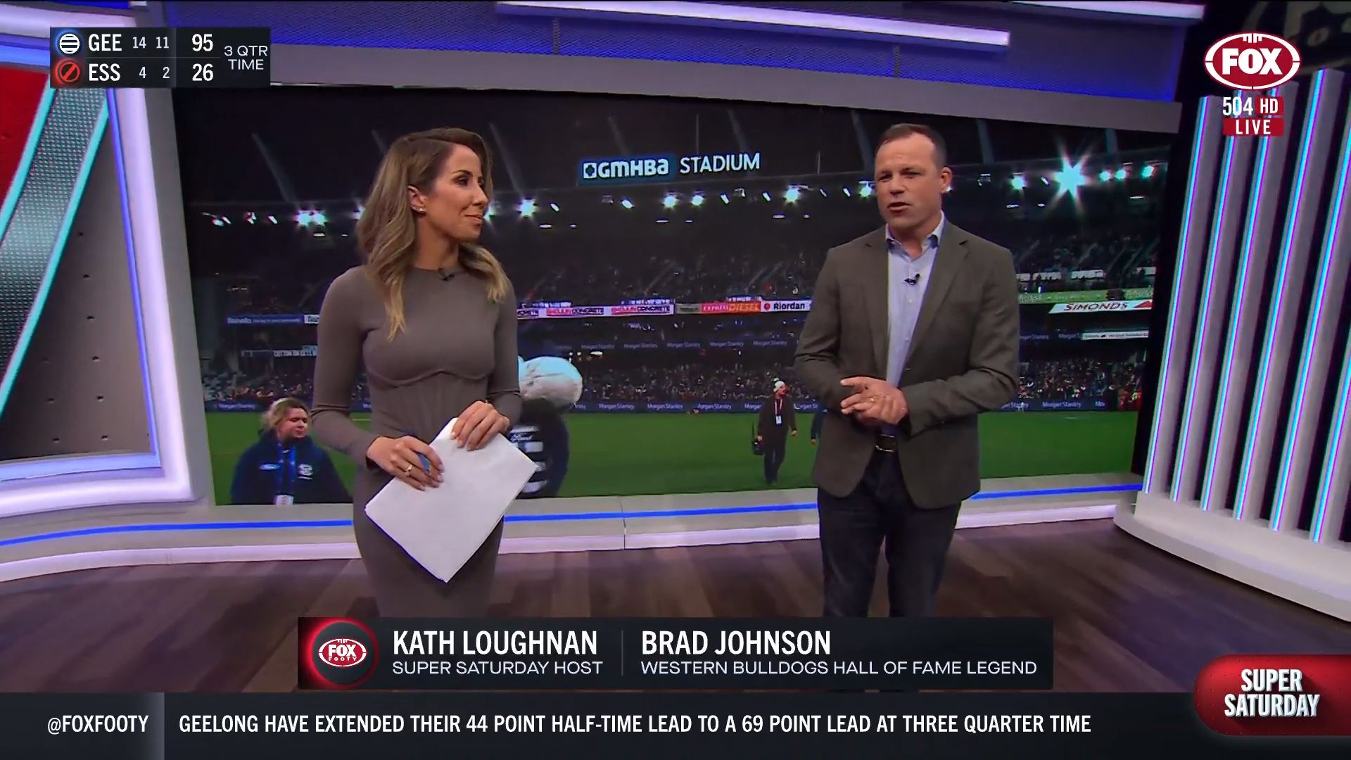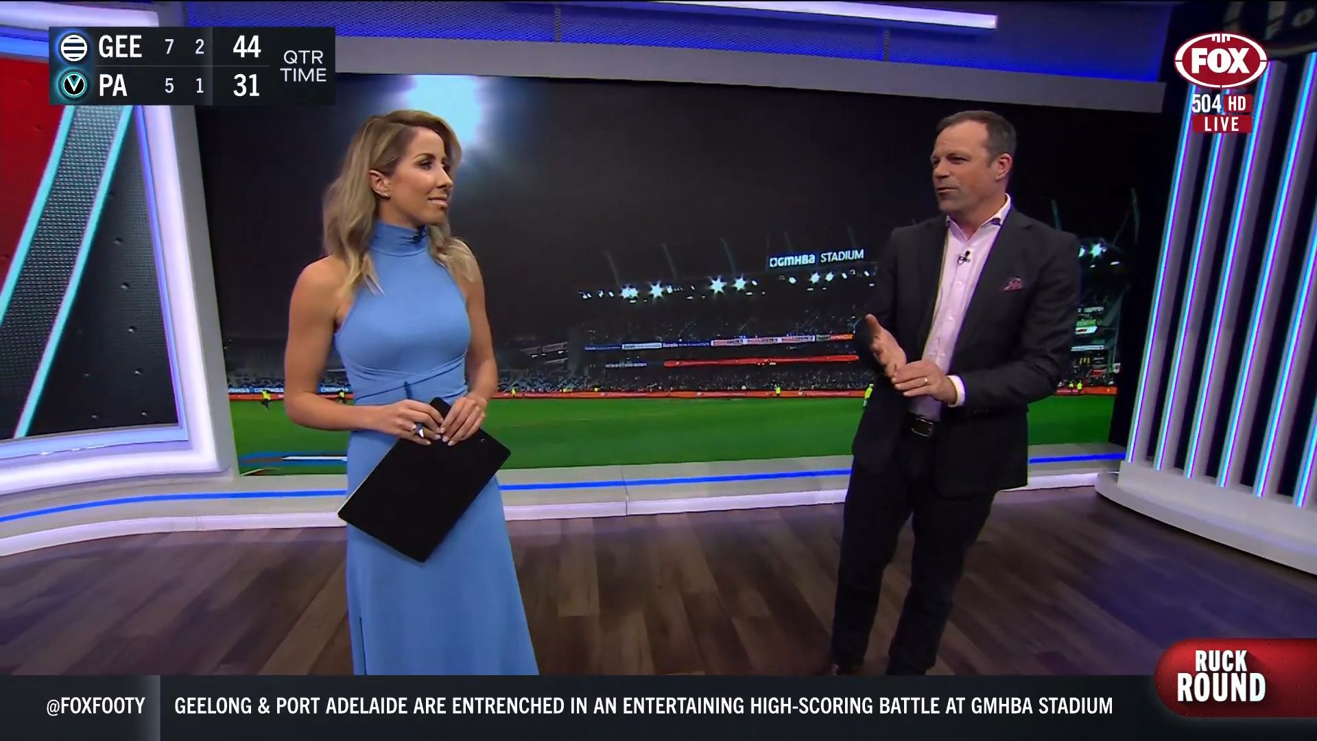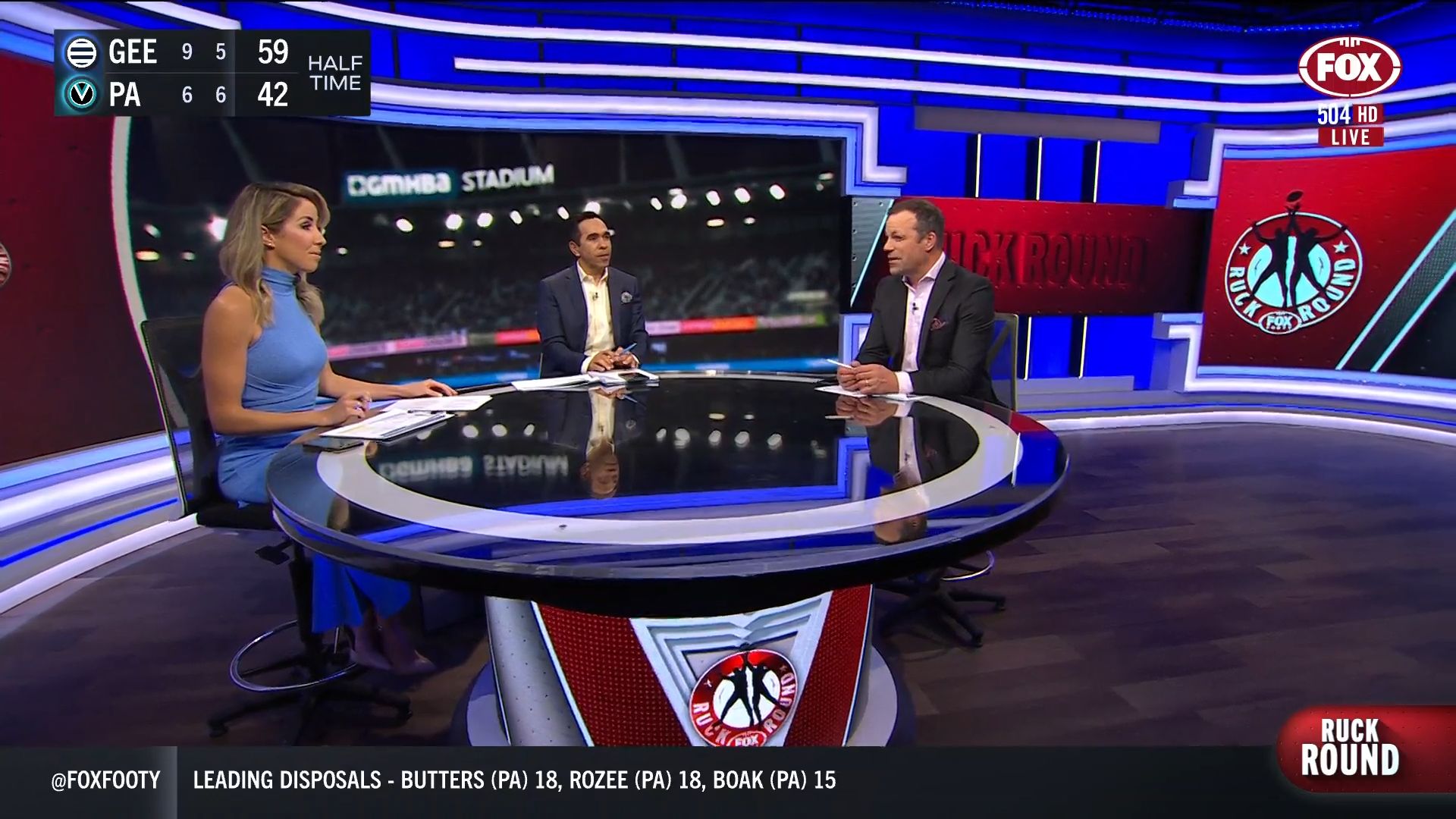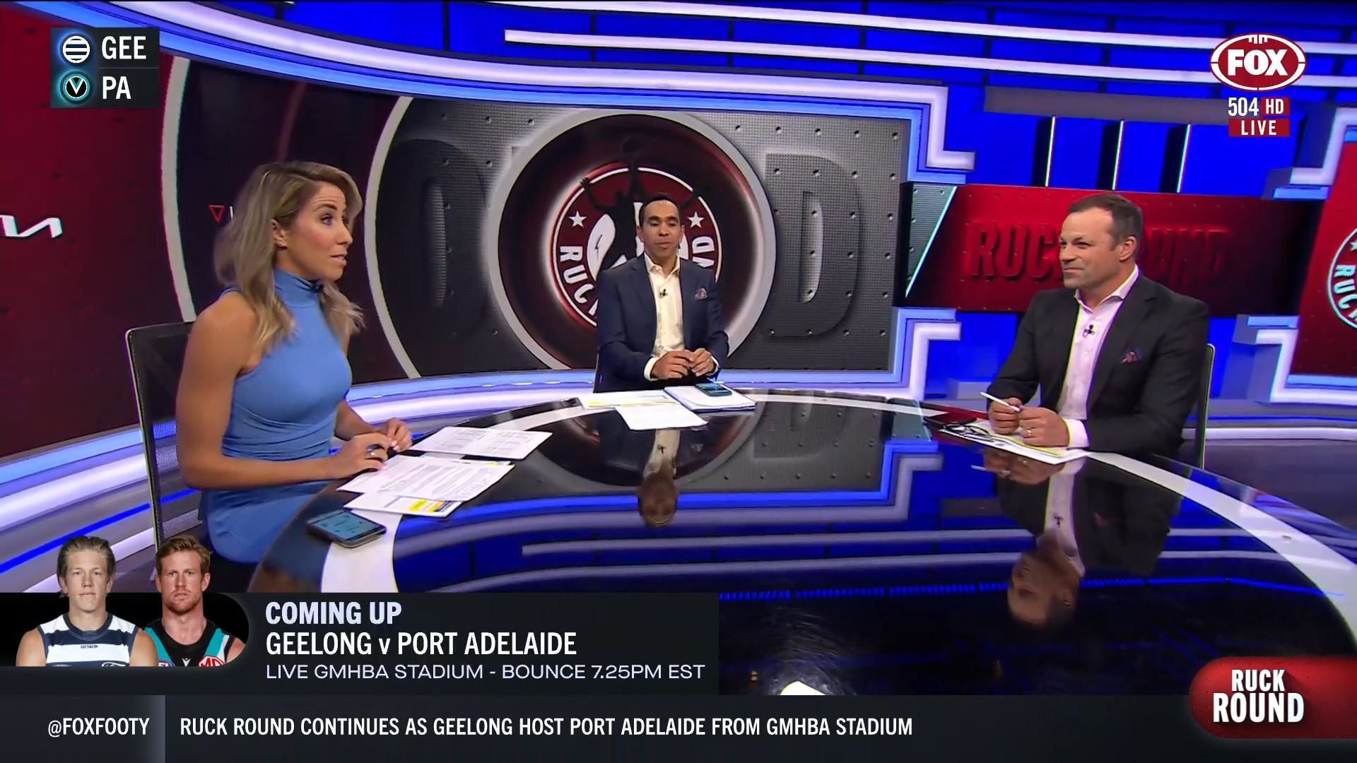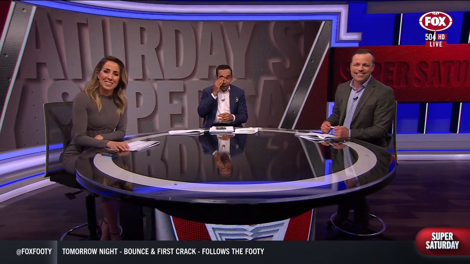 Kath looking great in a leather skirt on Fox Footy!