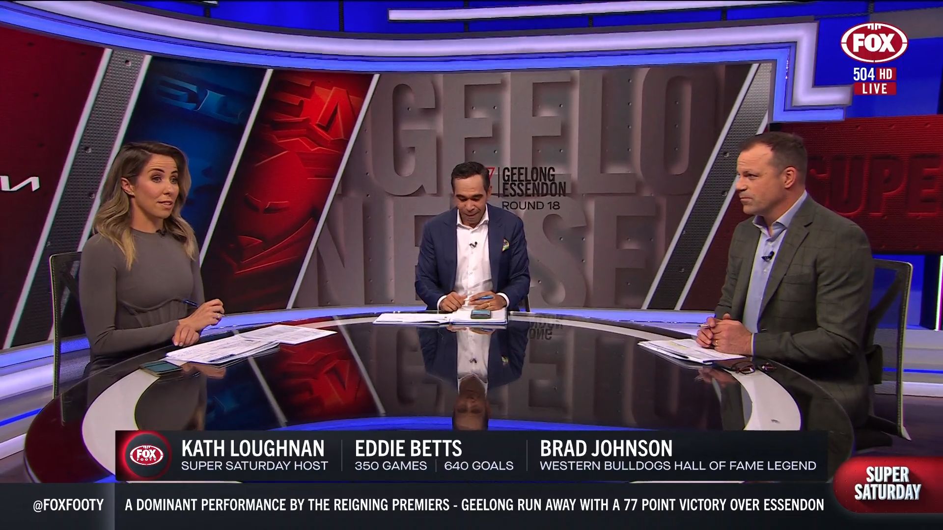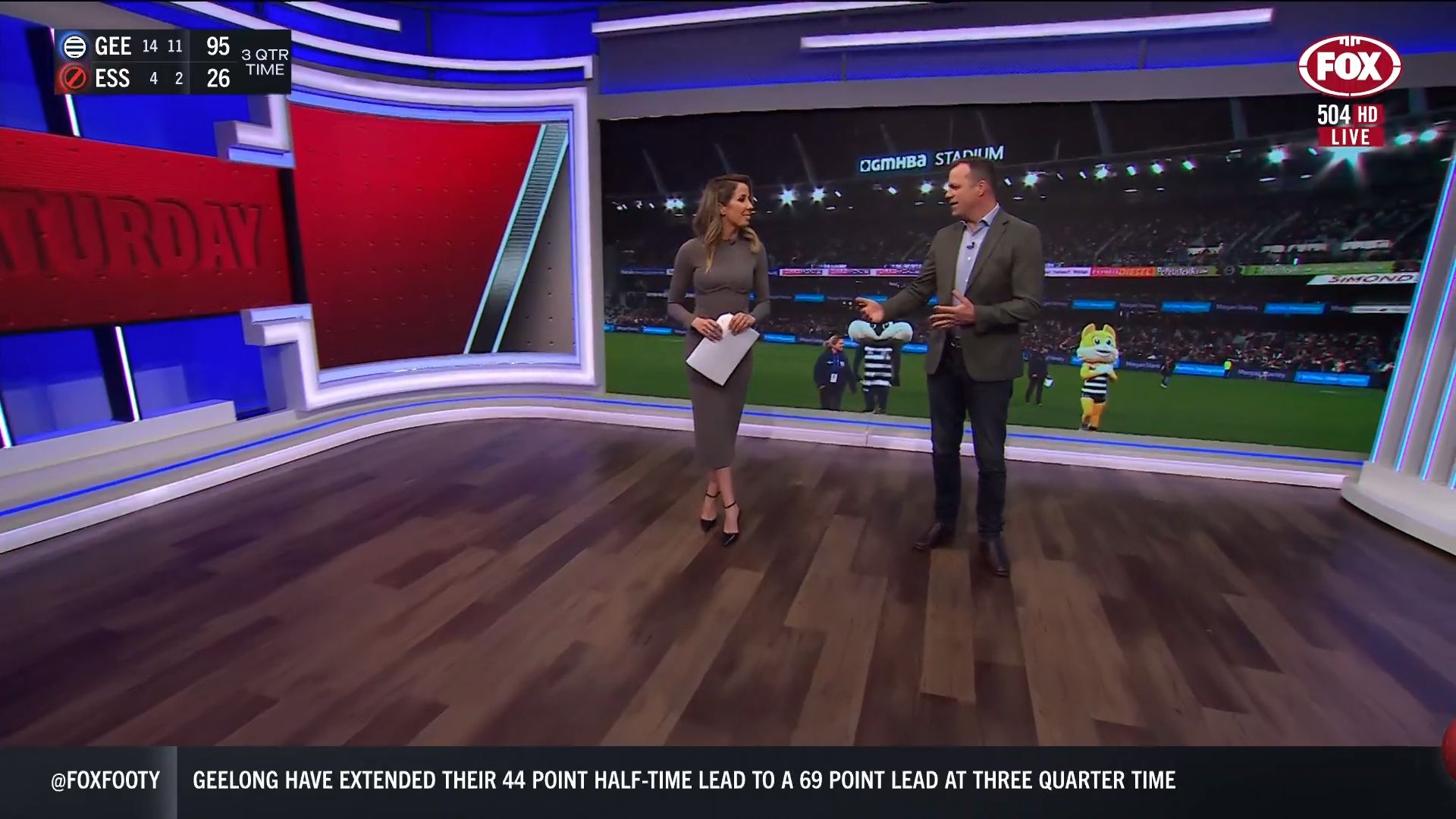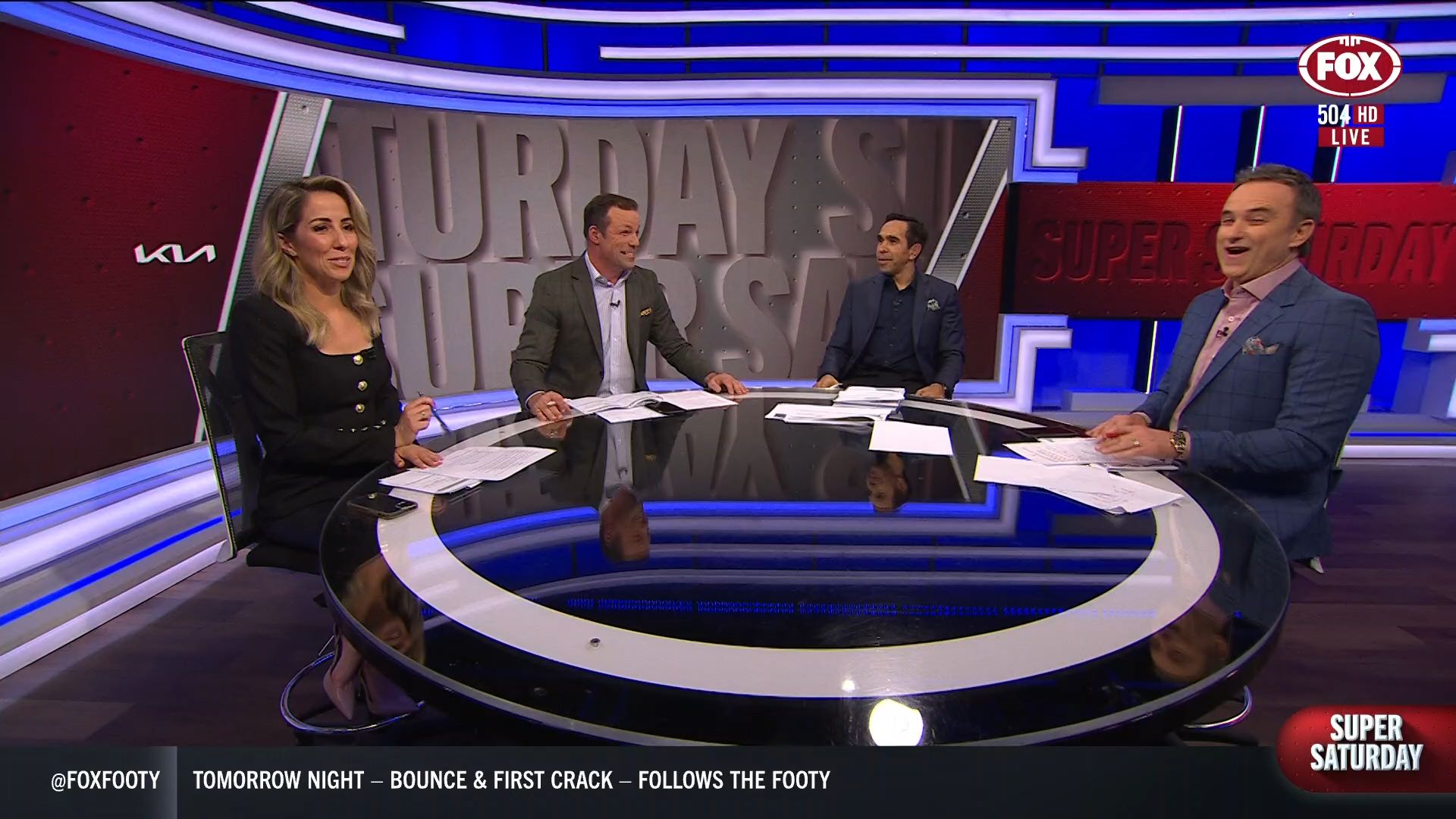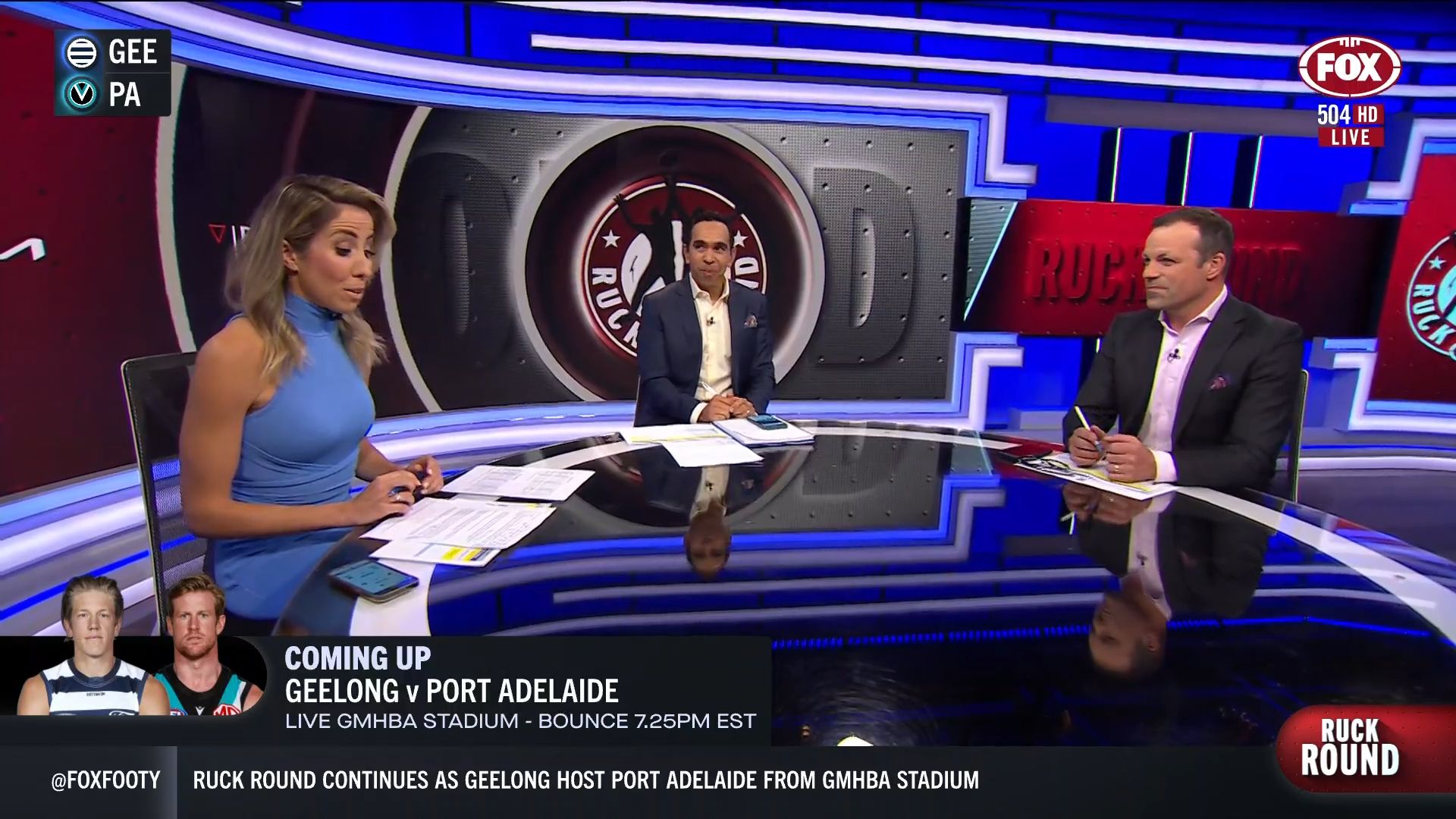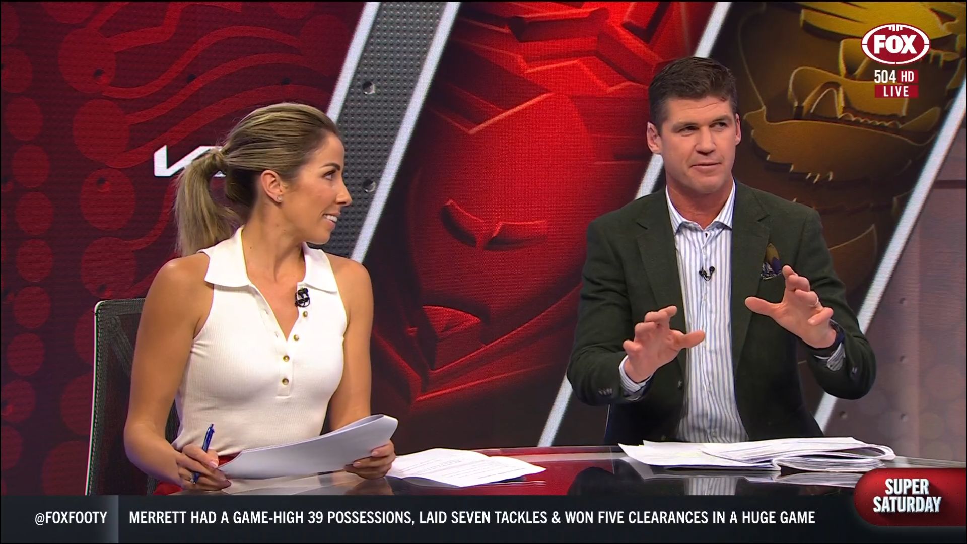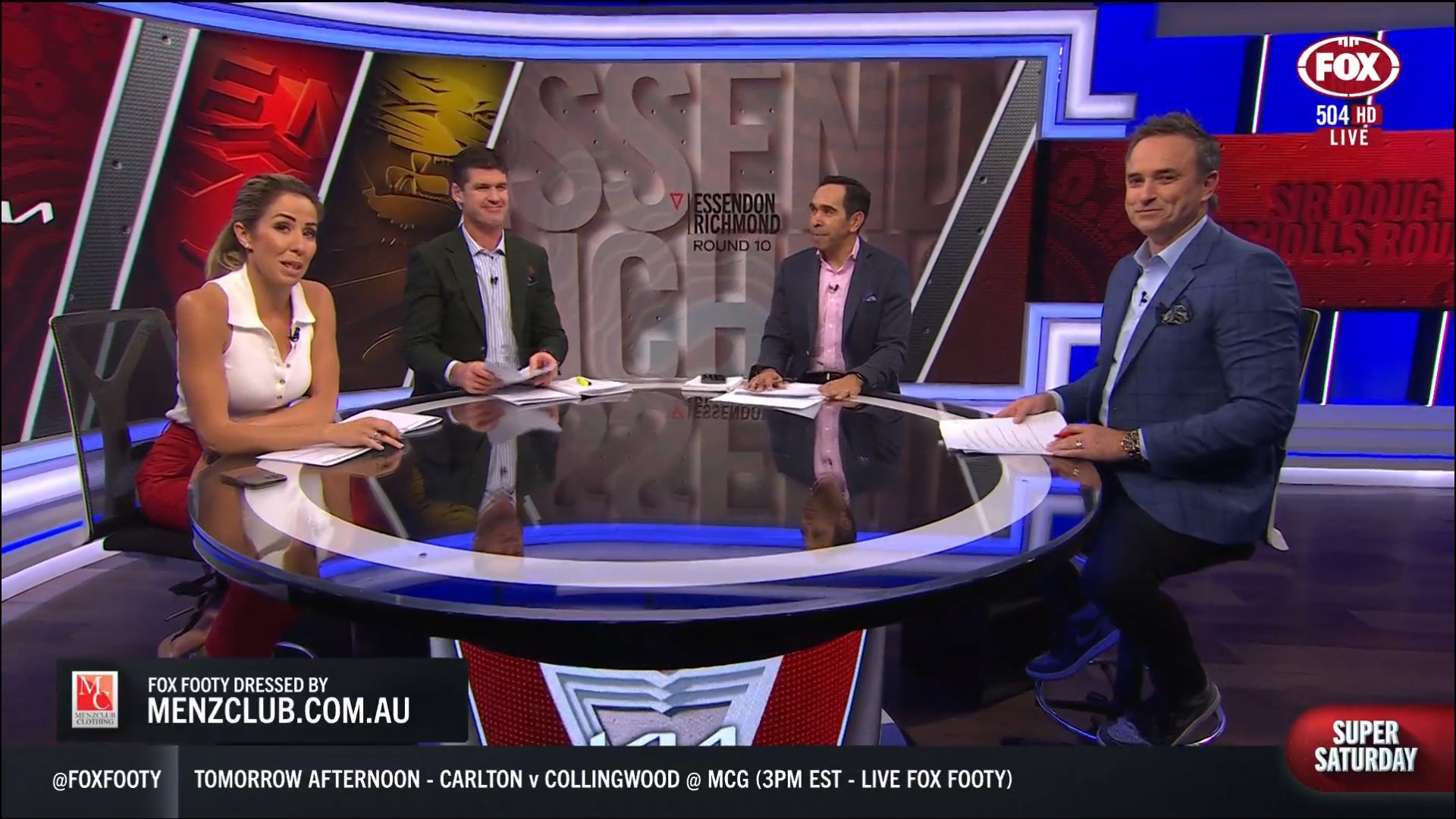 Kath looking great in a leather skirt on Fox Footy!