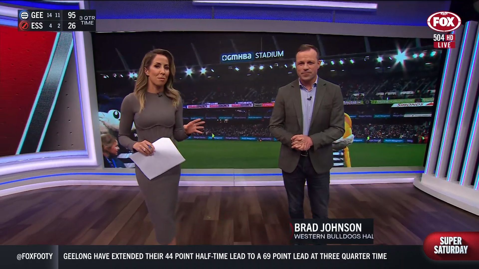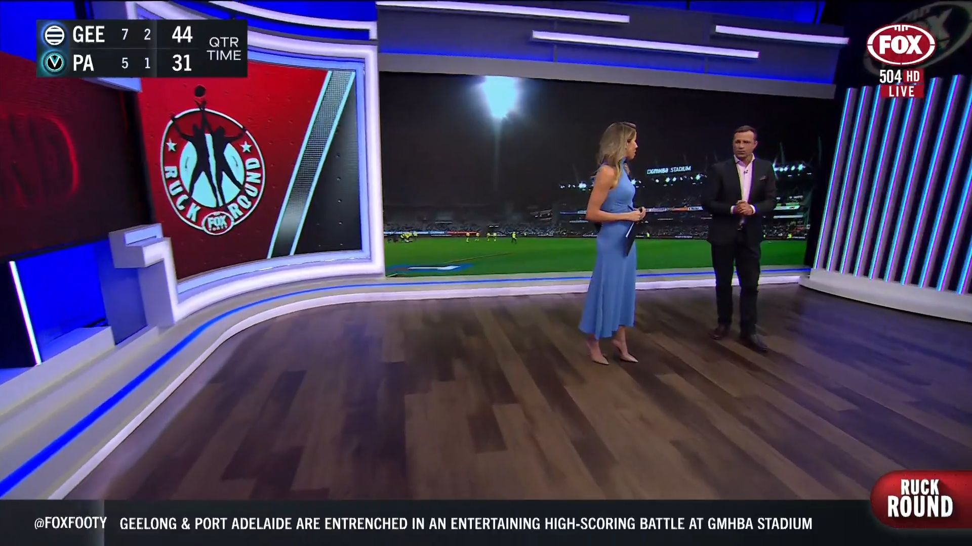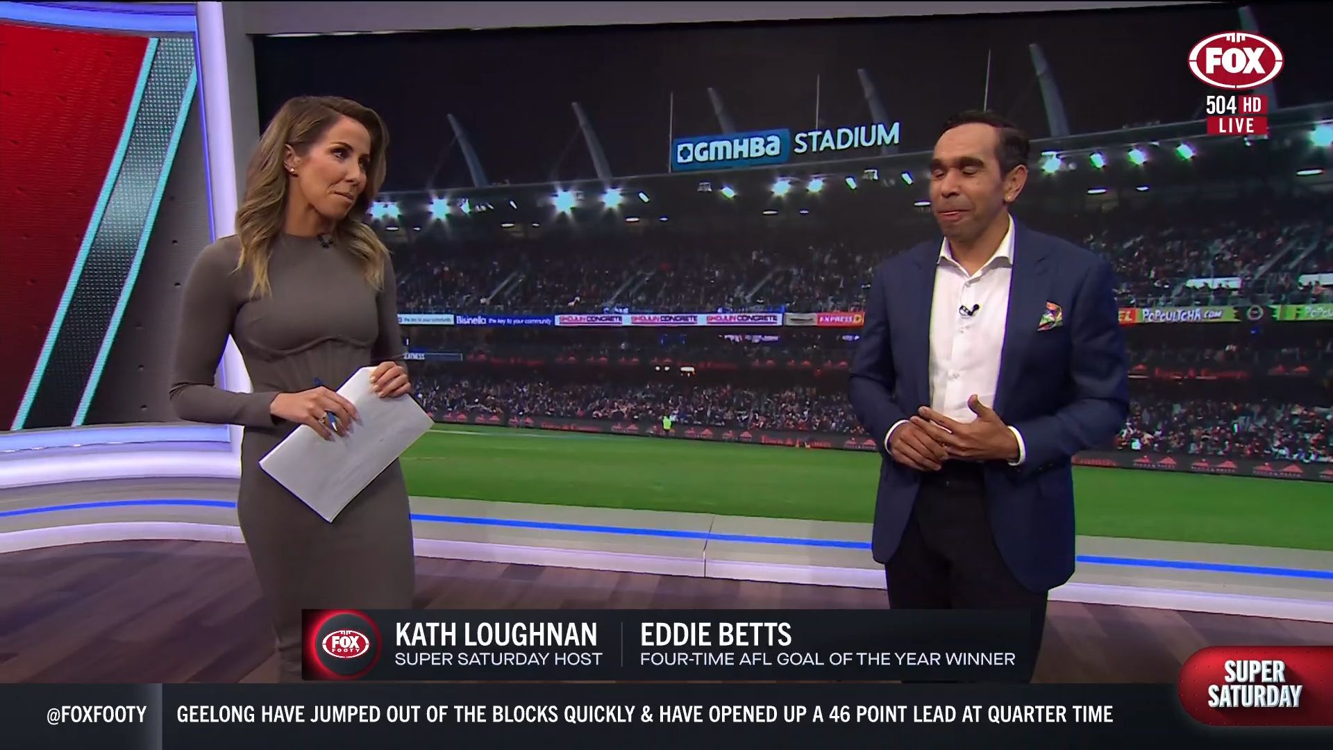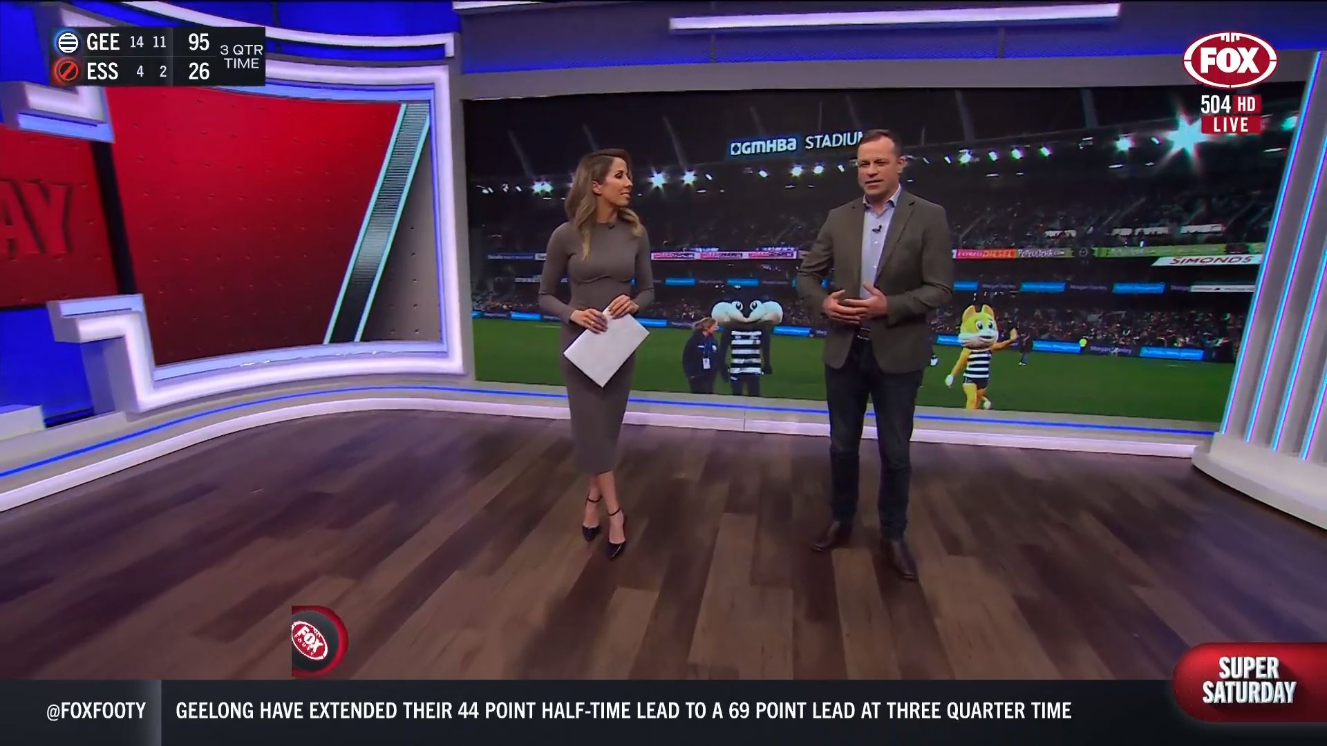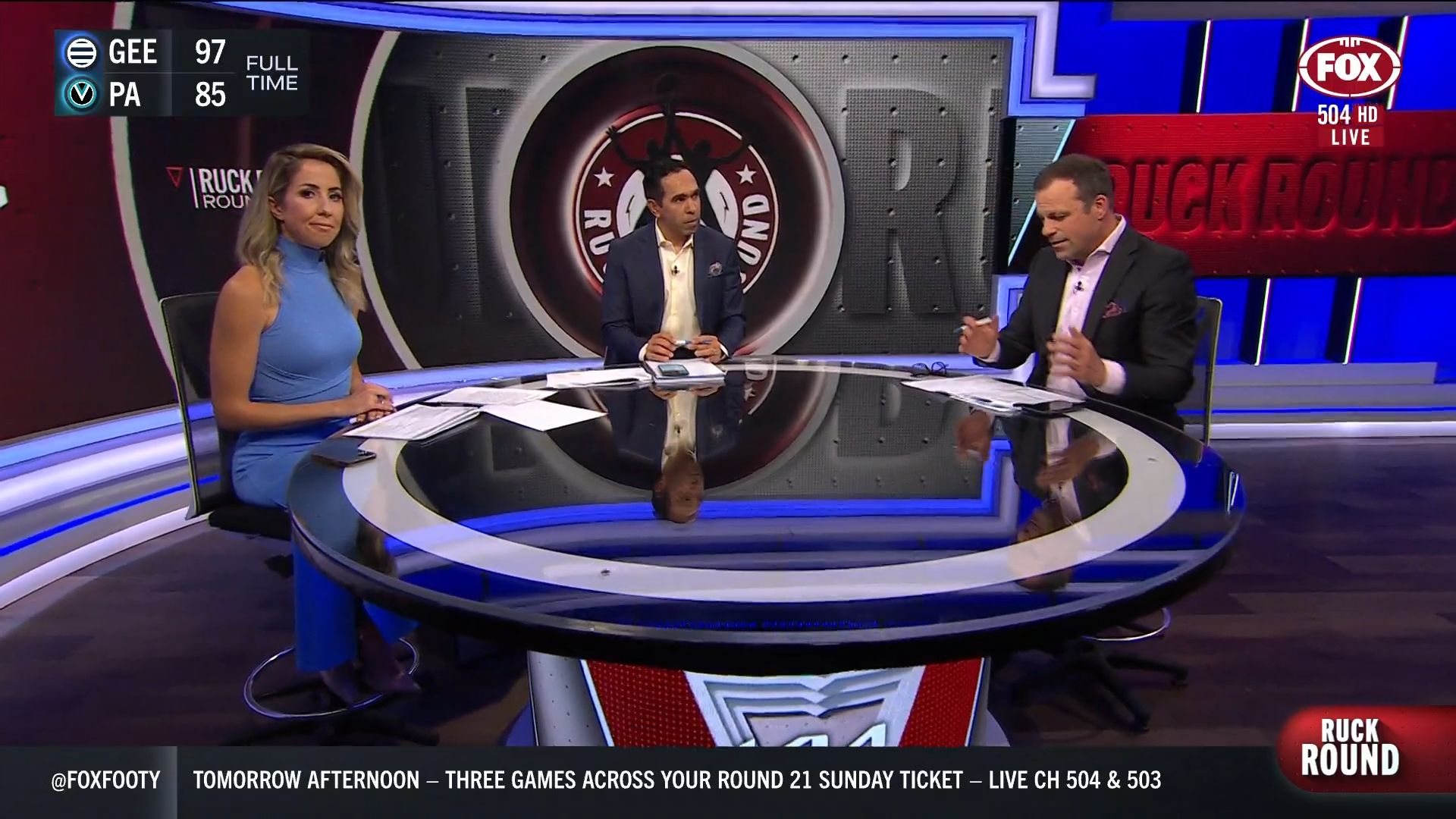 Kath looking great in a leather skirt on Fox Footy!