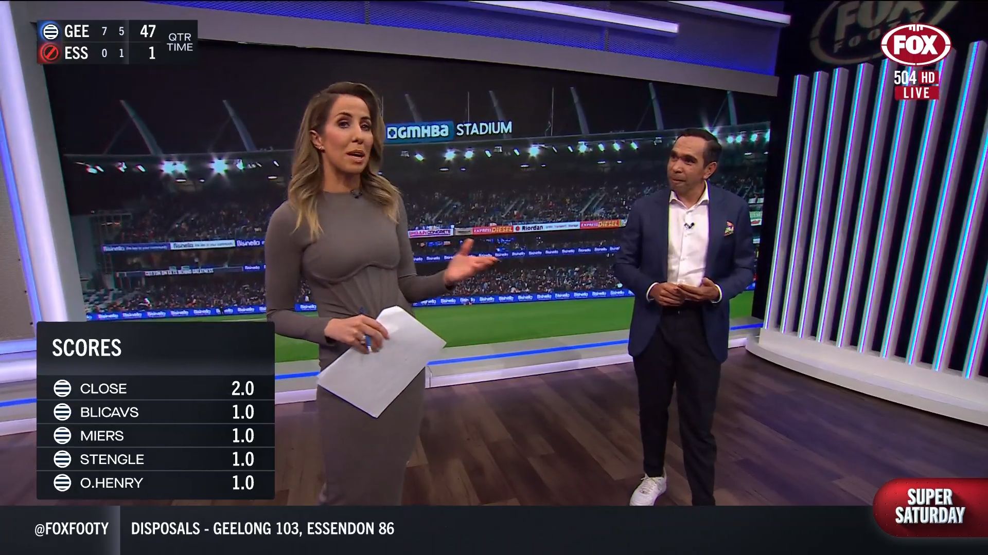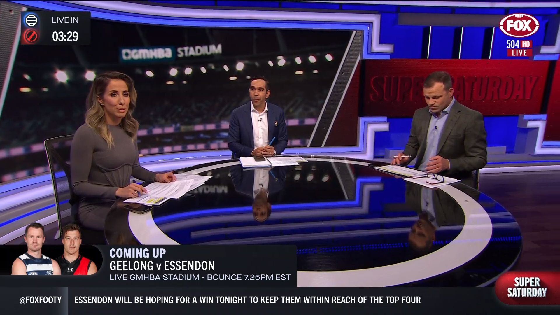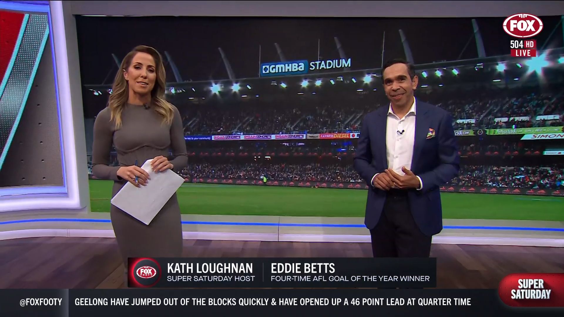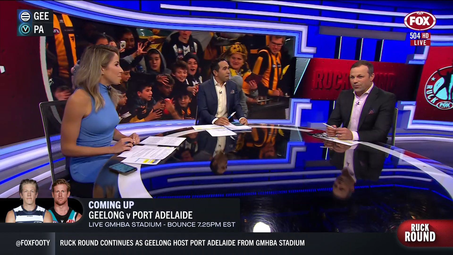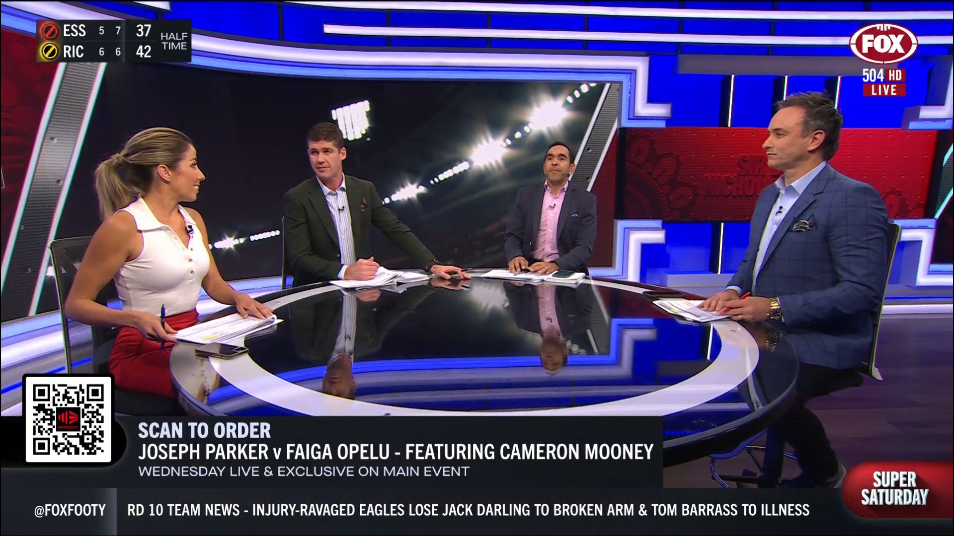 Kath looking great in a leather skirt on Fox Footy!