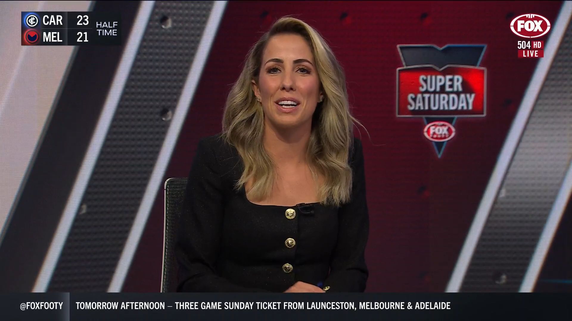 Here's Kath from Sat night on Fox Footy :)