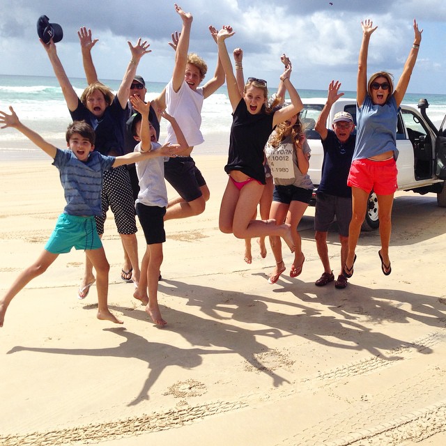 Quote: Griswalds got nuthin' on us. Just gone 9am in QLD. We've been up for hours! 4WD on Fraser Island. That's my darlin' Dad behind me Mum's doing the leap too. #holidays