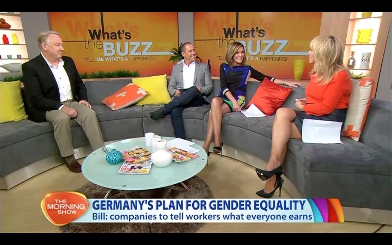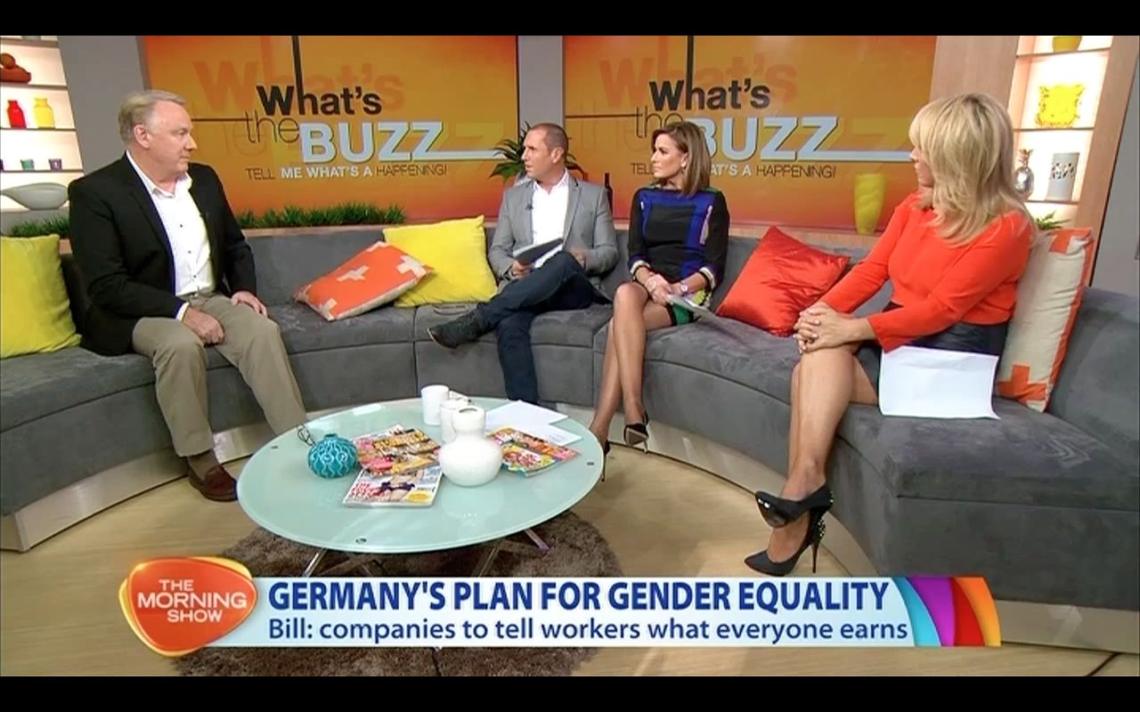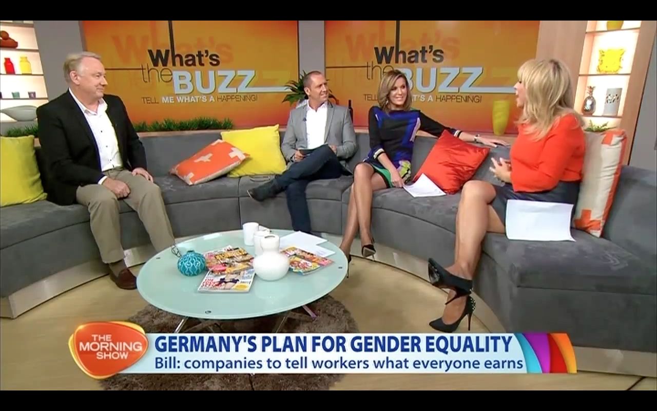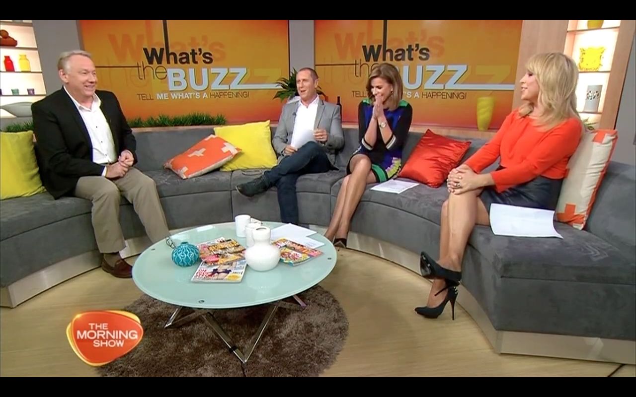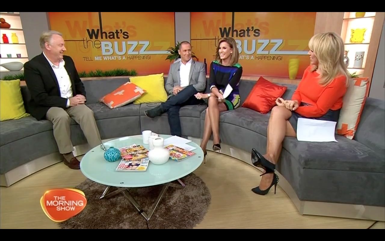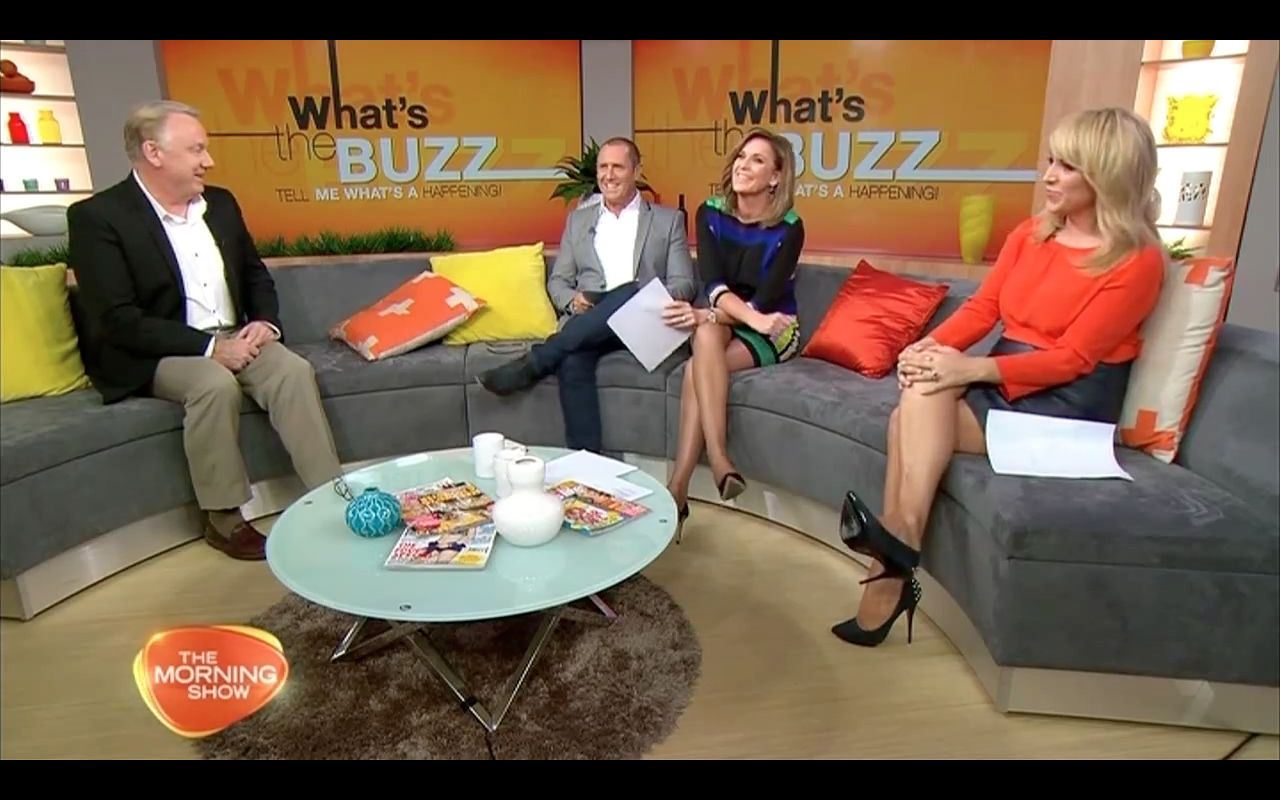 Legs show during the what the buzz segment Kylie showing off the legs and Monique Wright also got the legs out wearing a short skirt.