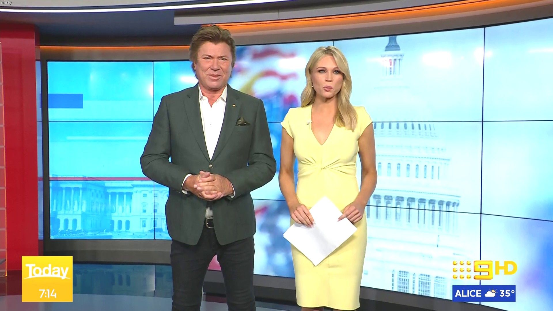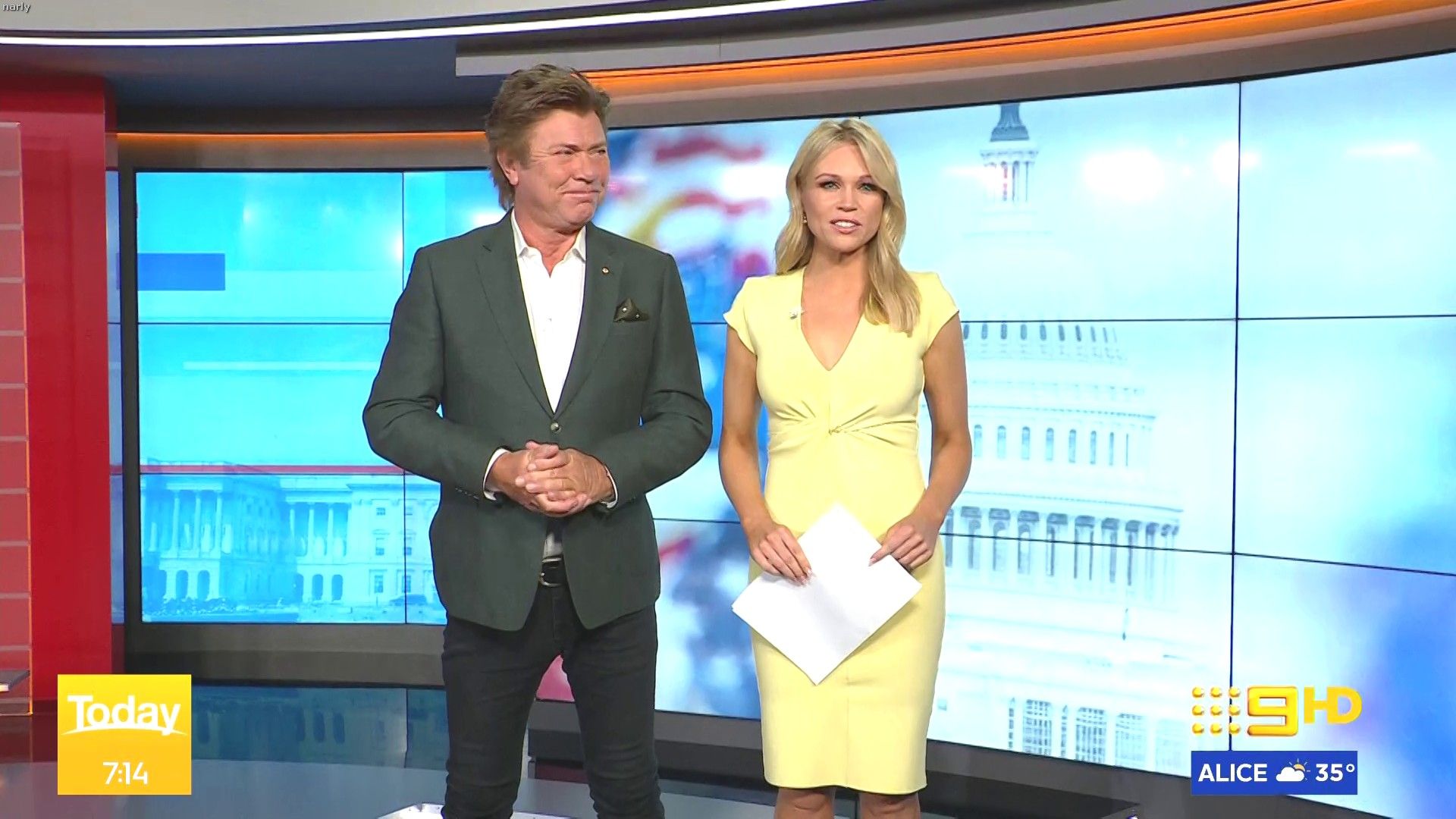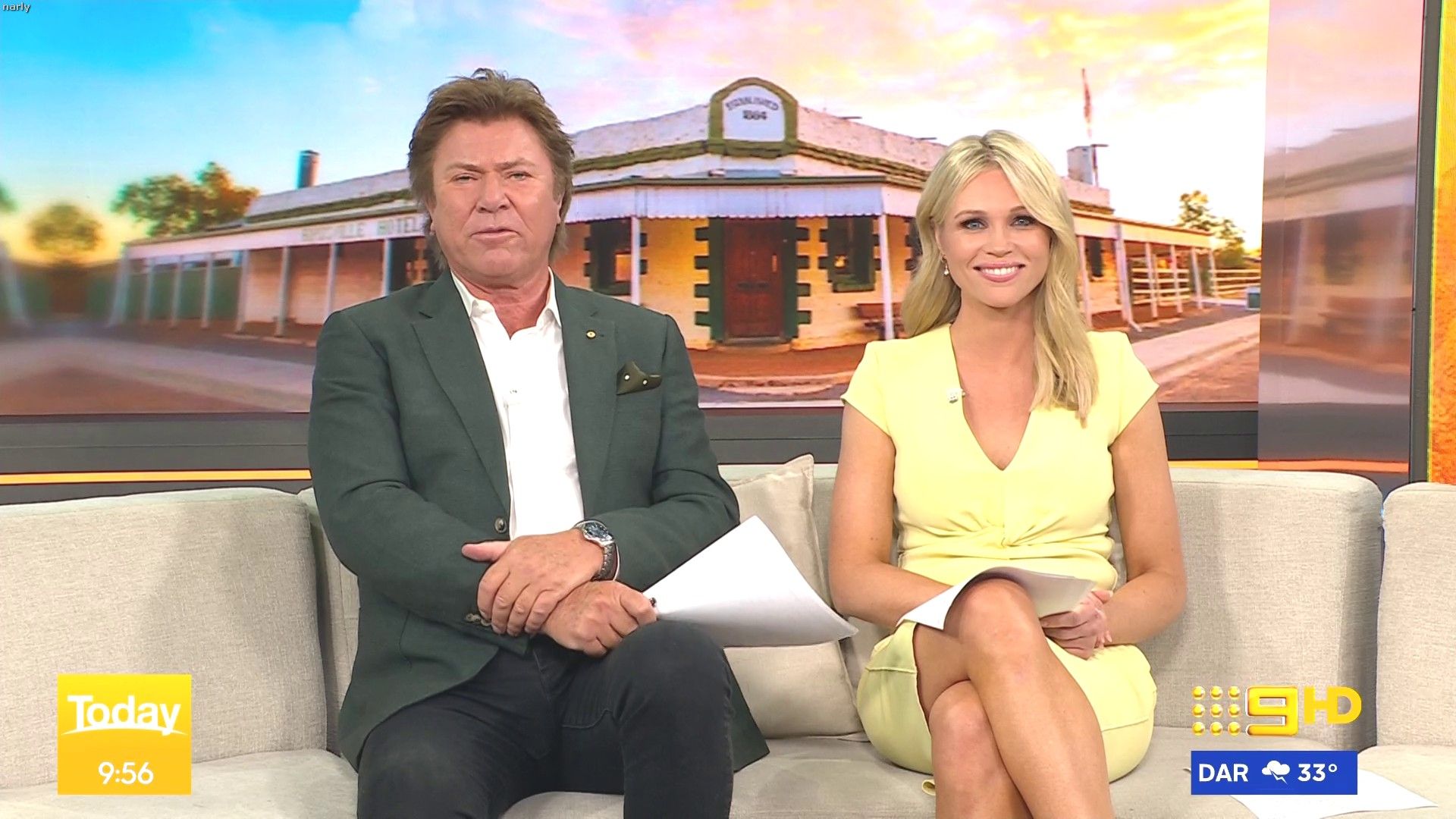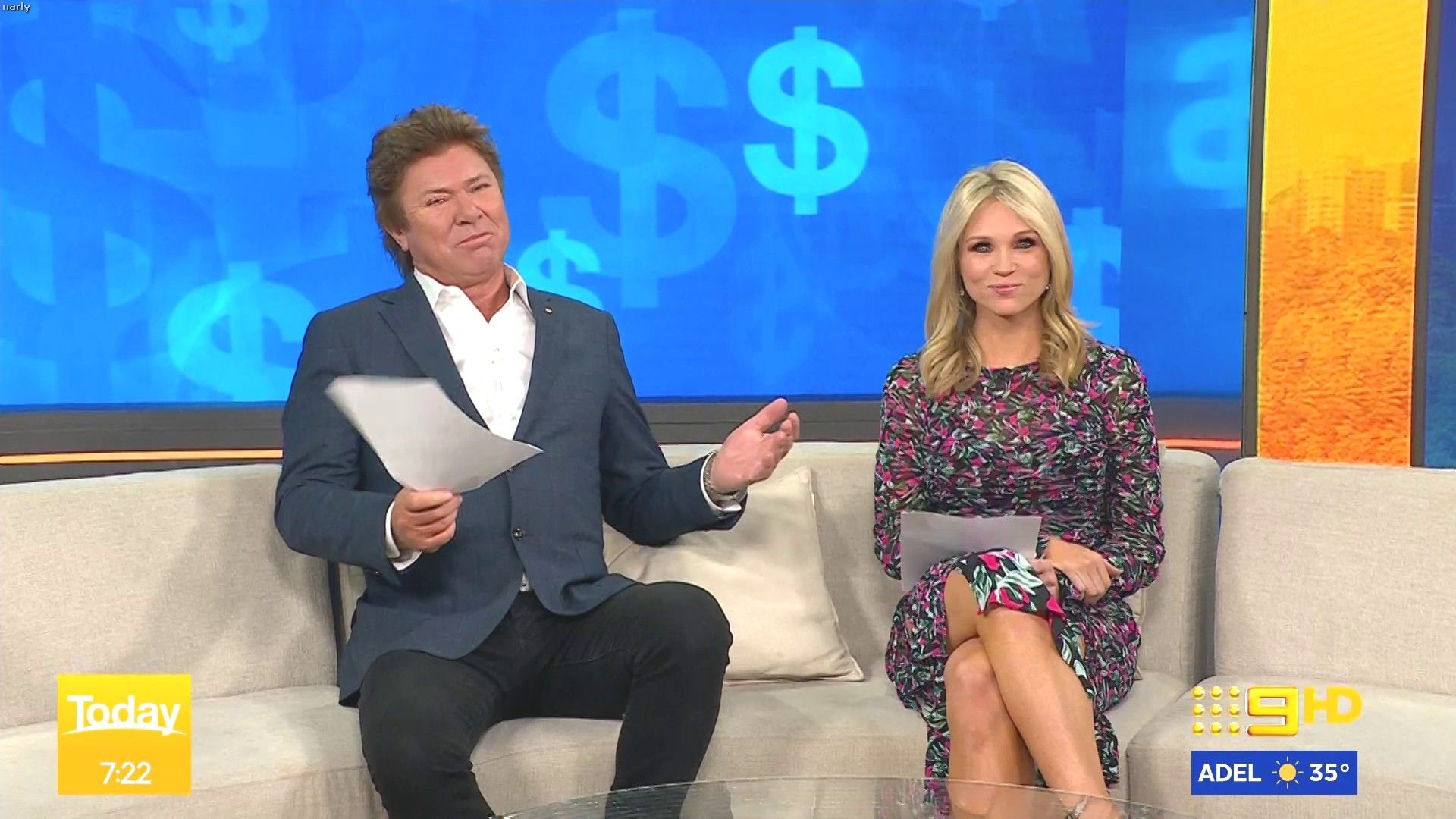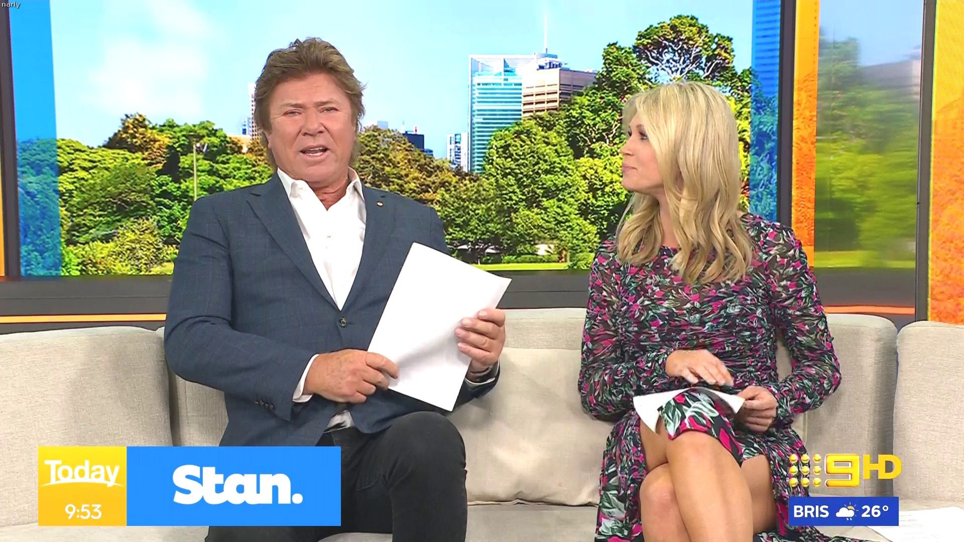 Stunning on weekend today hosting this morning. Nice split in the skirt when on the couch.