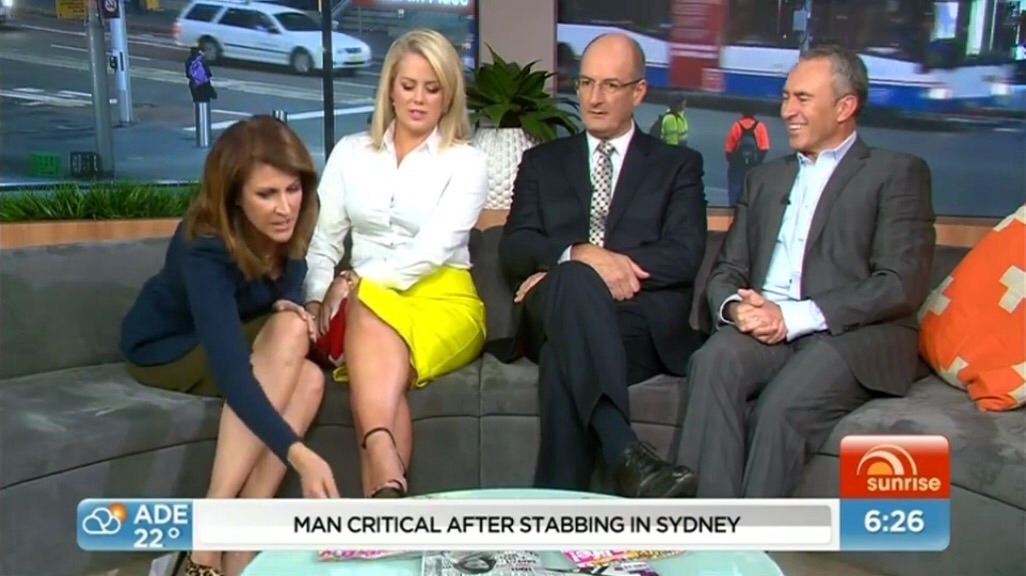 Last time she wears a skirt like that. It was obviously bothering her, you'd think she would have known before deciding to to wear it on air!