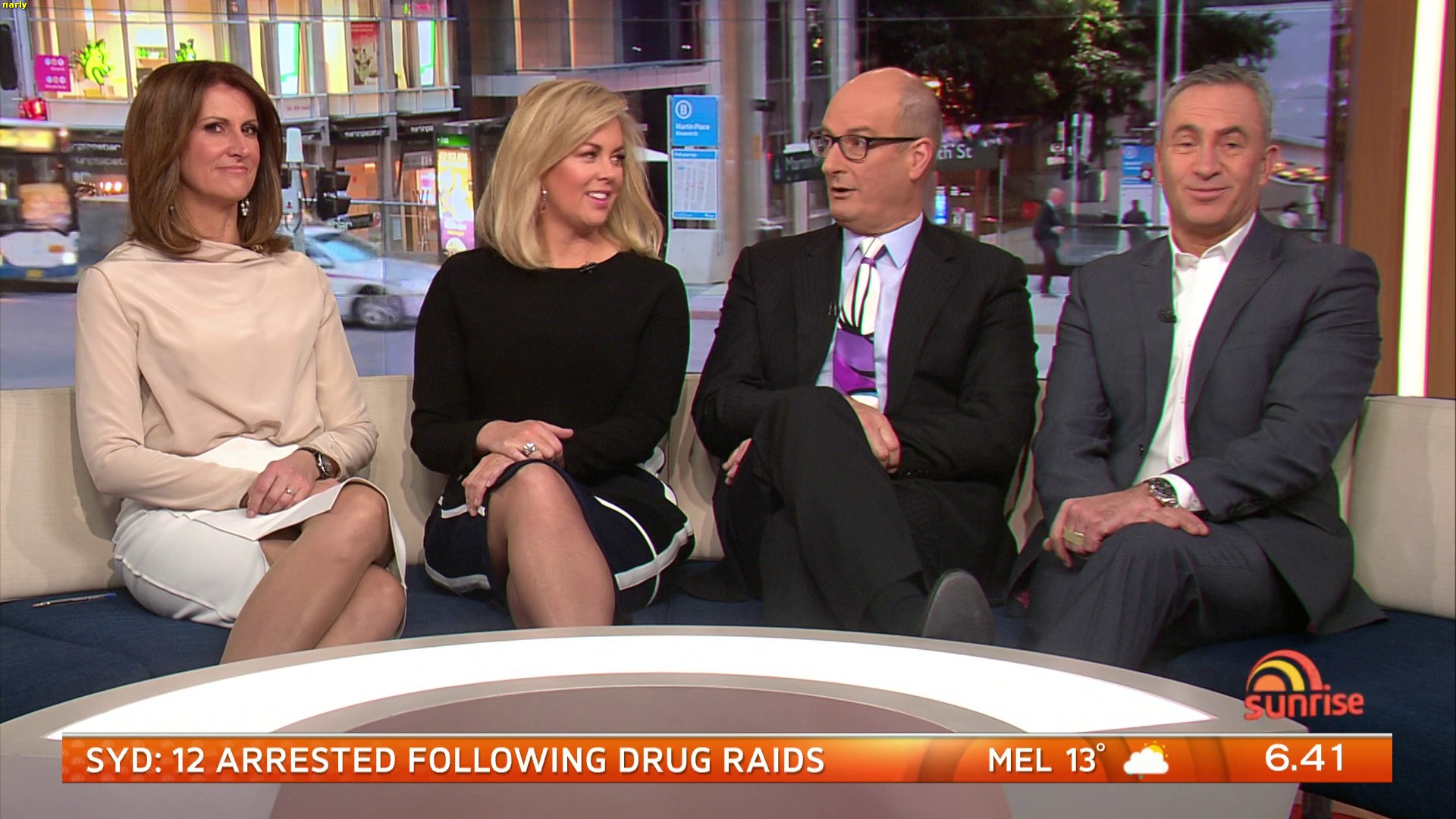 Pure class, loving the split dresses, never seem to see the classic short skirt crossed legs look from Nat as Sam does so well.