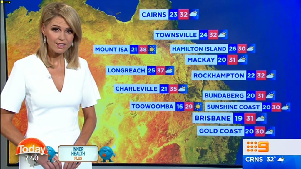 I think Amelia has got everyone else at Channel 9 and also 7 covered for leg length. Those pins go on for miles and miles. A Tall, skinny, leggy missy she is. Perhaps a tad too bony and scrawny? But I think she's a better presenter than Sylvia.