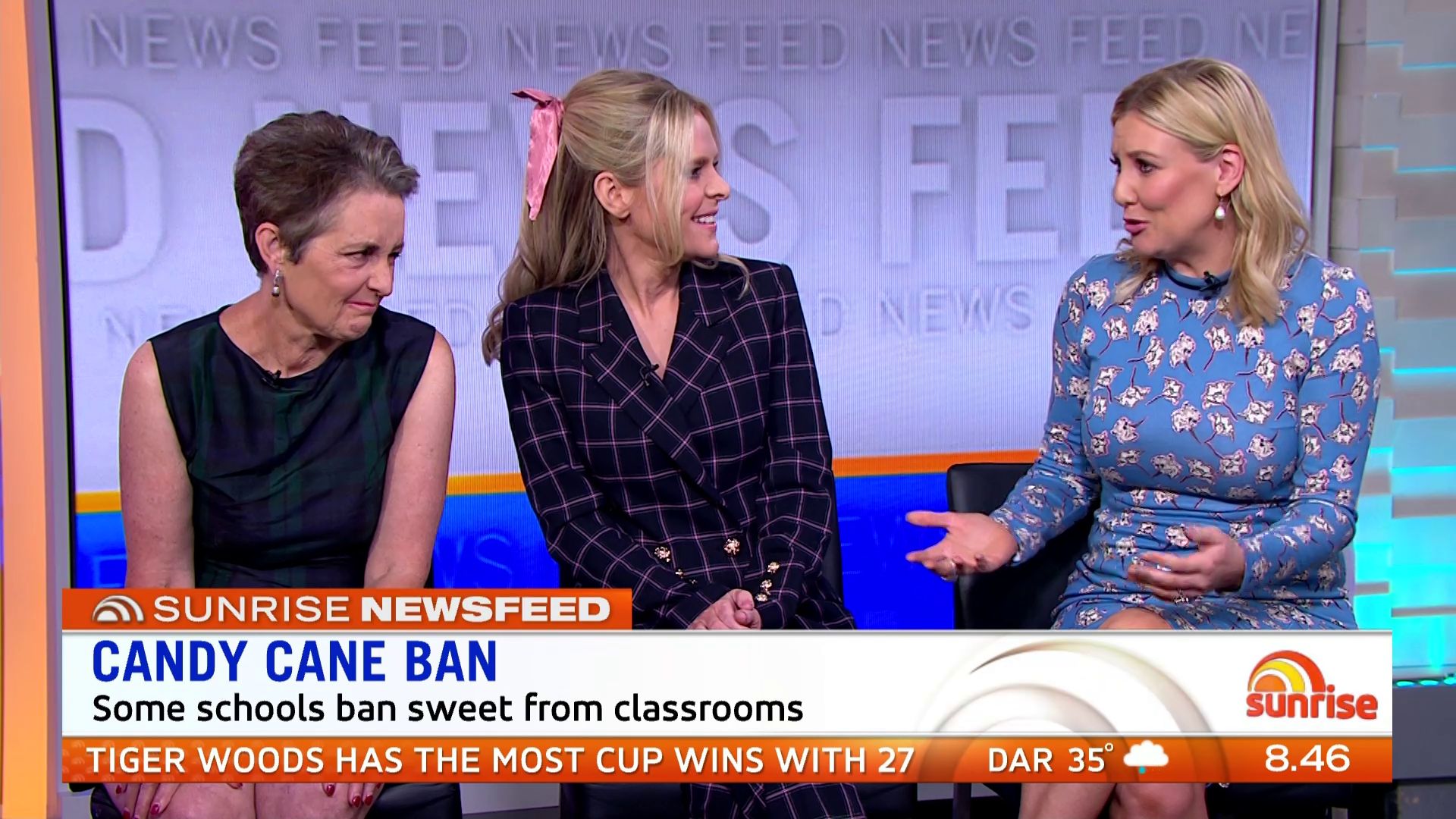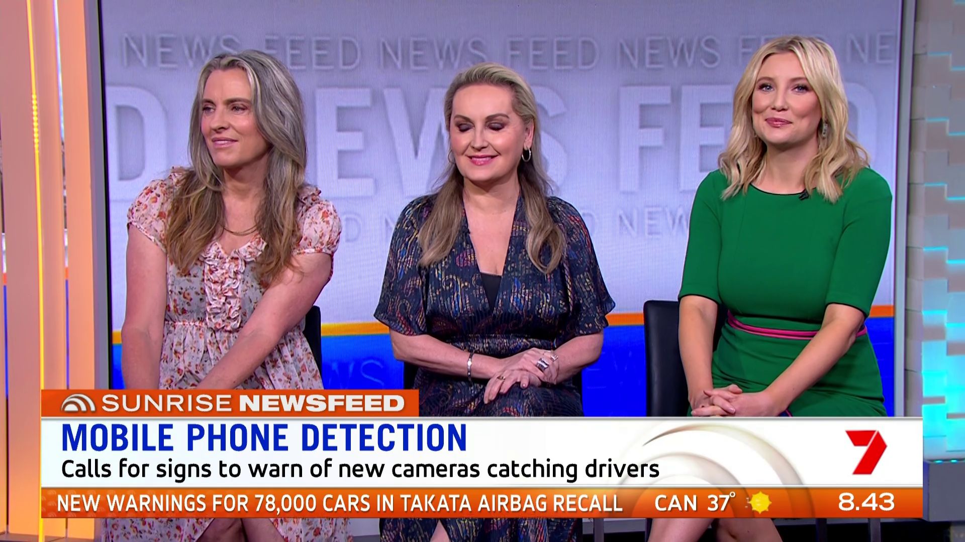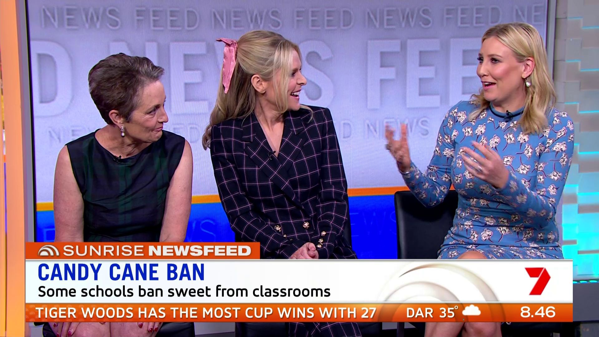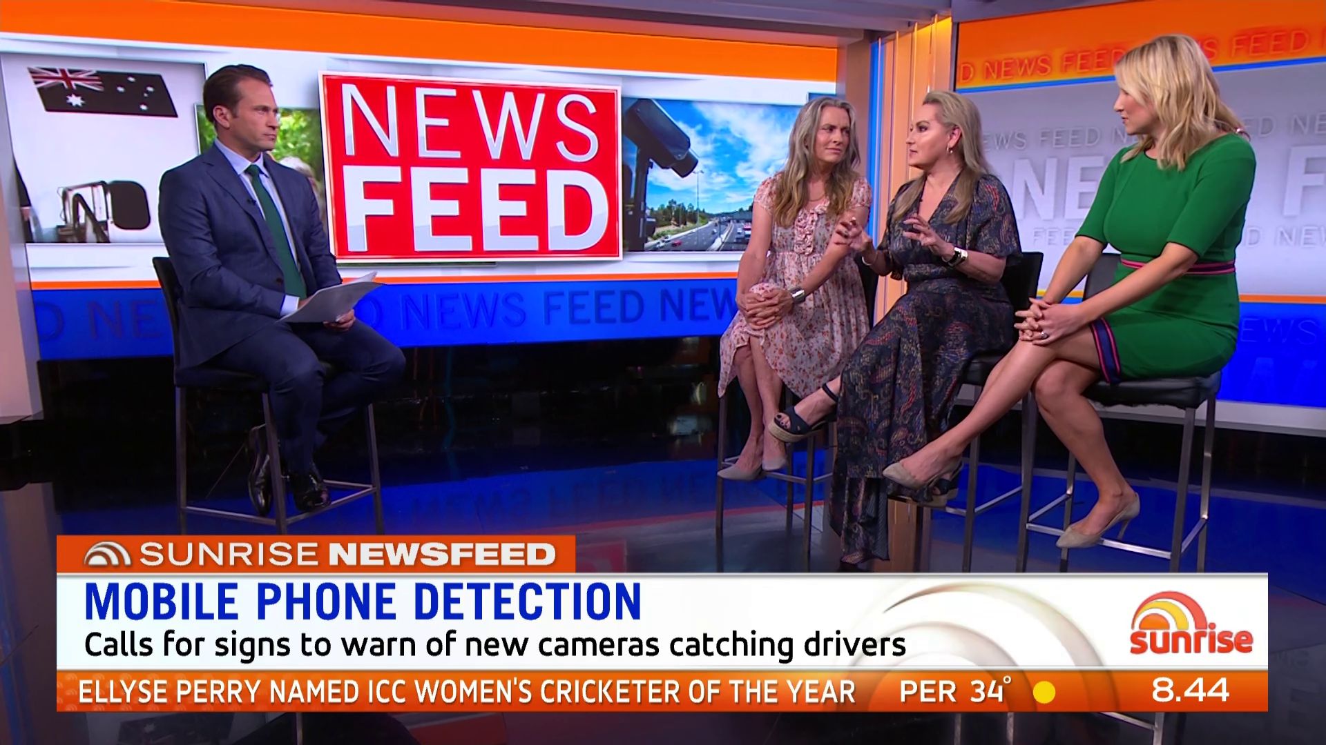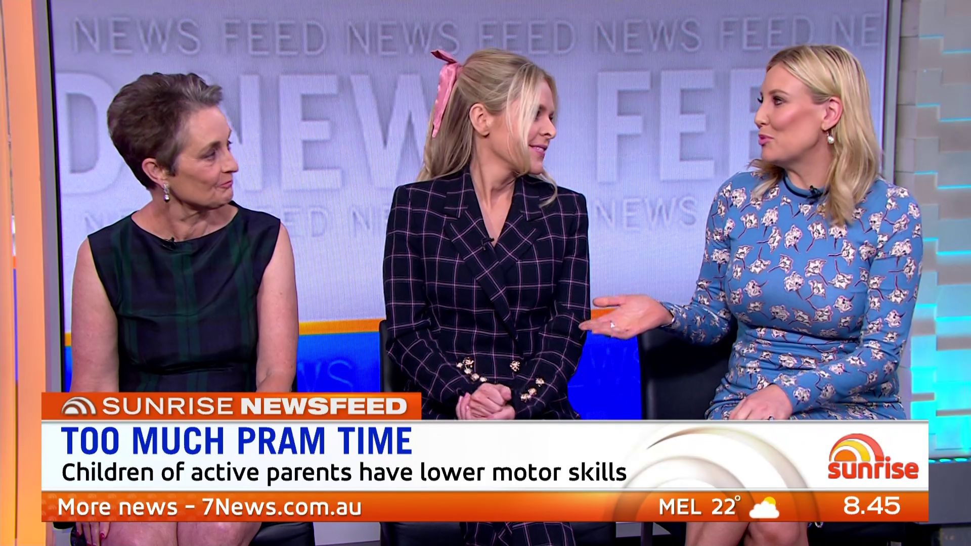 At 7:42 on the couch showing heaps of thigh the the camera left cams back and dress pulled down to cover the exposure. Very nice