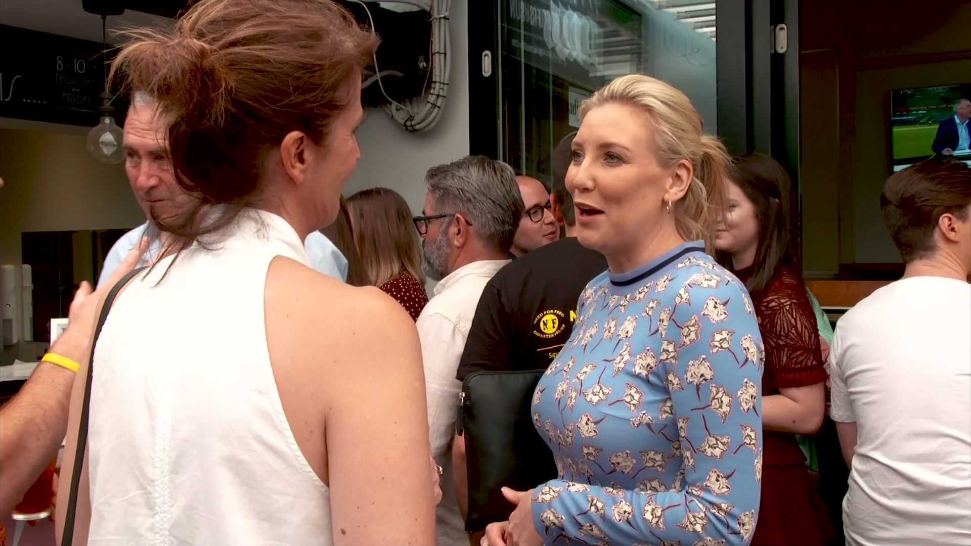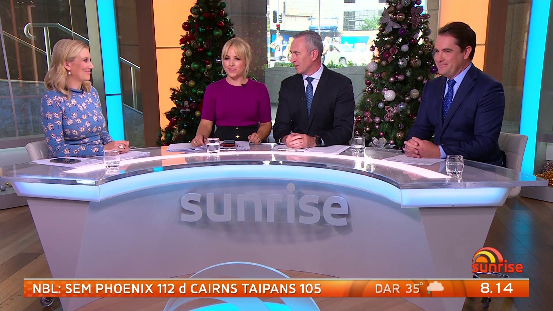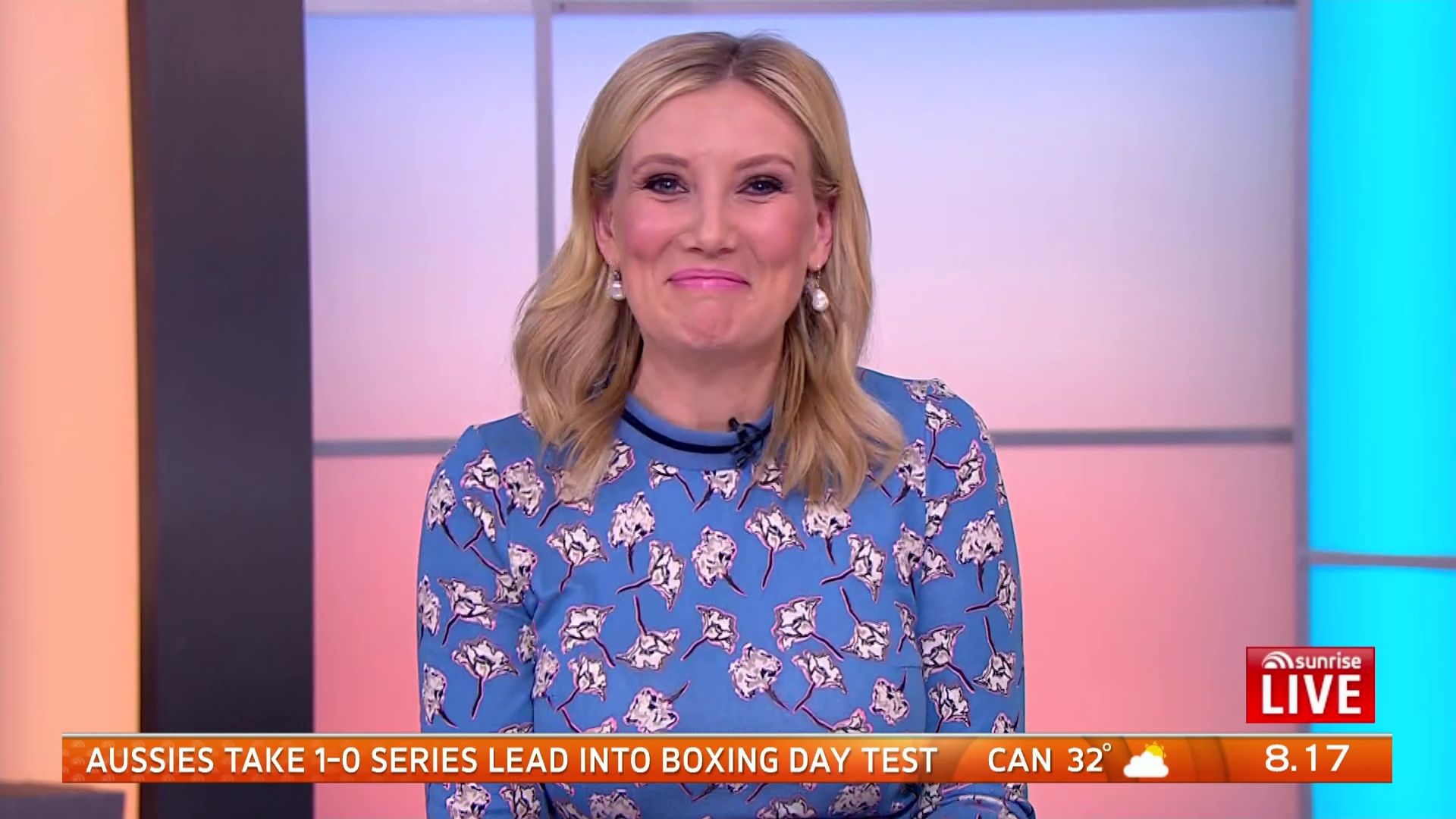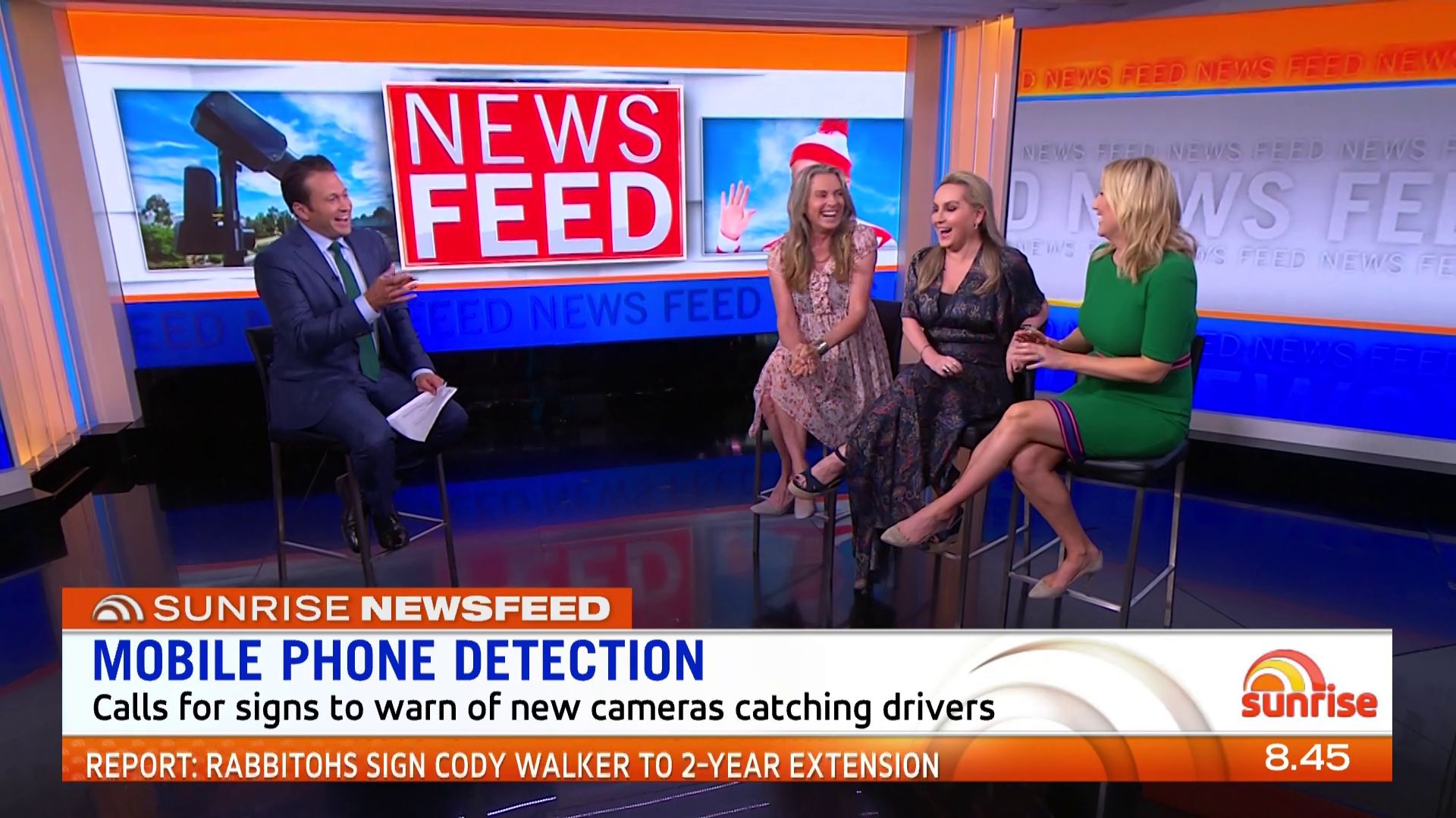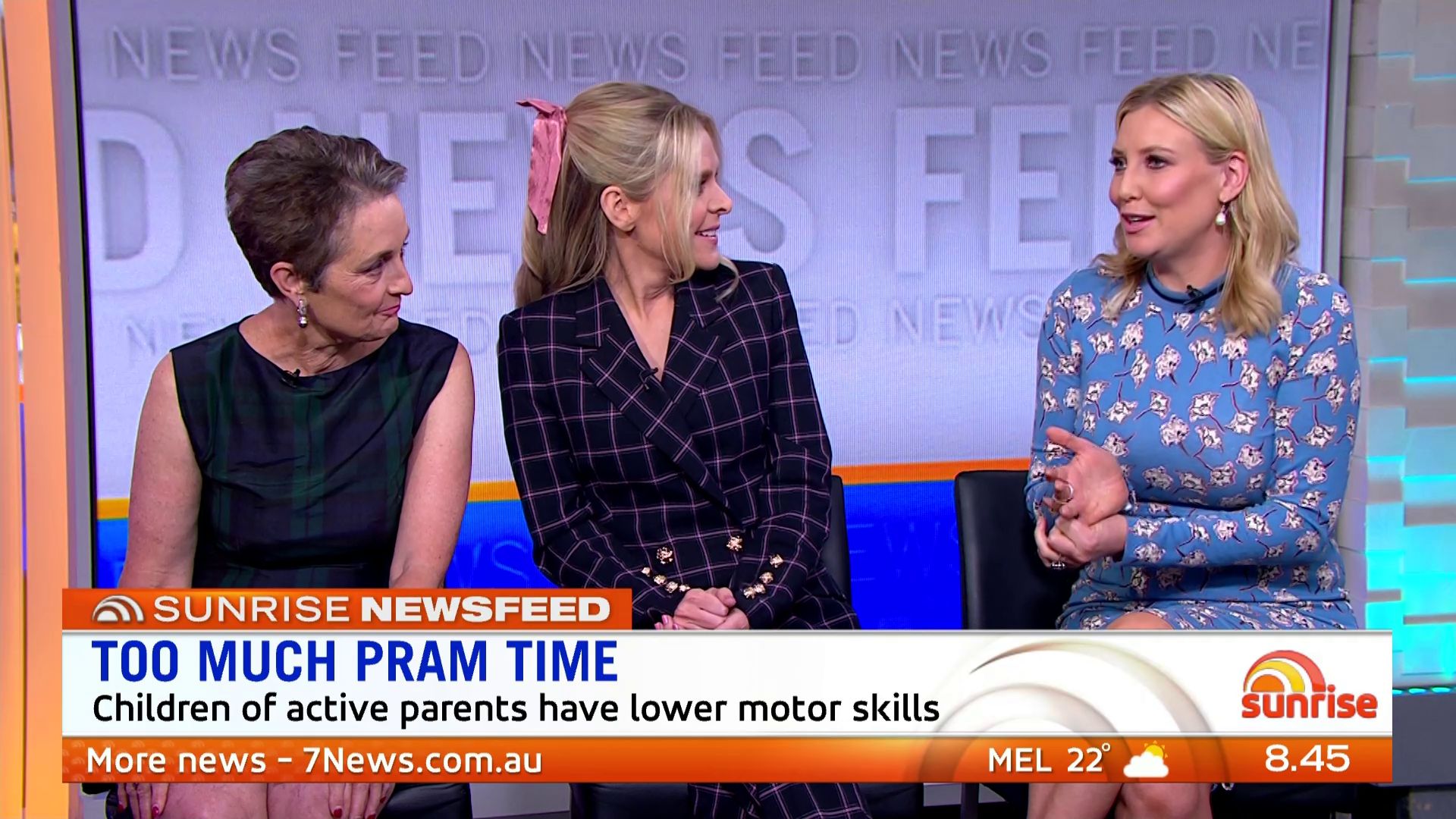 At 7:42 on the couch showing heaps of thigh the the camera left cams back and dress pulled down to cover the exposure. Very nice