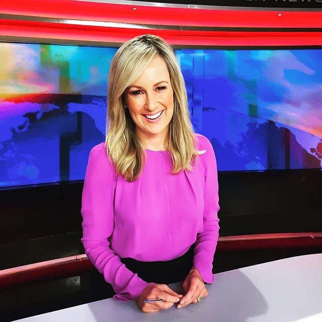 mel is looking so sexy doing the news on the morning show in black top and black short leather skirt
