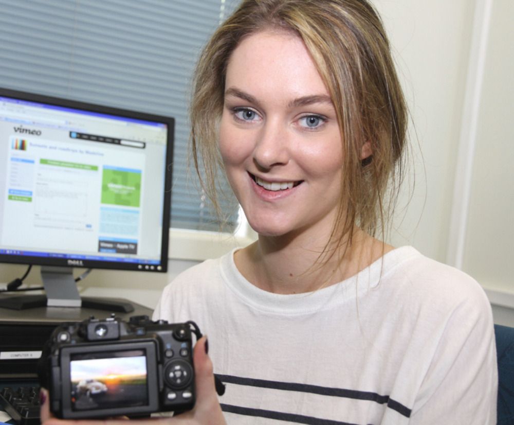 Madeline on her knees with a blindfold...dreams do come true