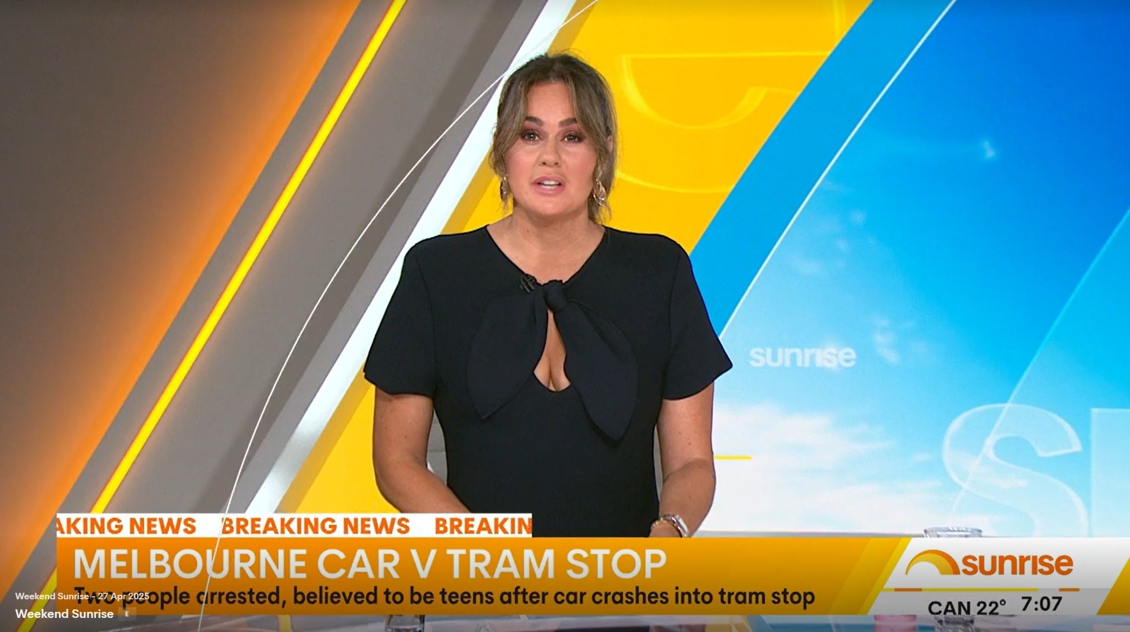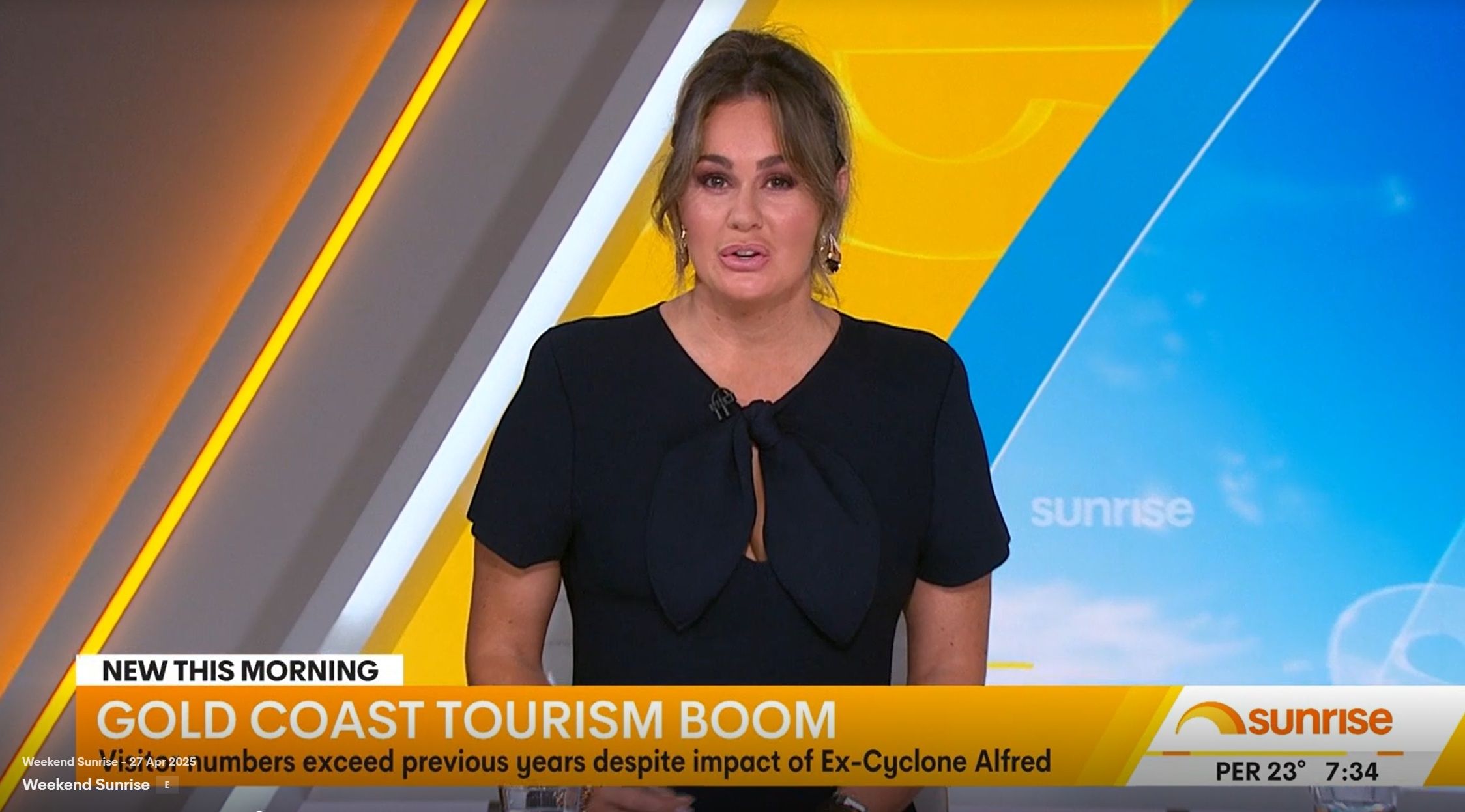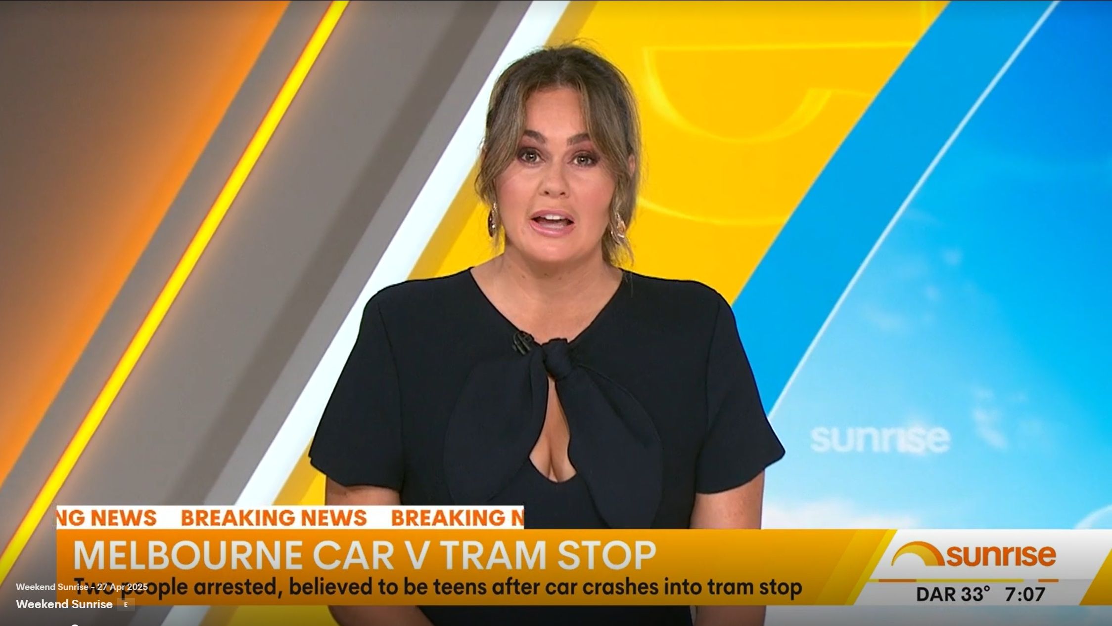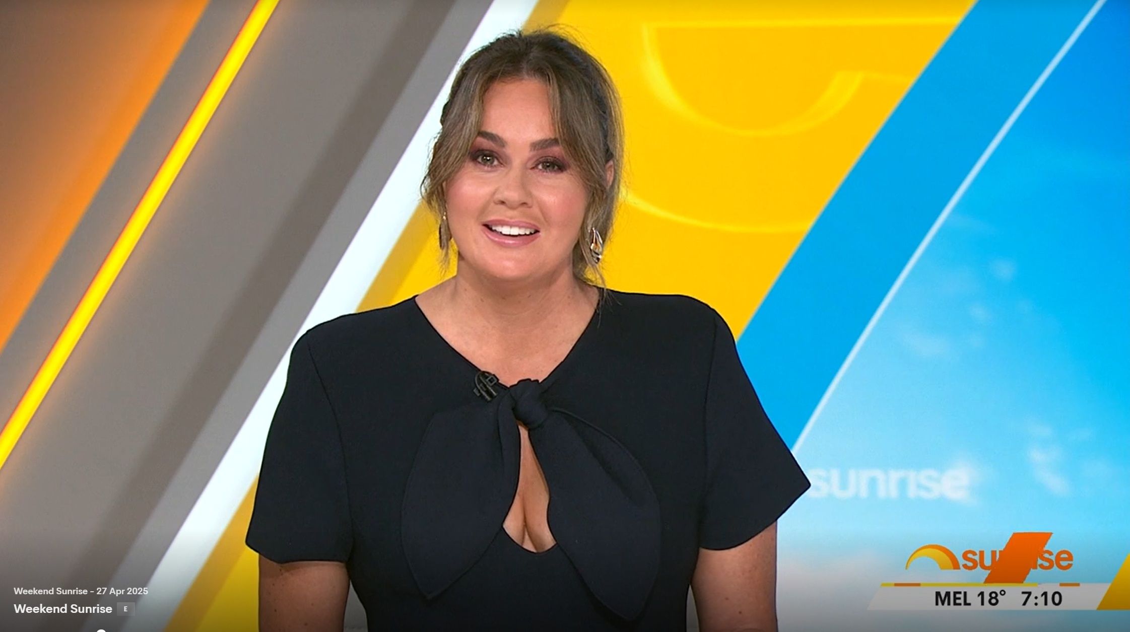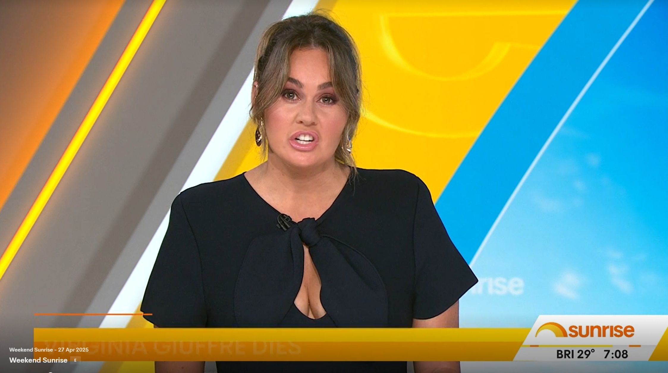 Teegan doing Weekend Sunrise today. Nice low cut top showing off her assets. Can someone get some photos please