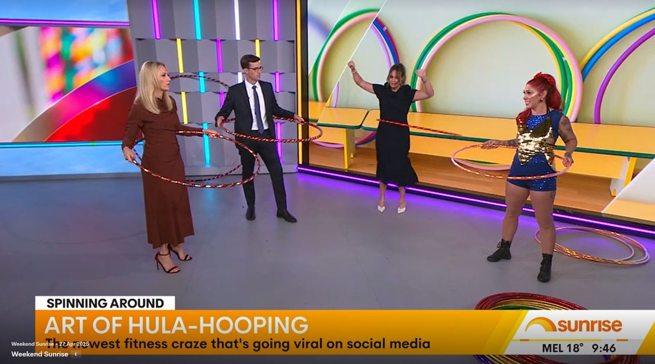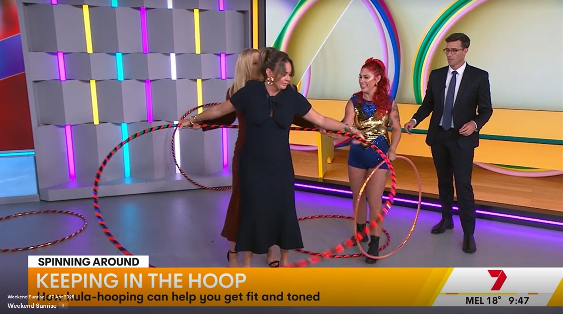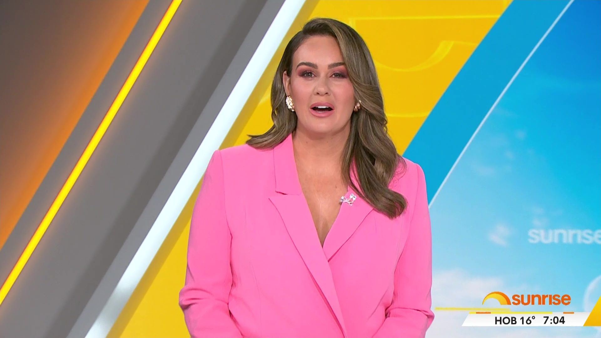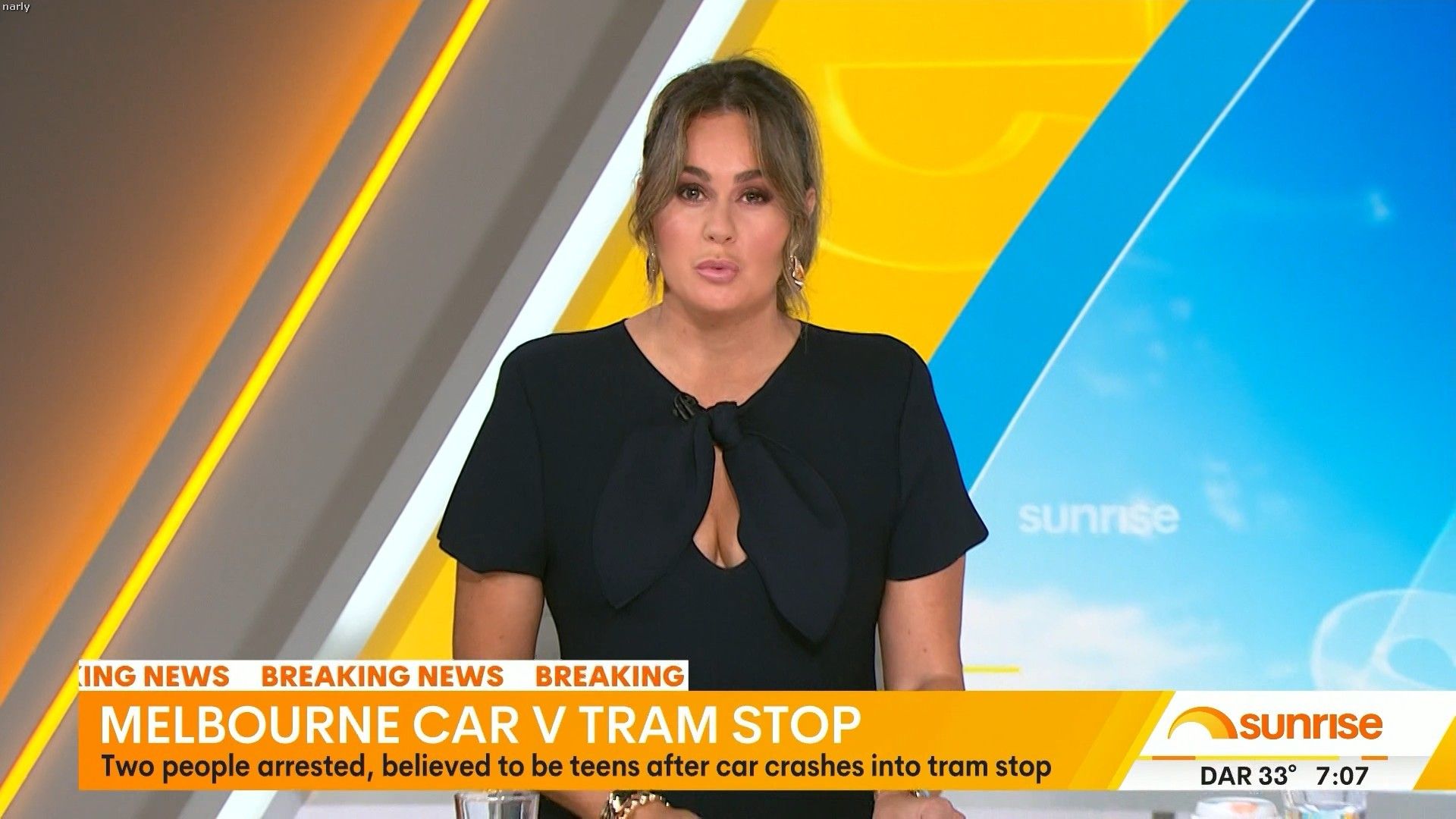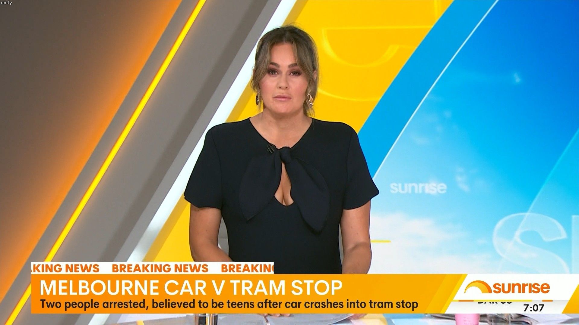 Teegan doing Weekend Sunrise today. Nice low cut top showing off her assets. Can someone get some photos please