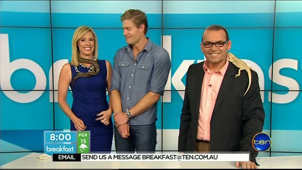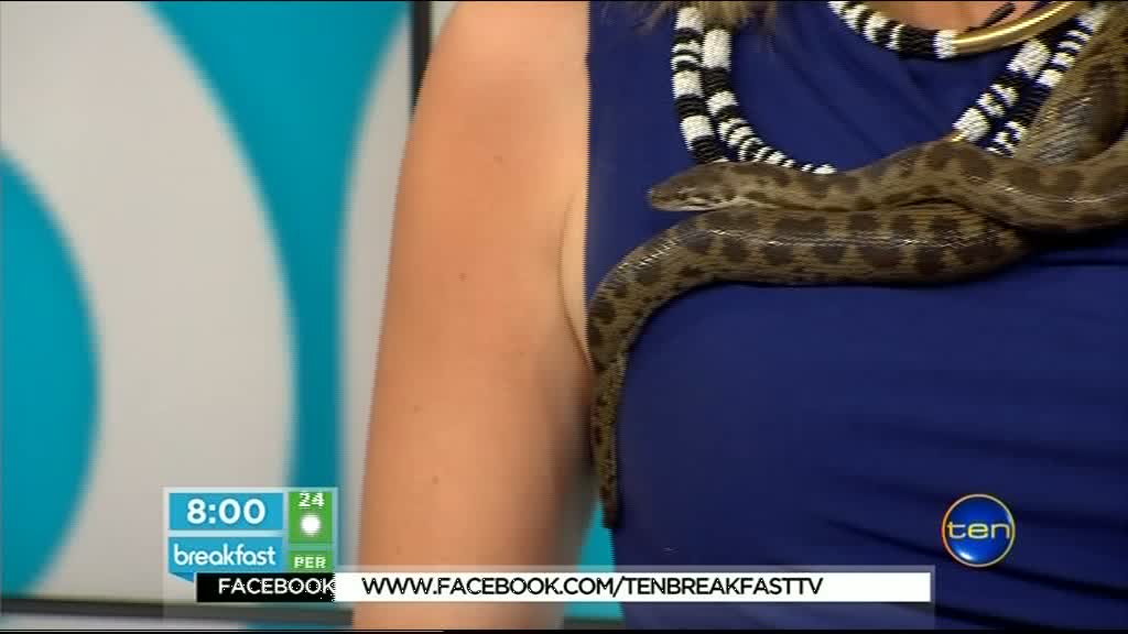 I'd like to show Kathryn my snake. It's a species known as your common trouser snake. As a snake handler she appears very adept.