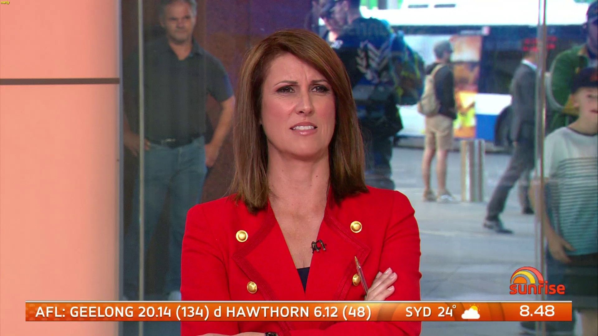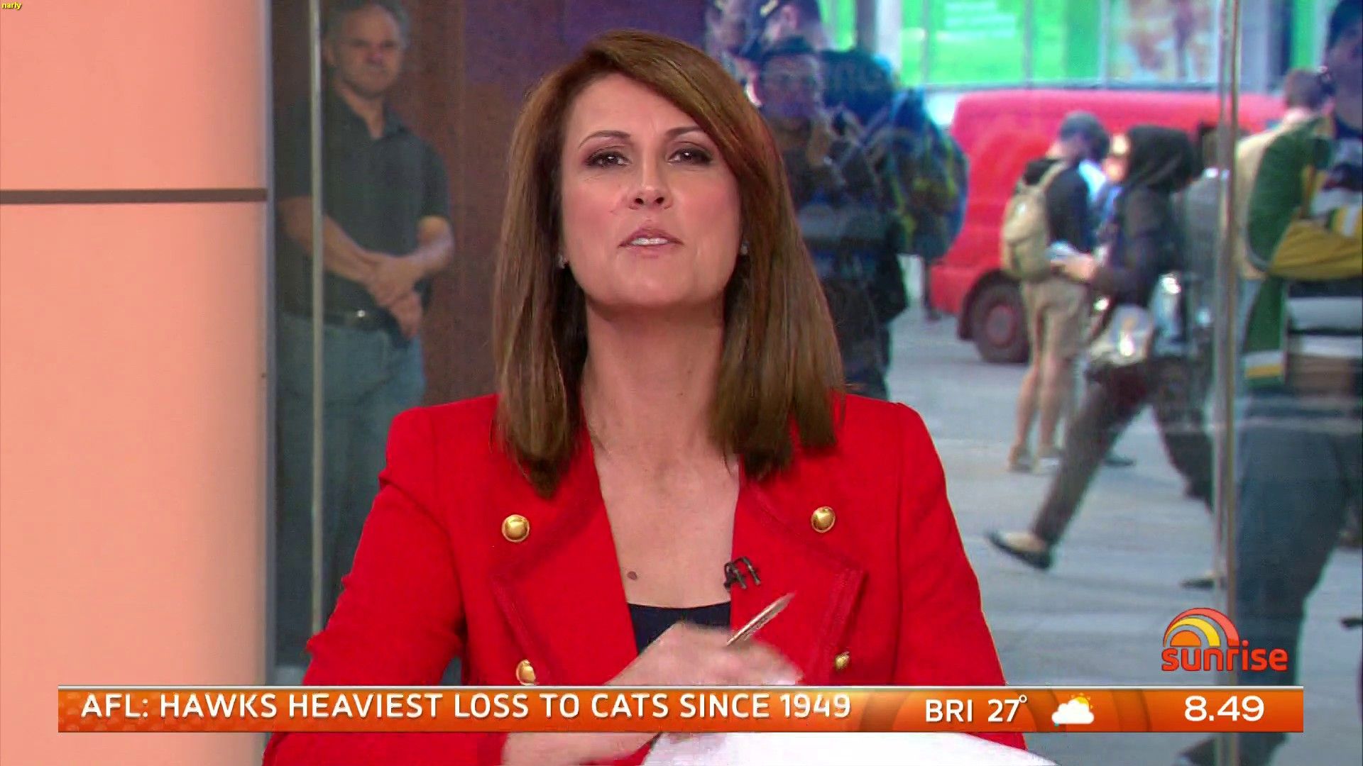 narly wrote: That 2nd pic confirms it , after going through a weeks worth of Sunrise ... Nat's lost the plot ........ wardrobe wise  The bloke behind her thinks it's a variation of the burka.
