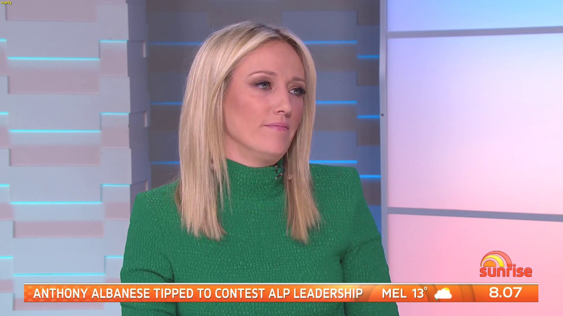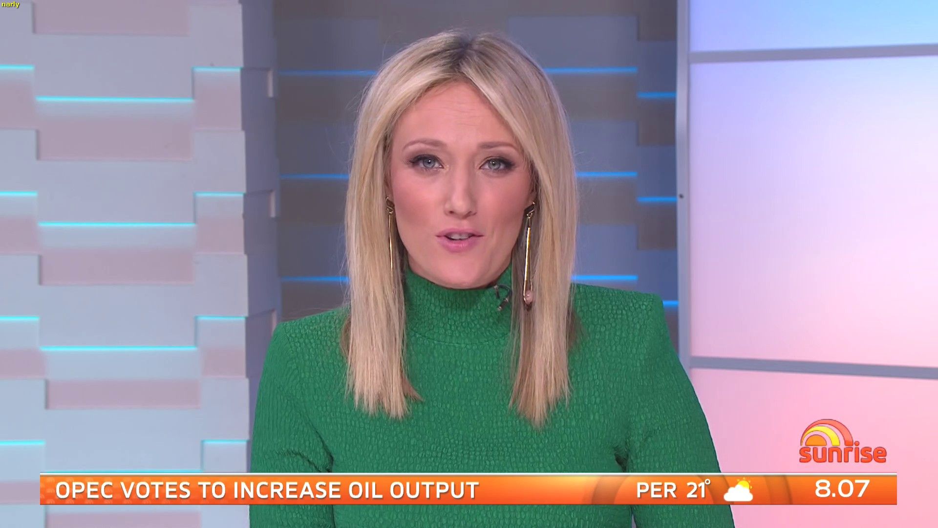 She was wearing a skirt and amazing nylon pantyhose this morning. Did anyone capture it?