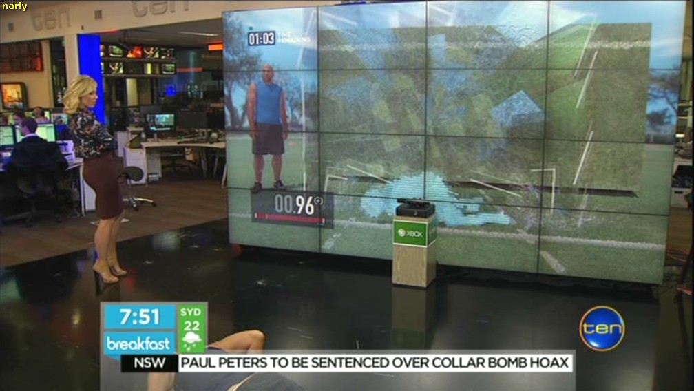 any caps of Kath this morning? the xbox segmentshe was showing some leg