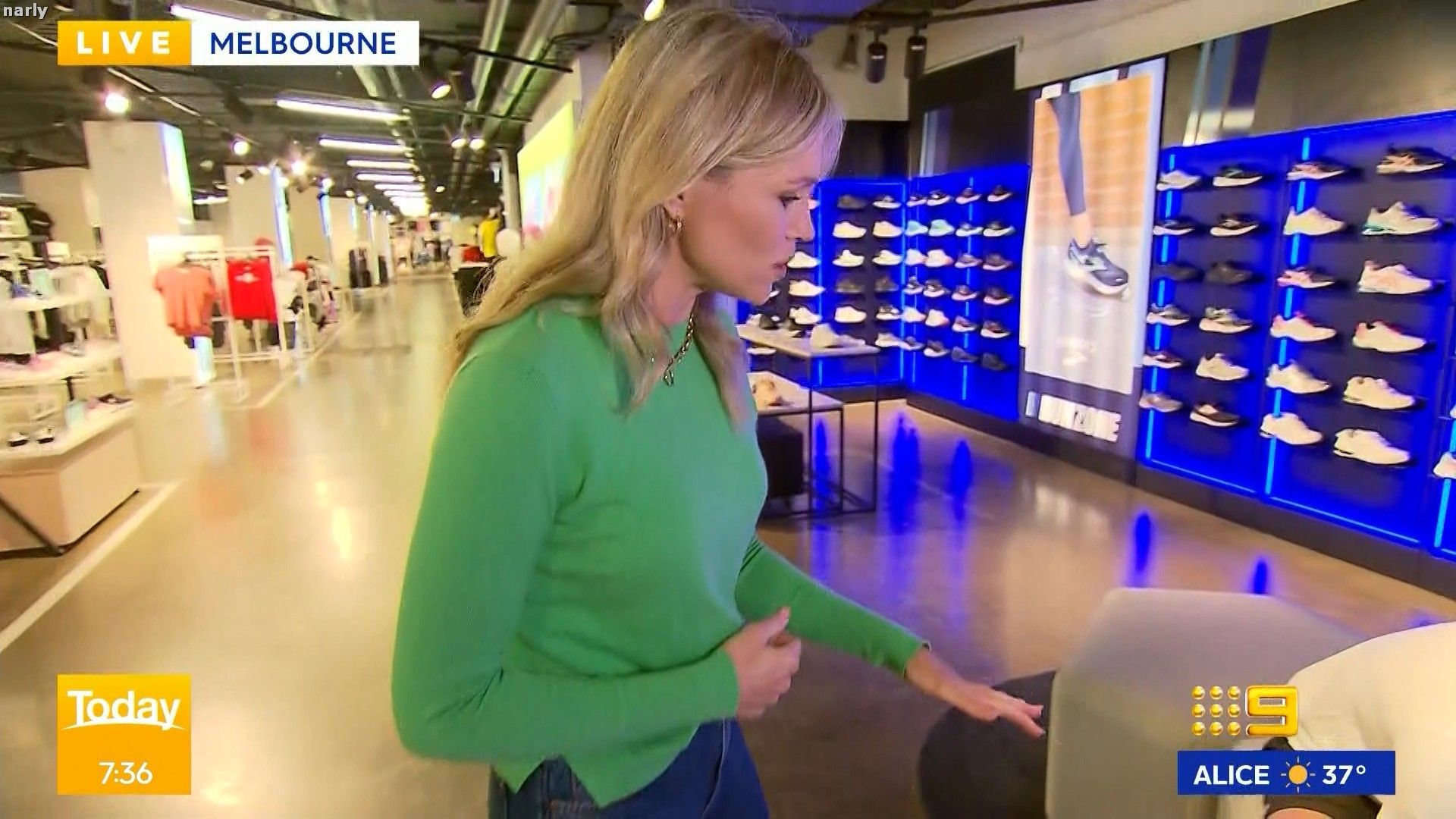 Great caps of this blonde beauty. Old mate checking her ass out in caps she's wearing green too 👌