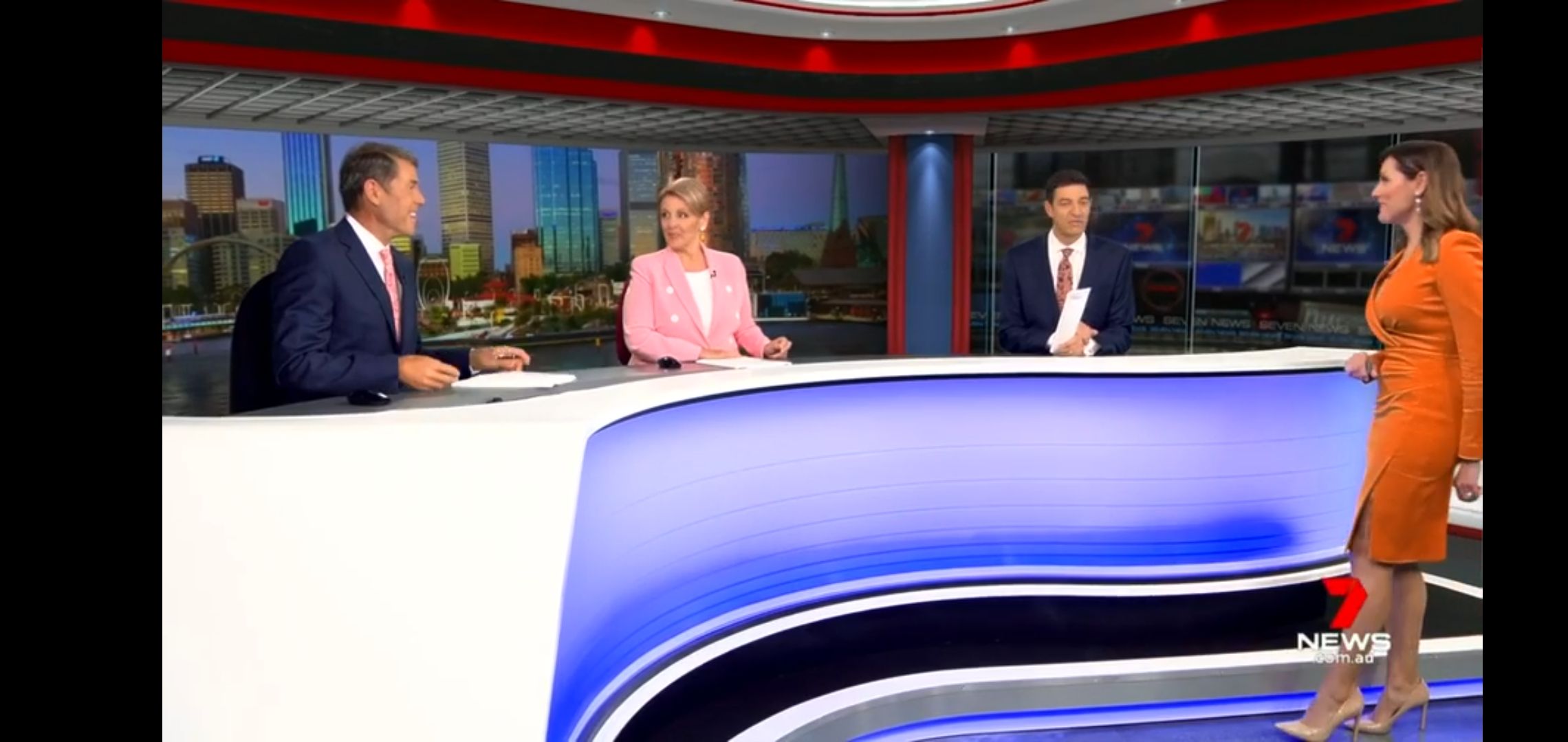 That blue pantsuit is just perfect on Sam she looks awesome