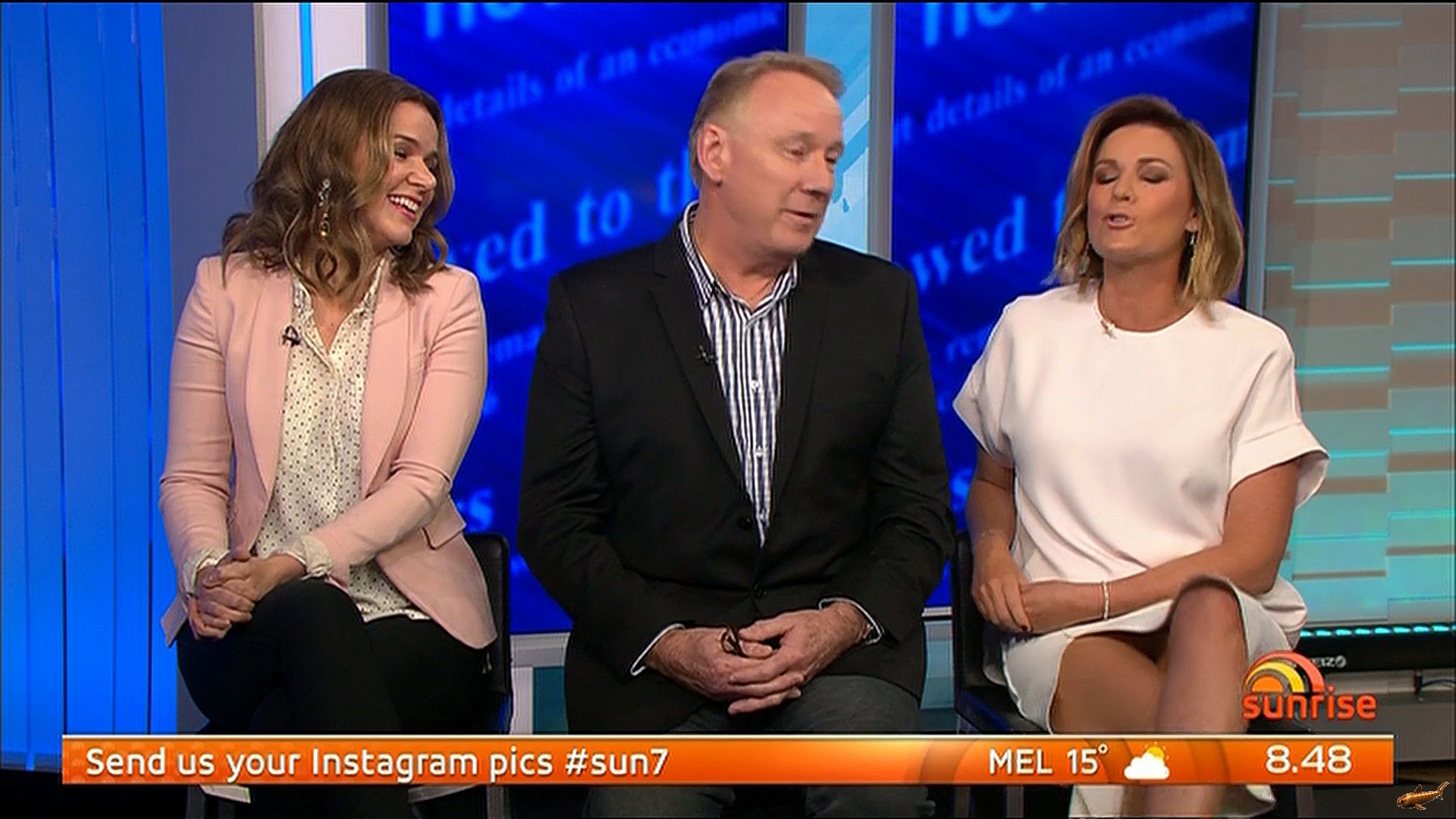 Please I hope someone was recording Sunrise at about 8:50 as Kylie was a guest commentator sand at the end of the segment Looks like a very nice upskirt as she crosses her legs