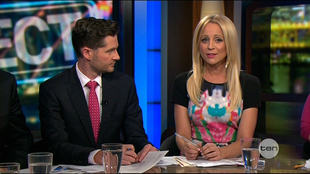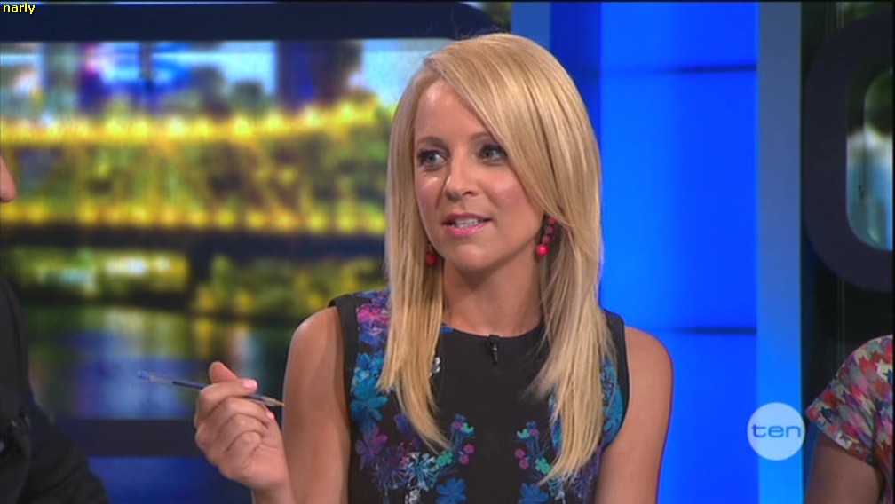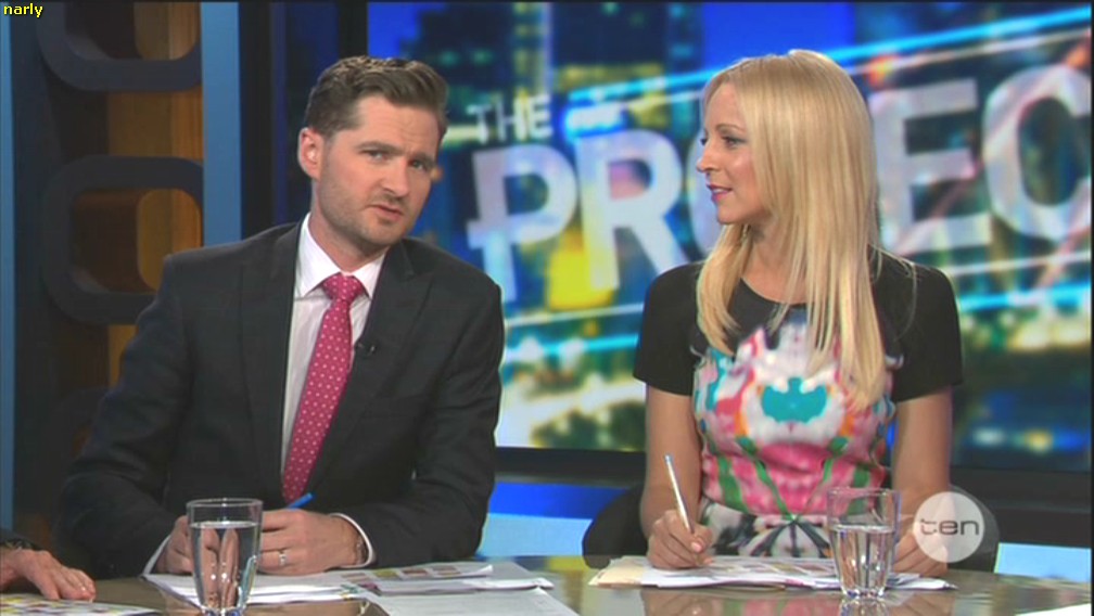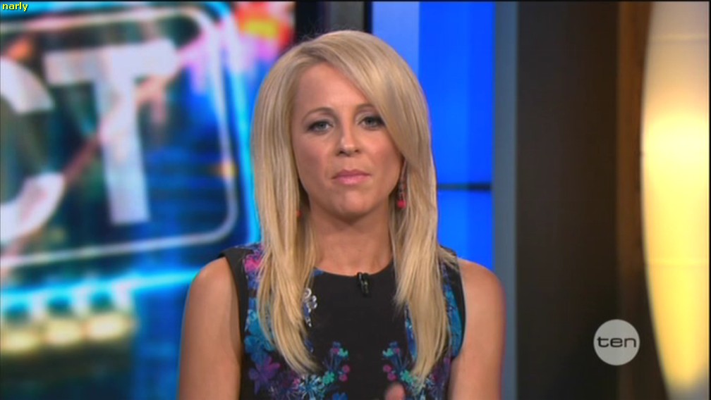 Hi I hope someone capped Carrie yesterday on The Project. She looked great in red and was showing a lot of cleavage