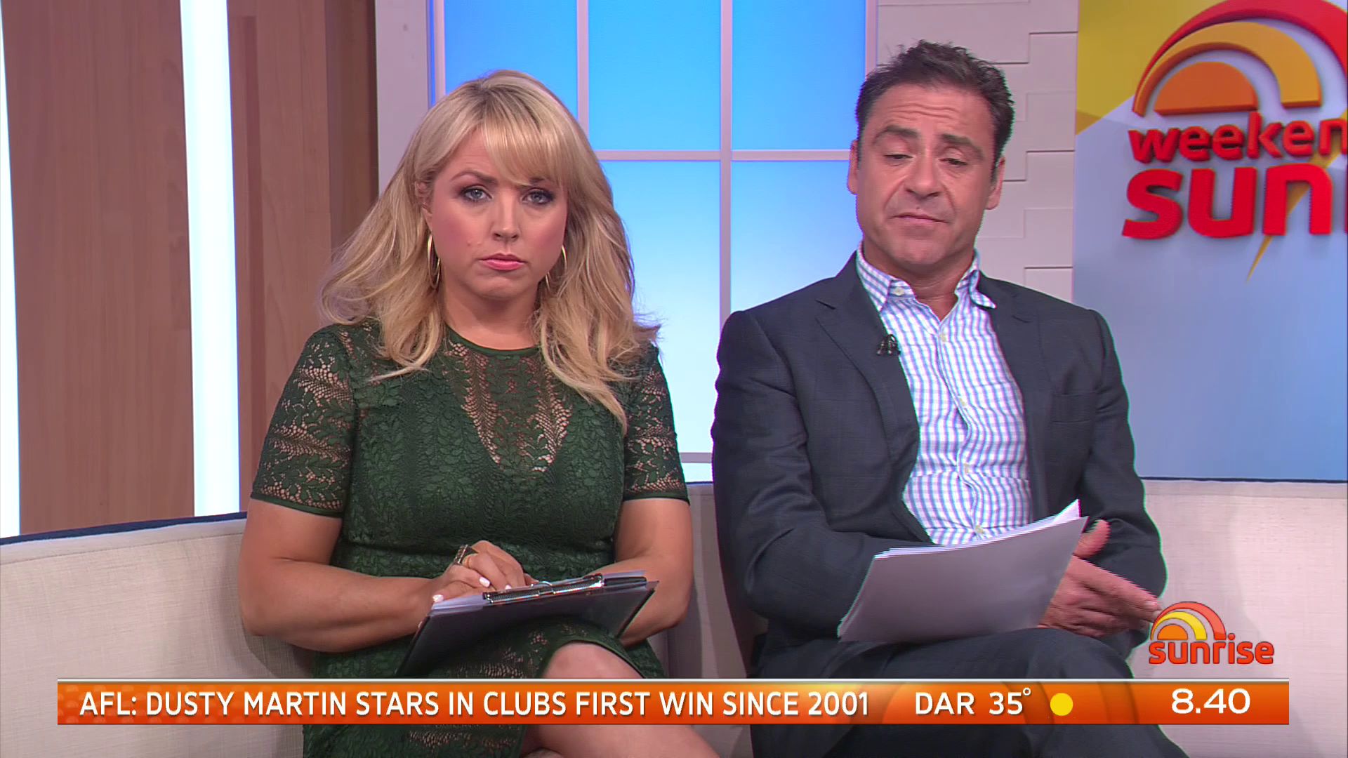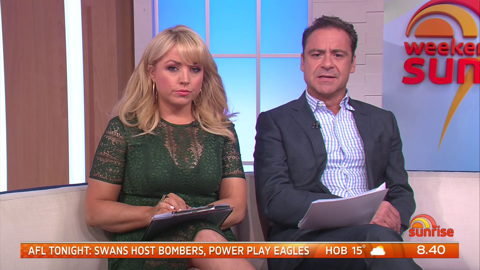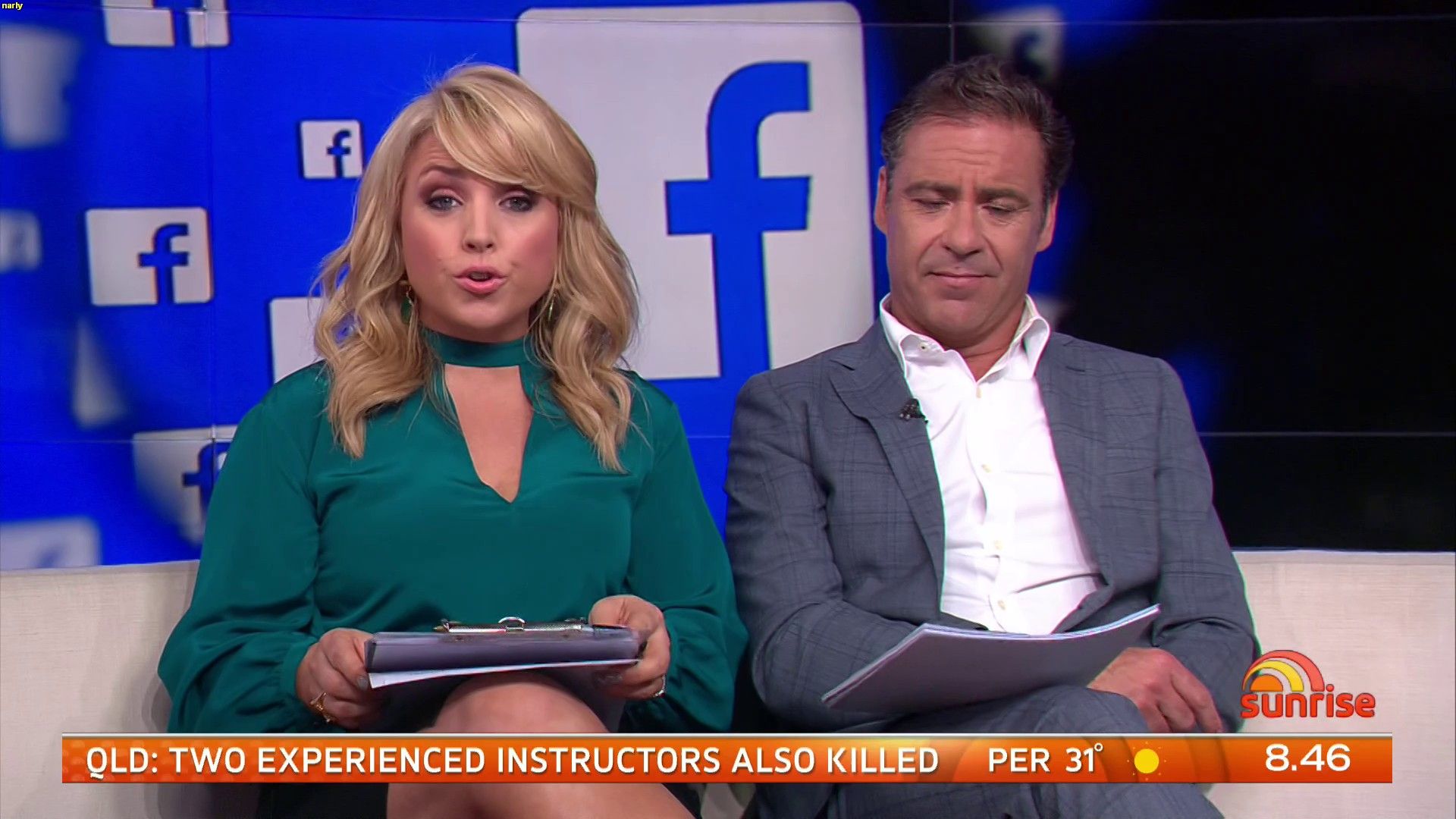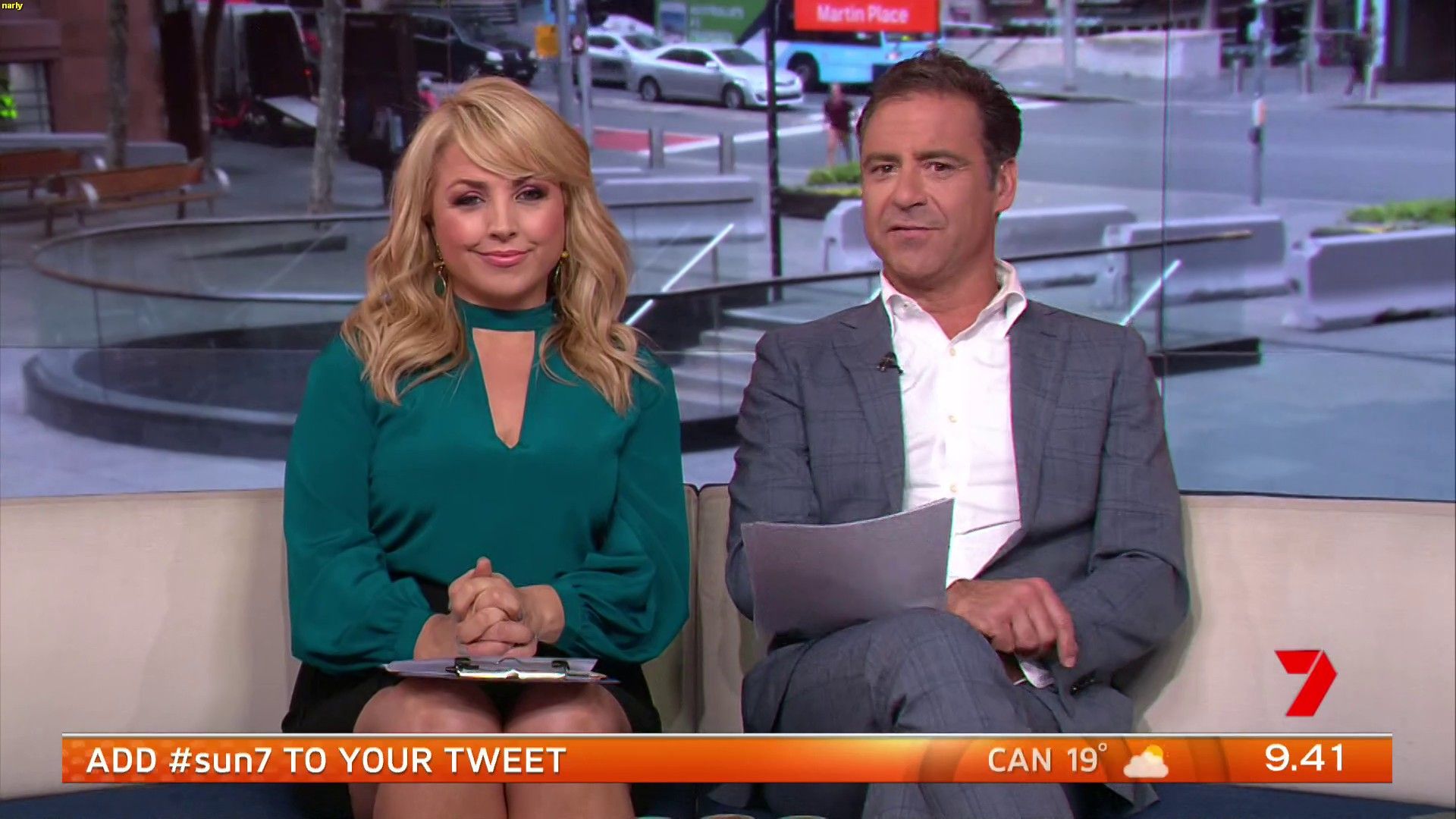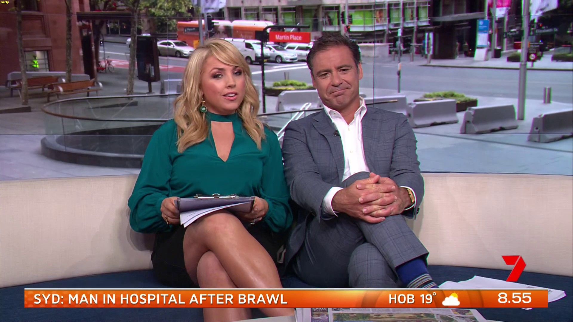 Was Mon wearing stockings today, right at the end of the show it looked like it,.