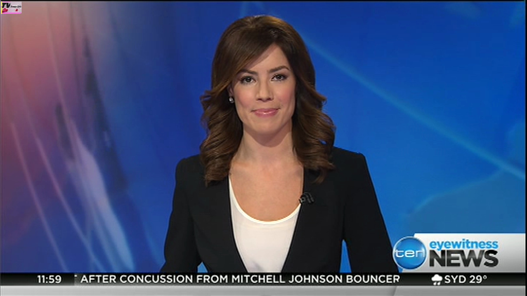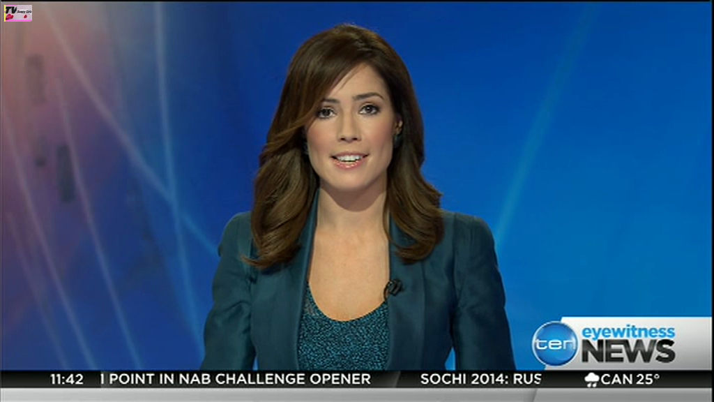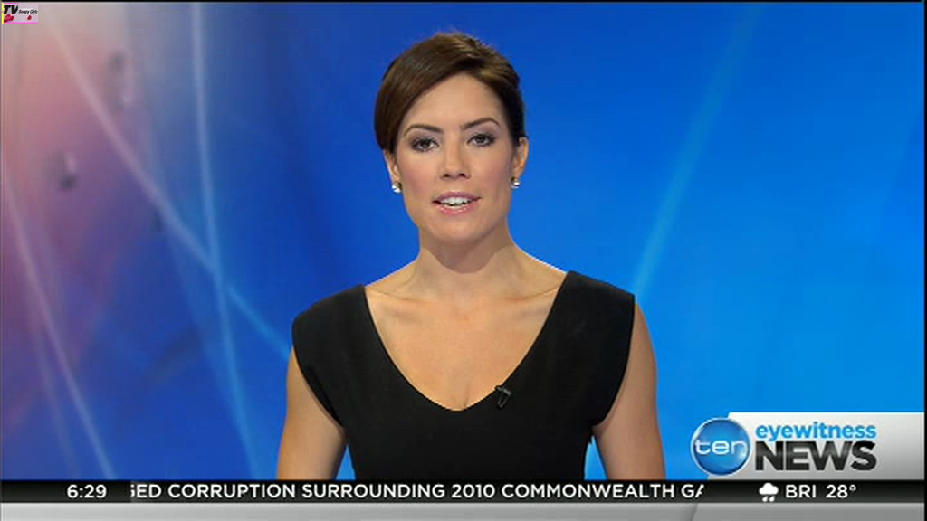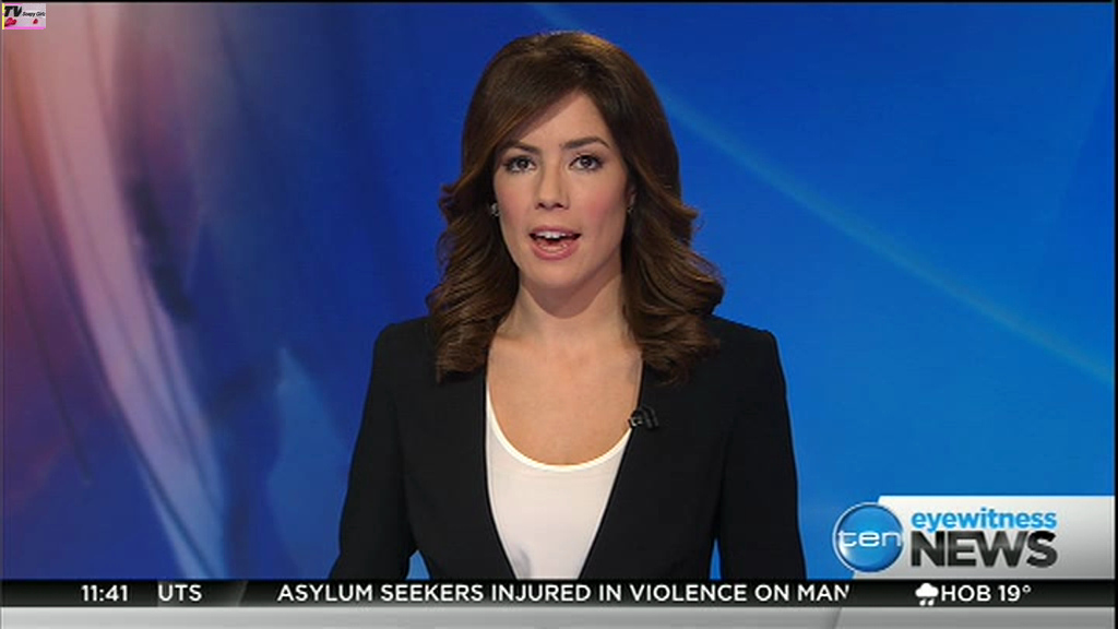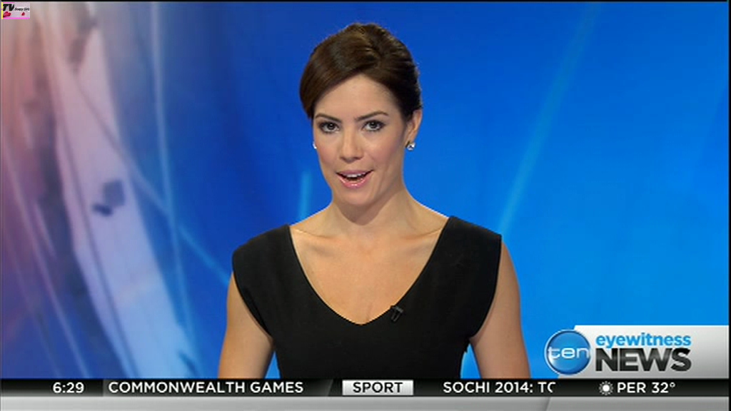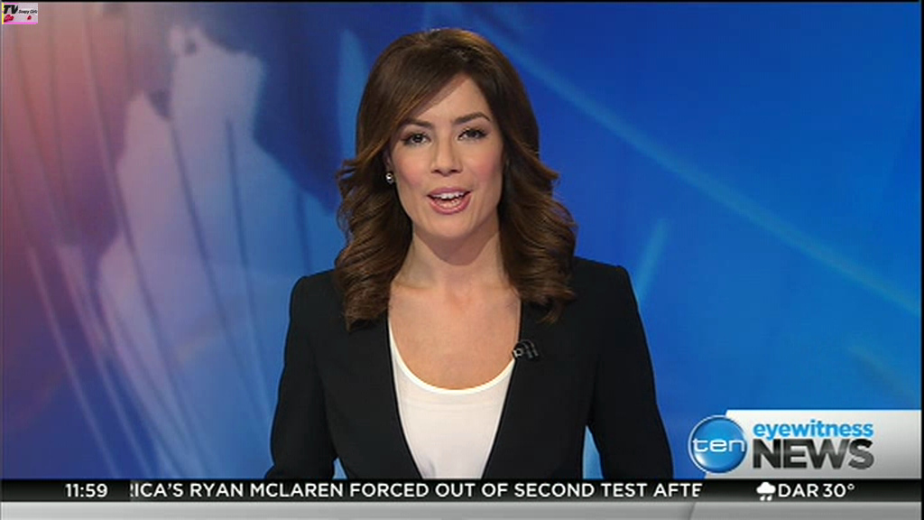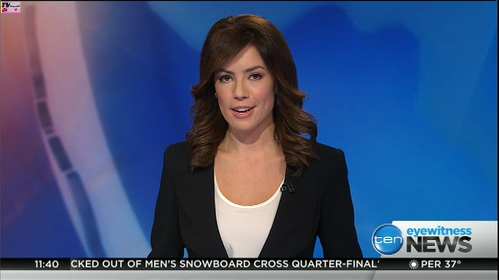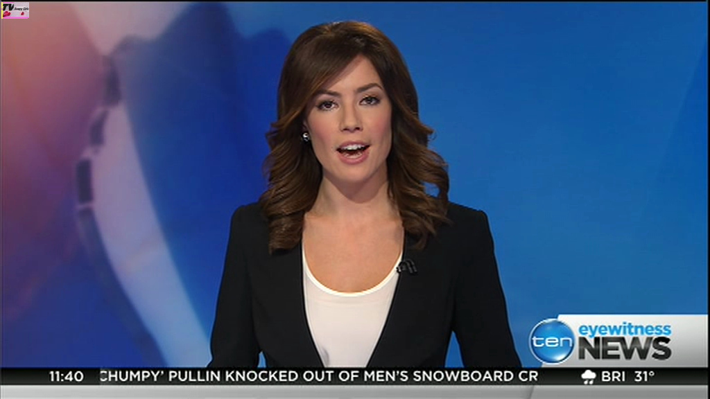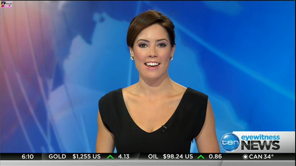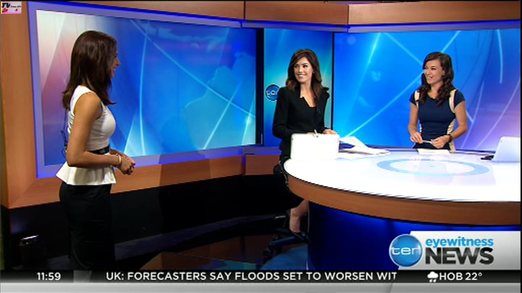 Ladies bringing us the news. Hermione Kitson is showing some leg.  BTW, She was born in New Zealand and is 30 years old.