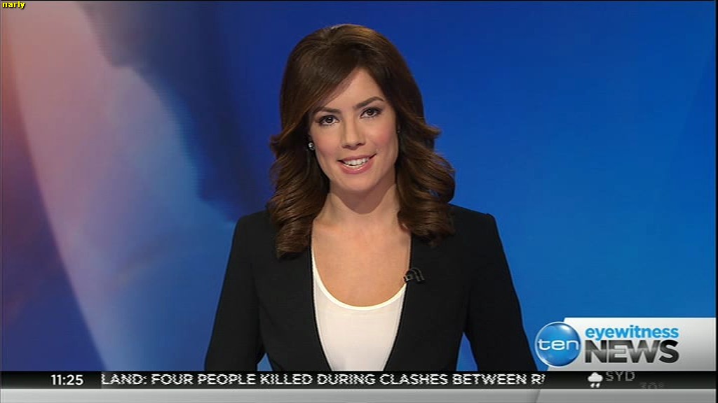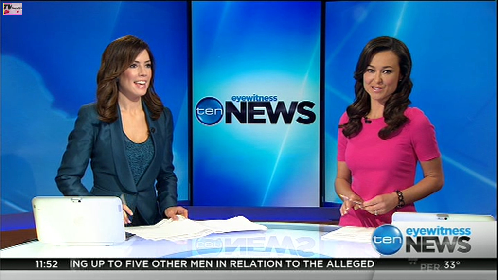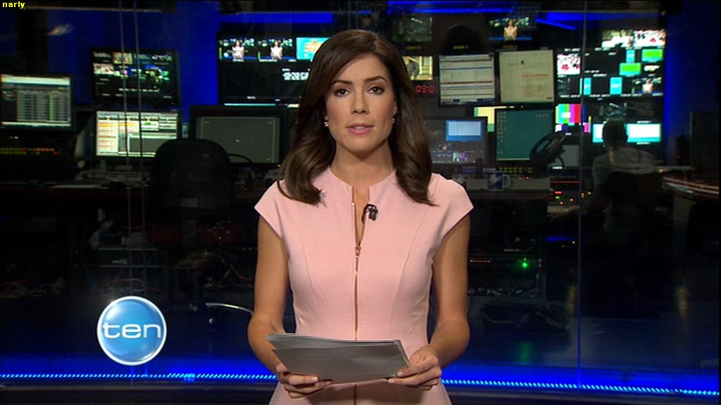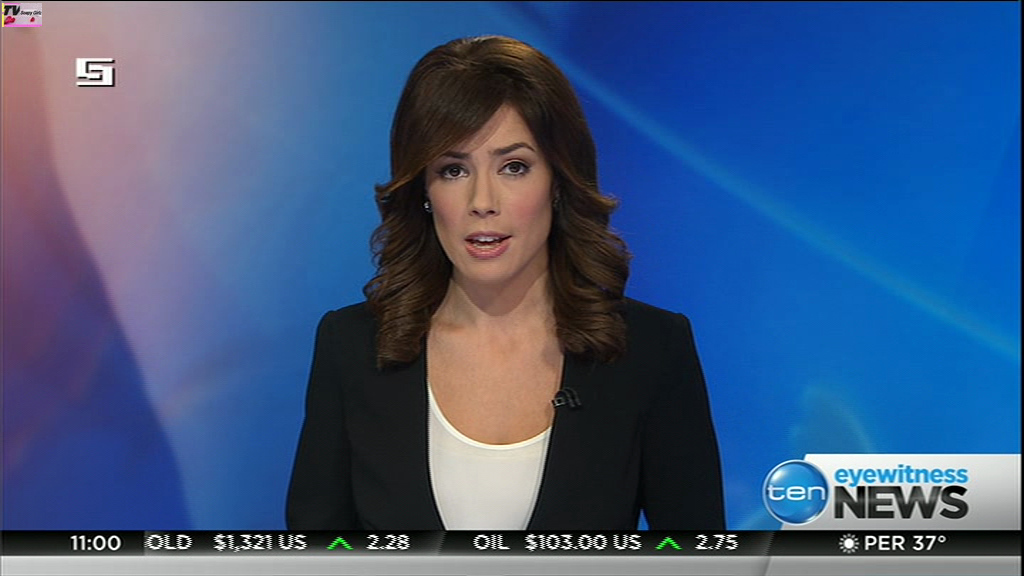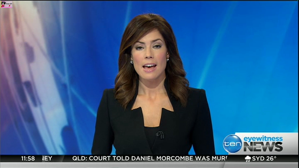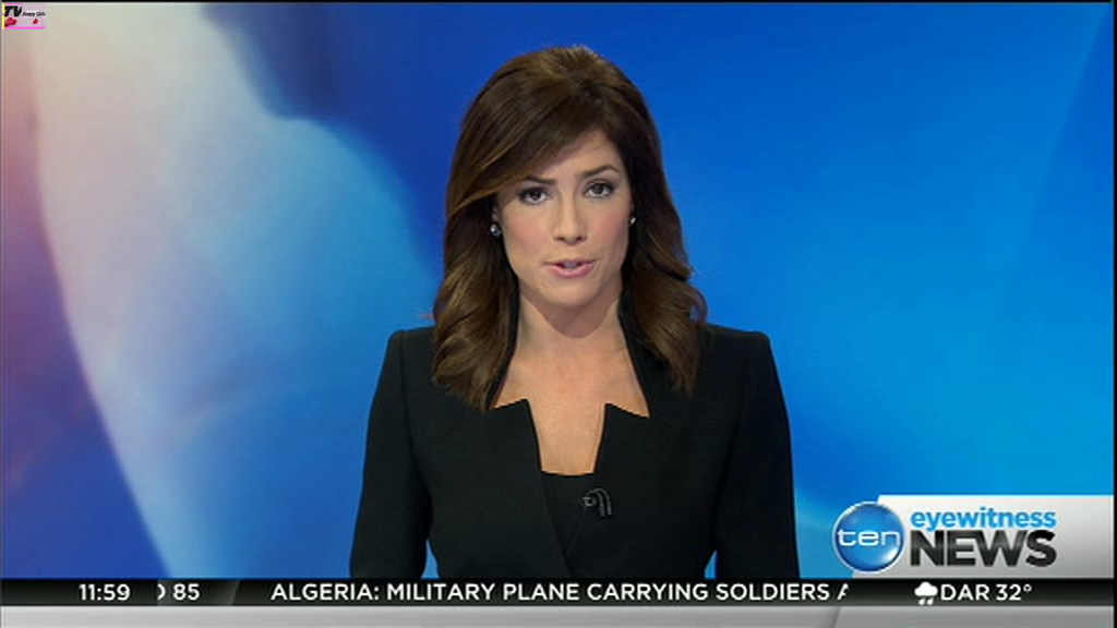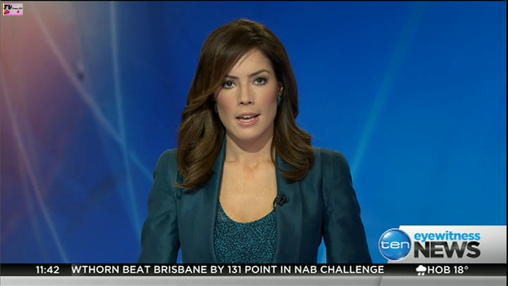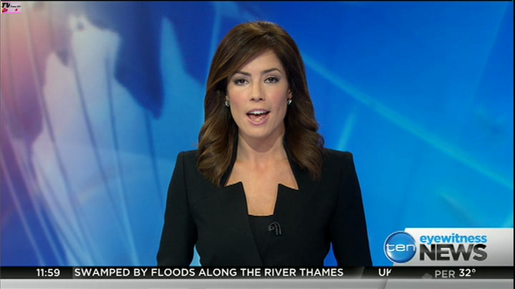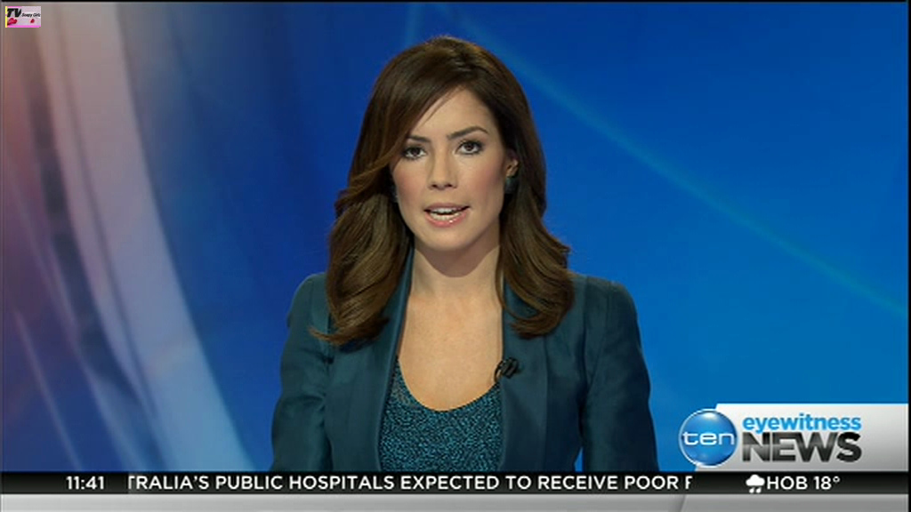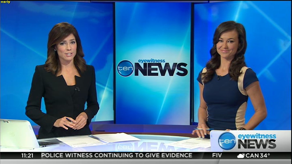 Ladies bringing us the news. Hermione Kitson is showing some leg.  BTW, She was born in New Zealand and is 30 years old.