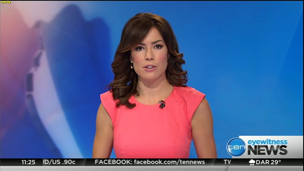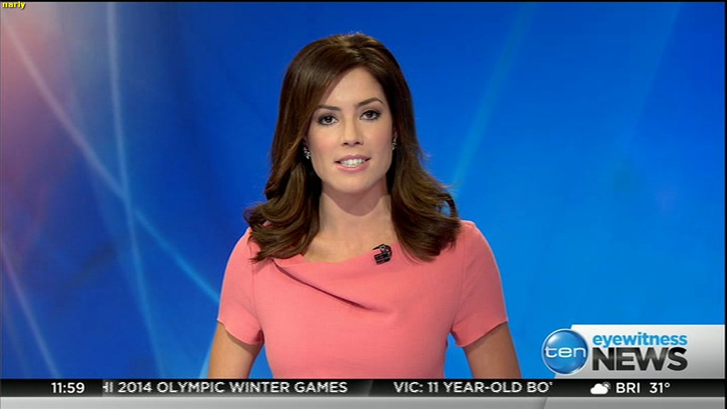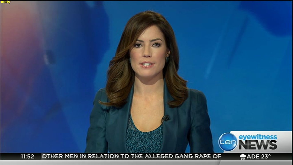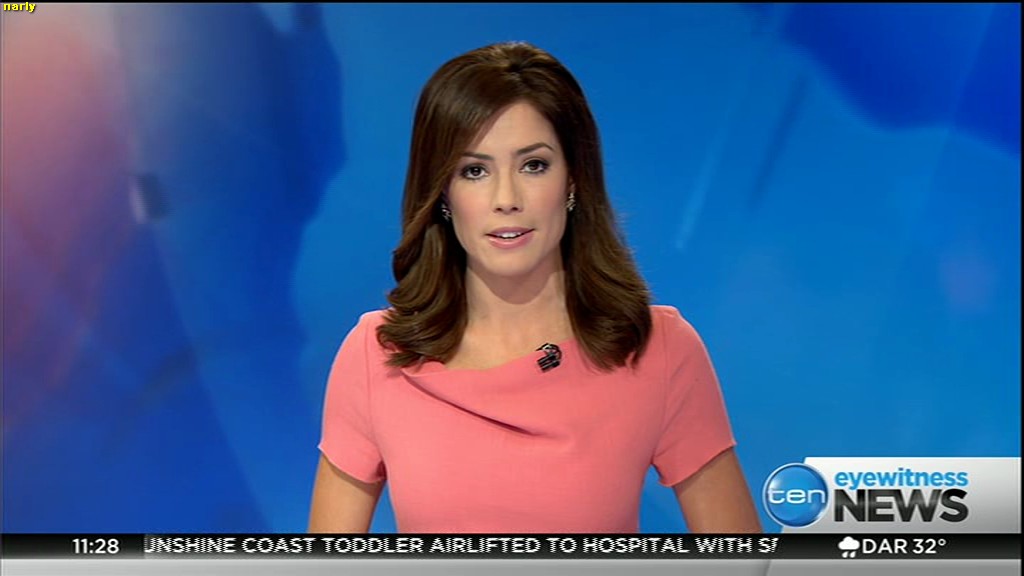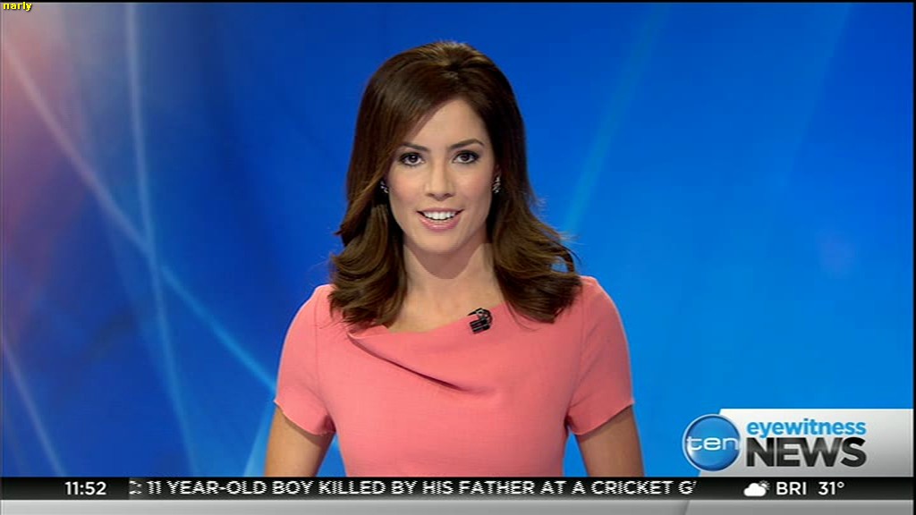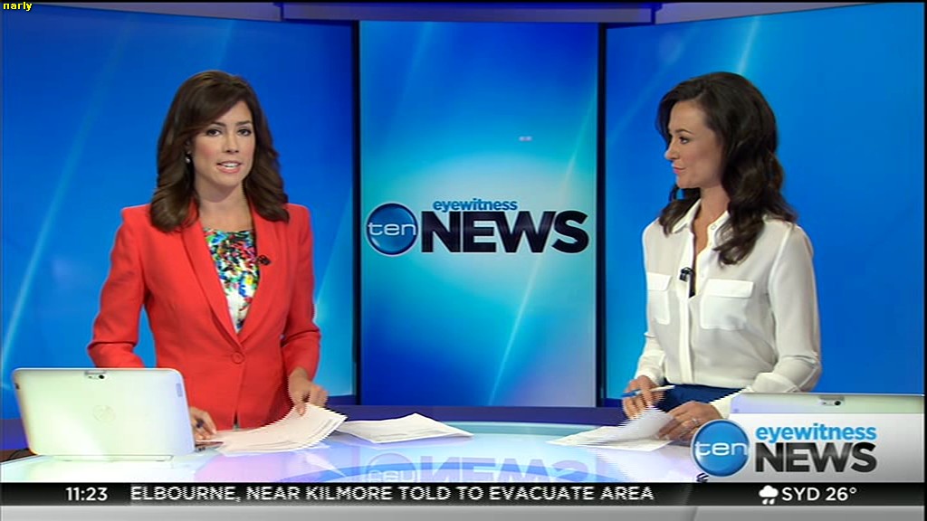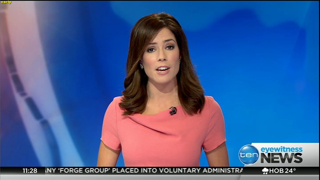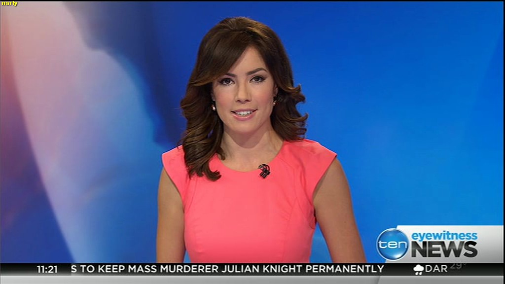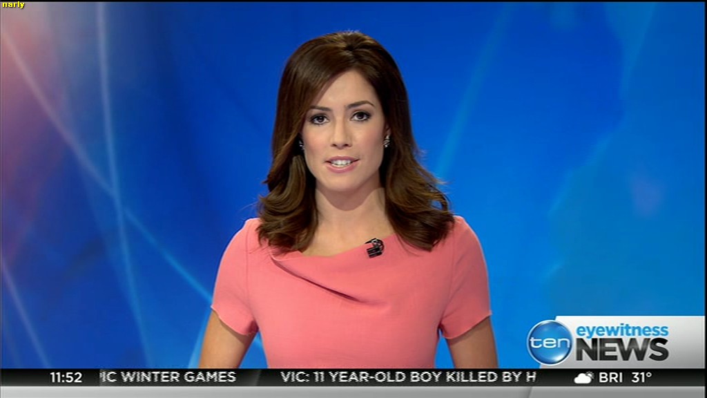 Ladies bringing us the news. Hermione Kitson is showing some leg.  BTW, She was born in New Zealand and is 30 years old.