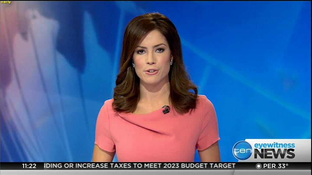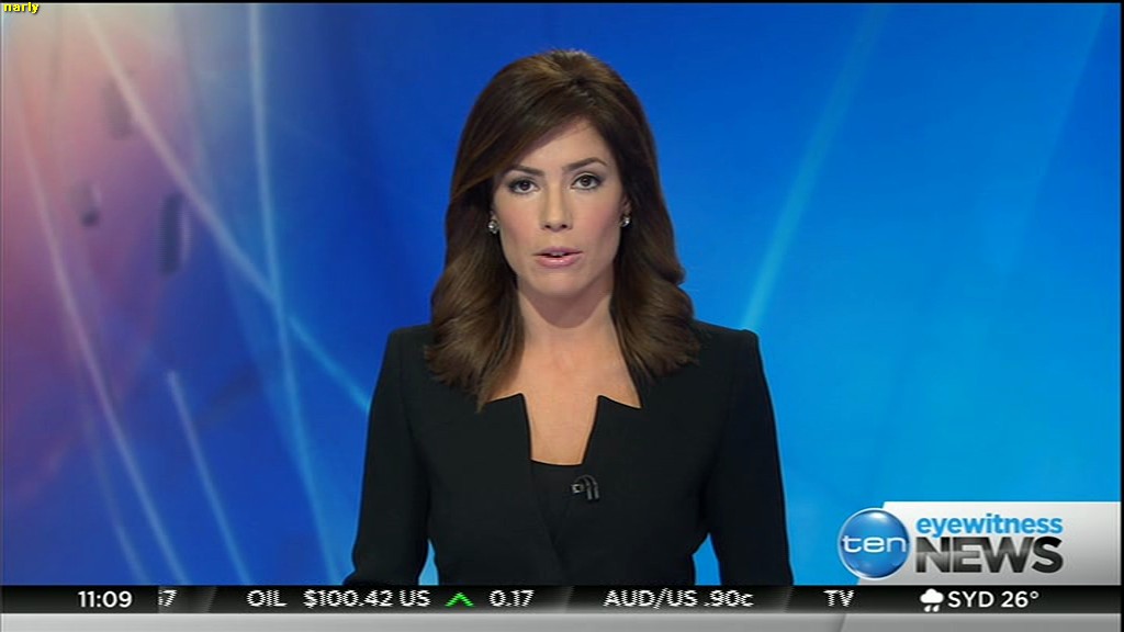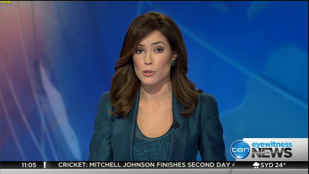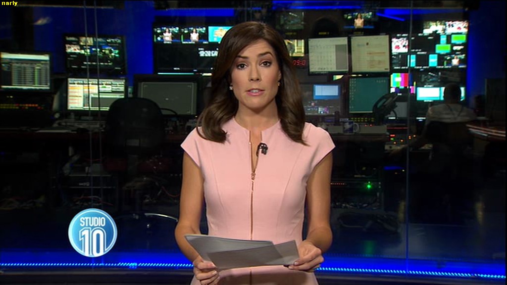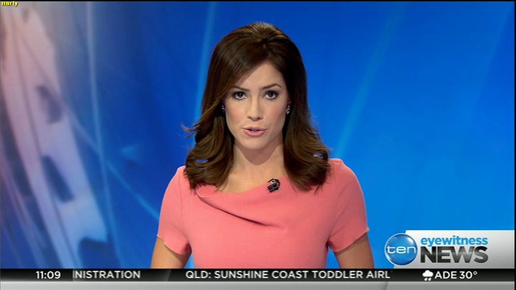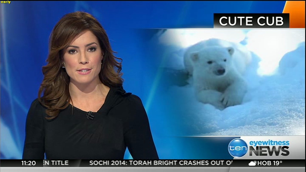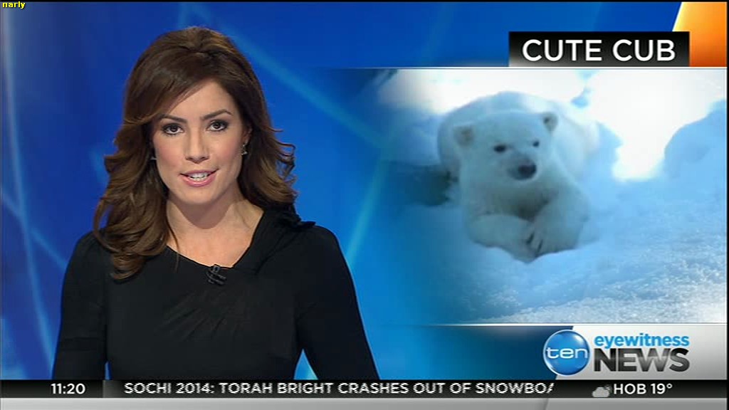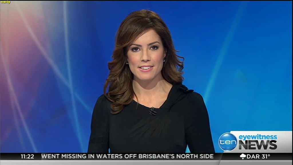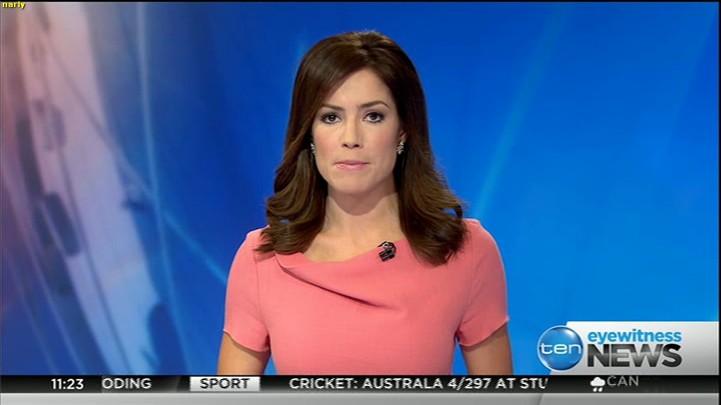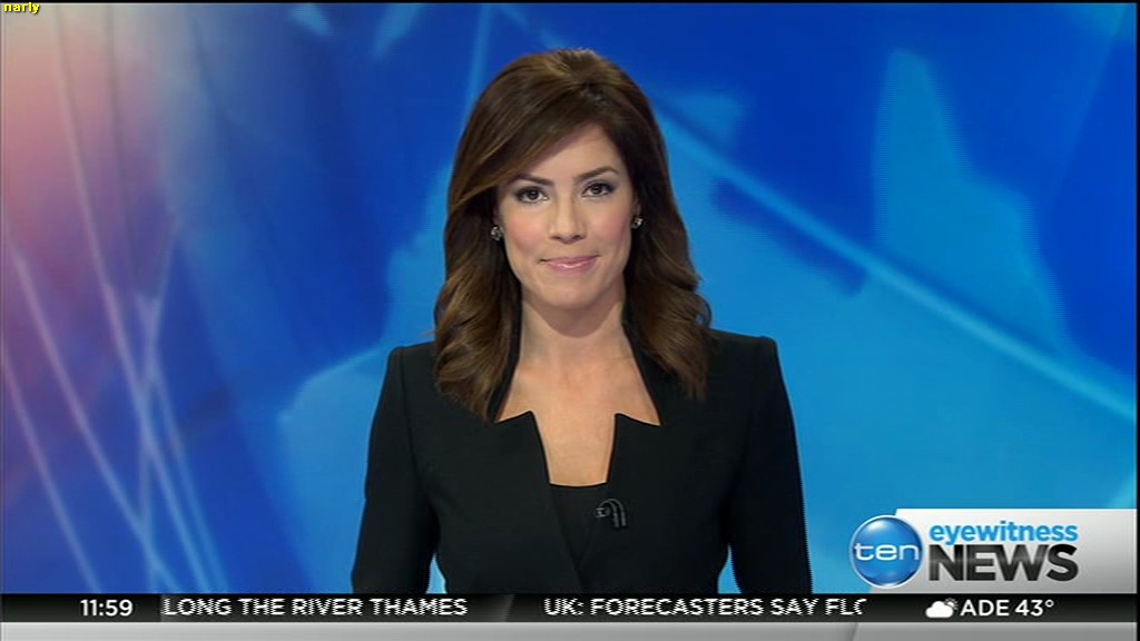 Ladies bringing us the news. Hermione Kitson is showing some leg.  BTW, She was born in New Zealand and is 30 years old.