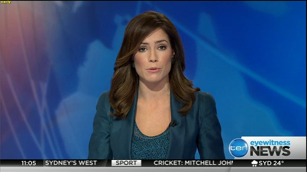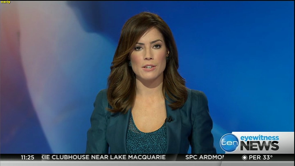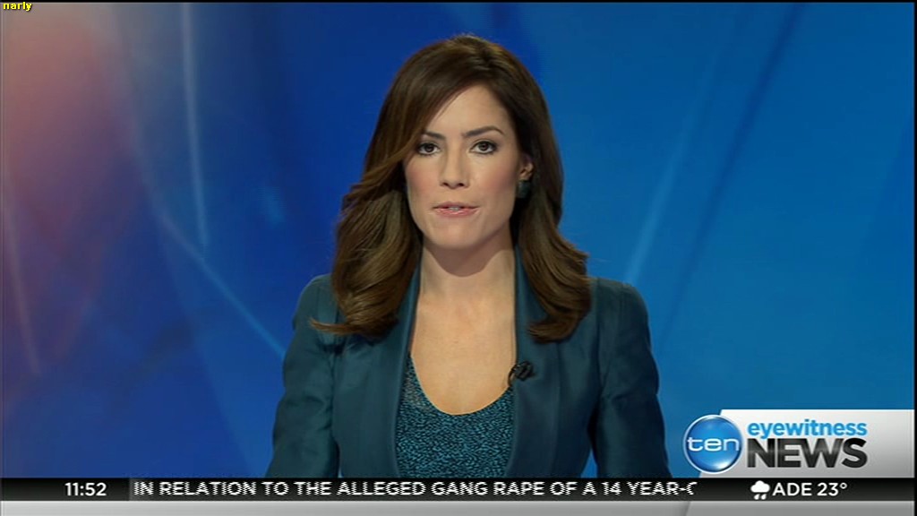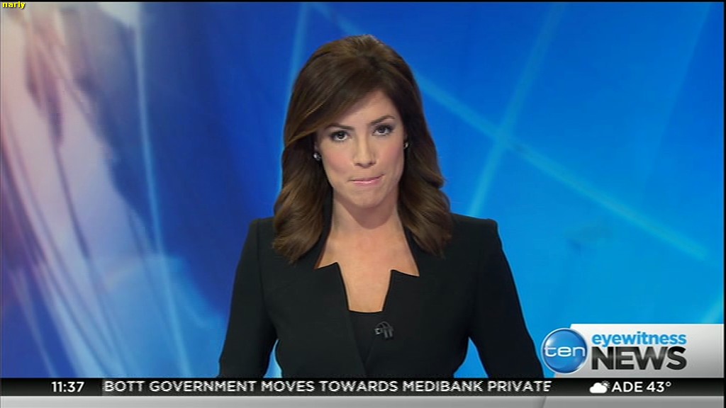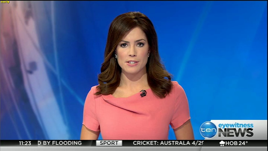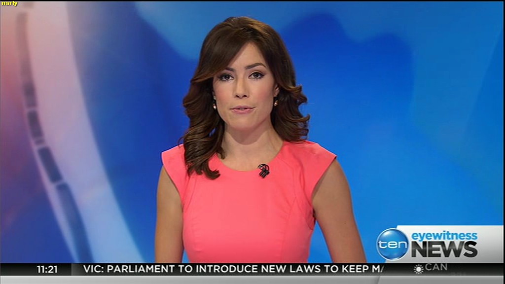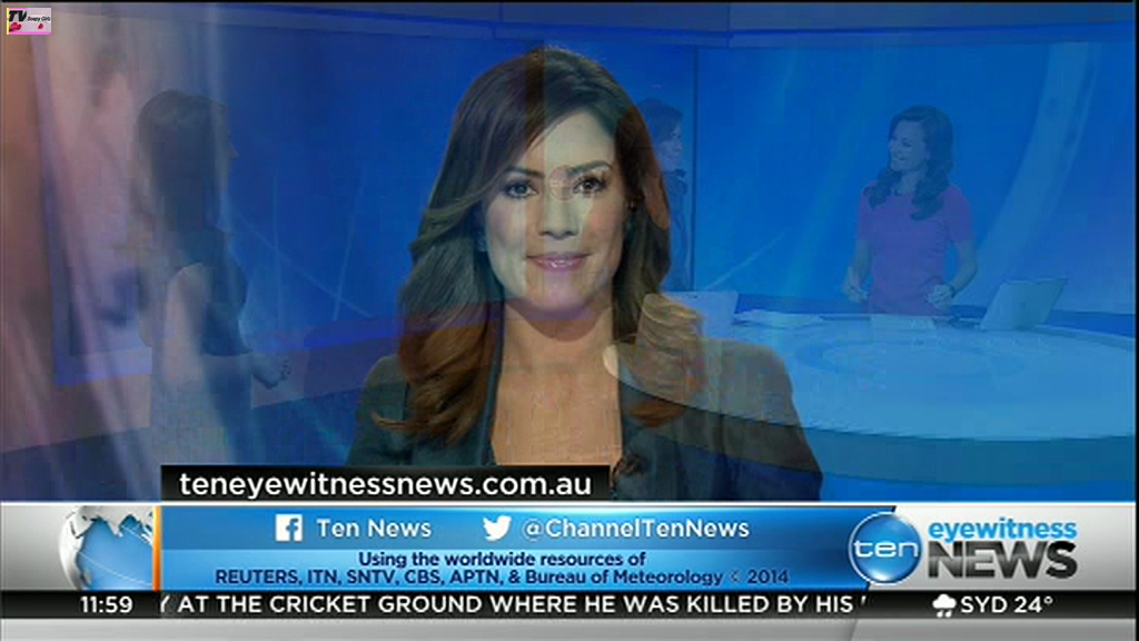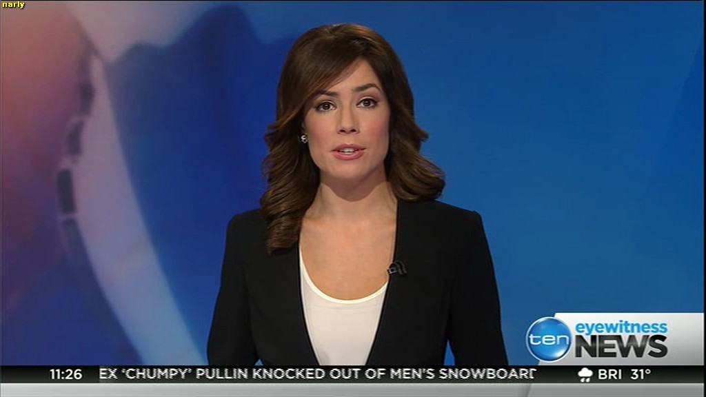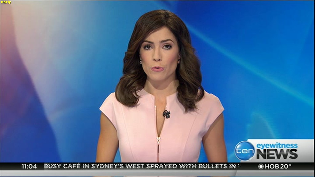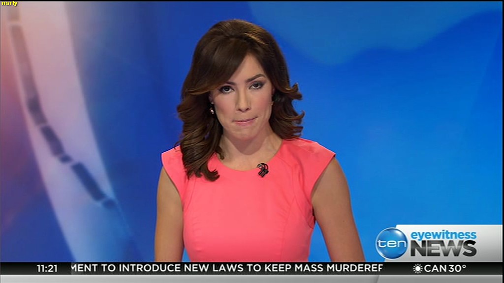 Ladies bringing us the news. Hermione Kitson is showing some leg.  BTW, She was born in New Zealand and is 30 years old.