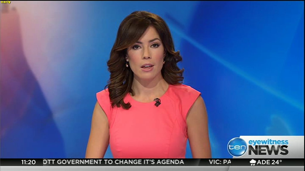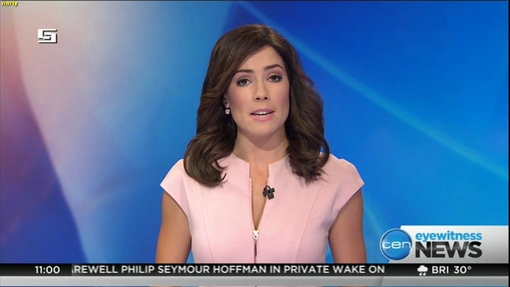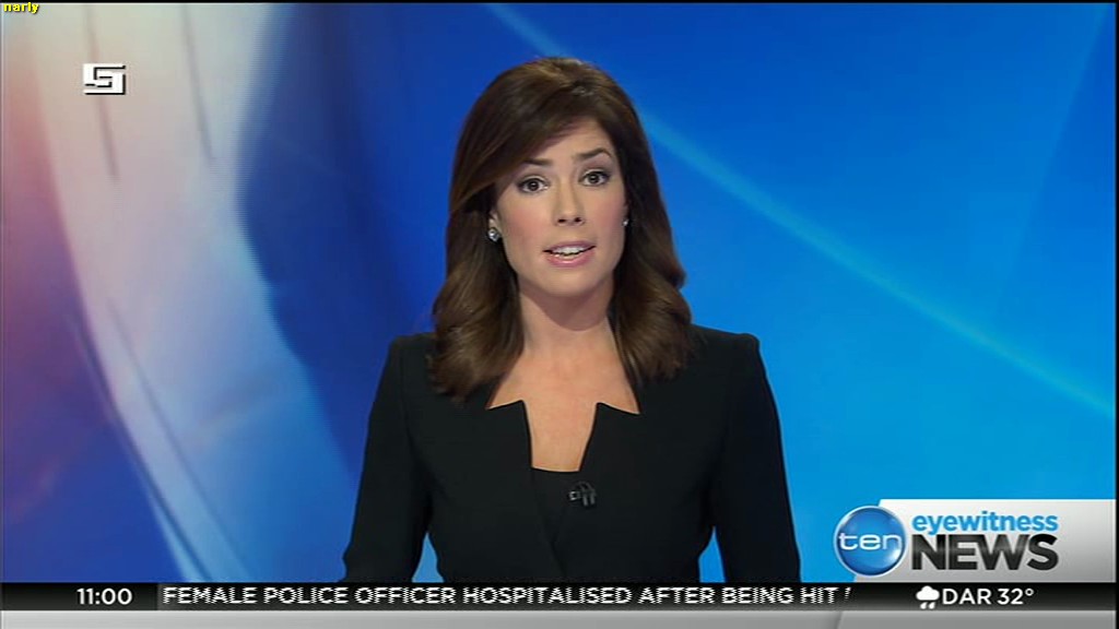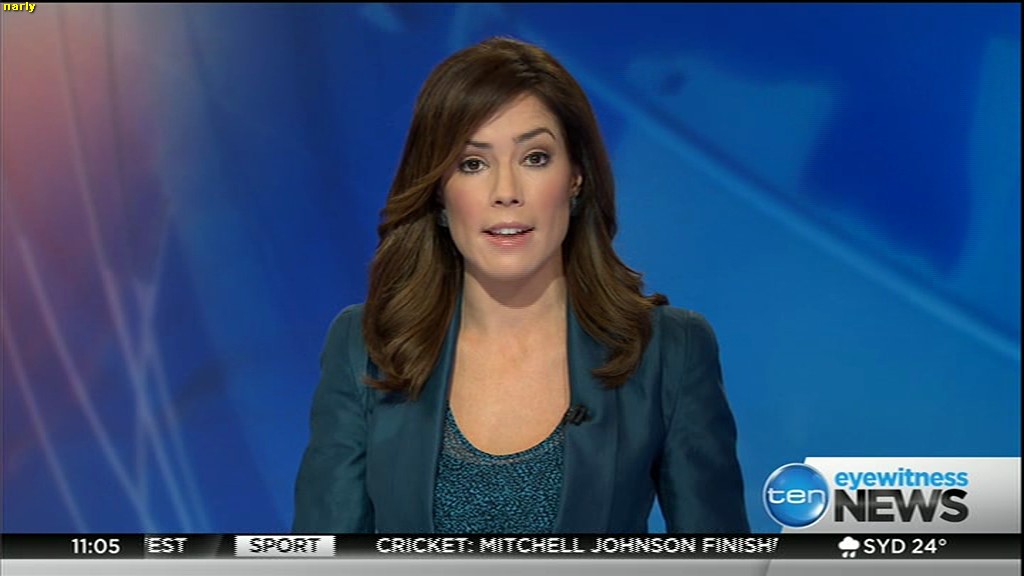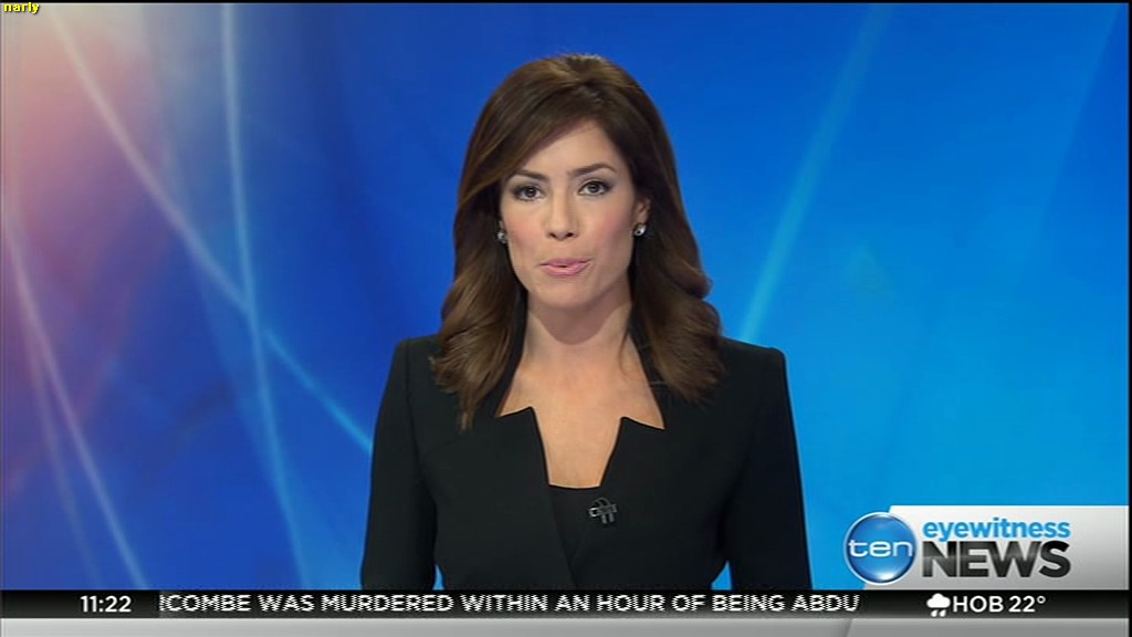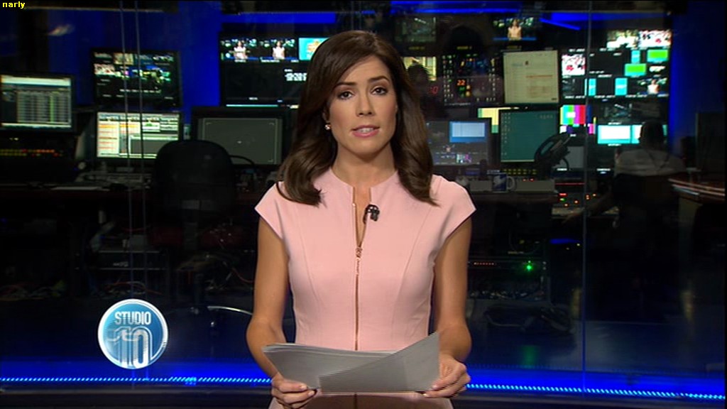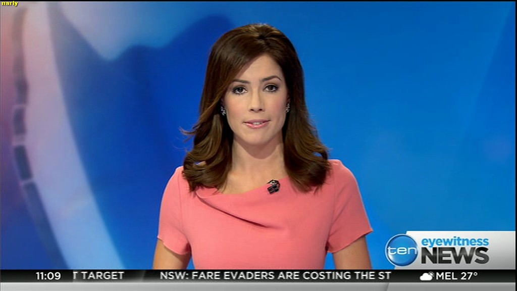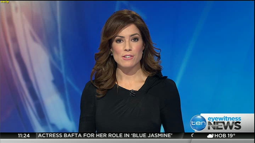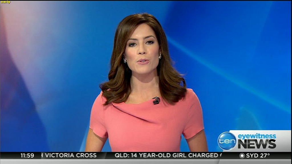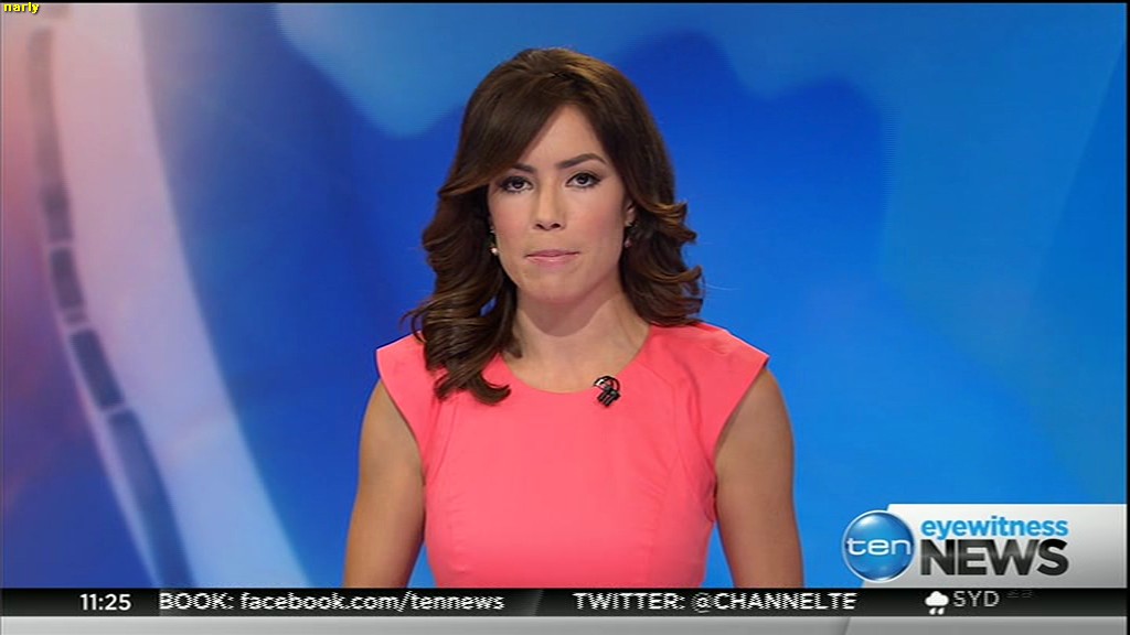 Ladies bringing us the news. Hermione Kitson is showing some leg.  BTW, She was born in New Zealand and is 30 years old.