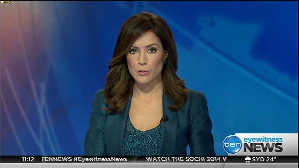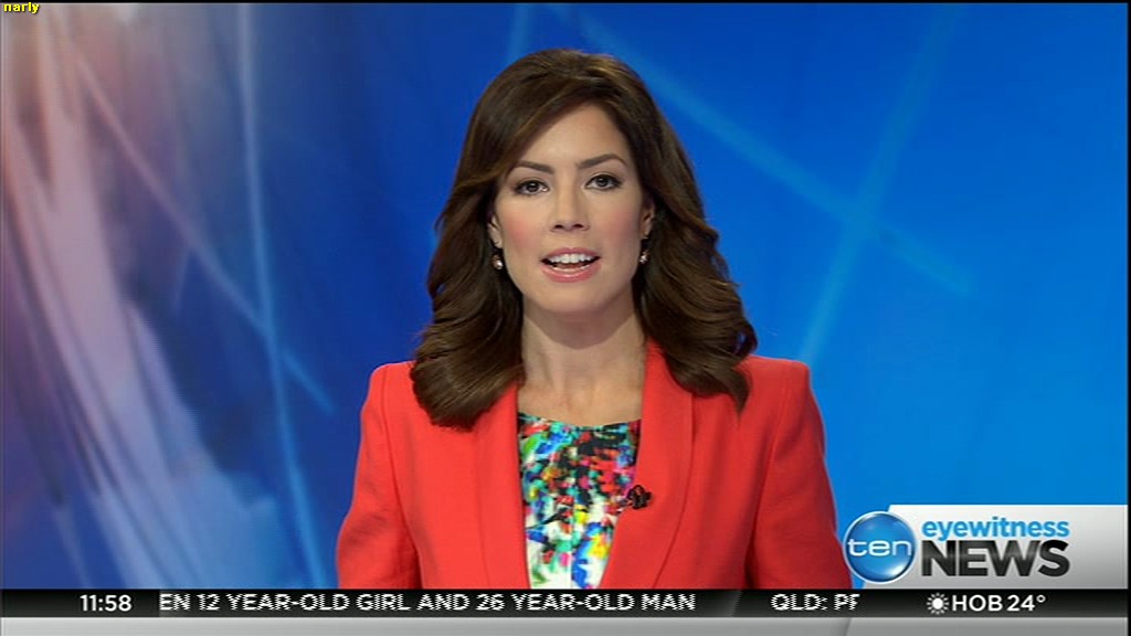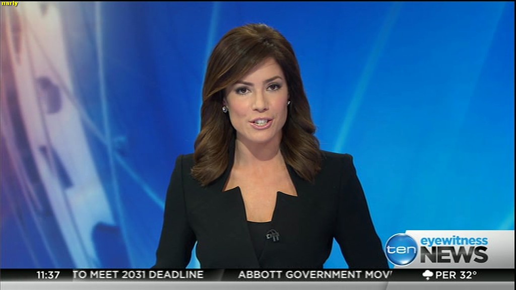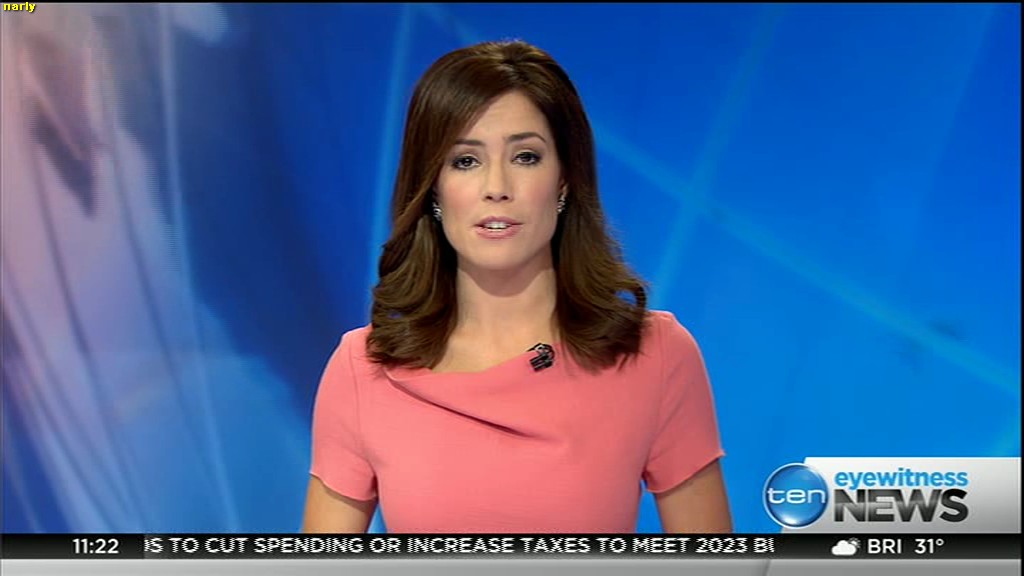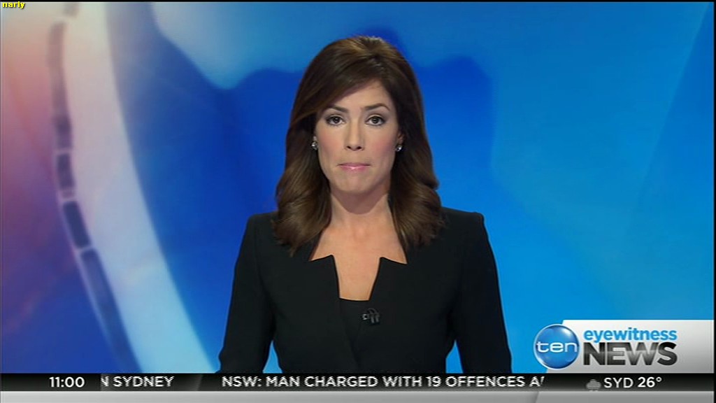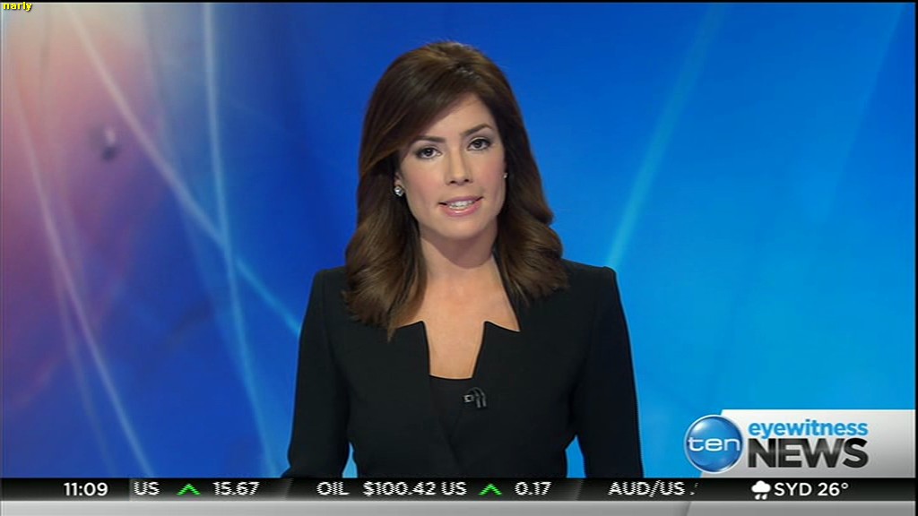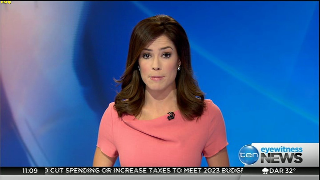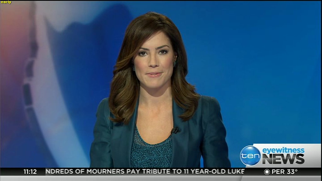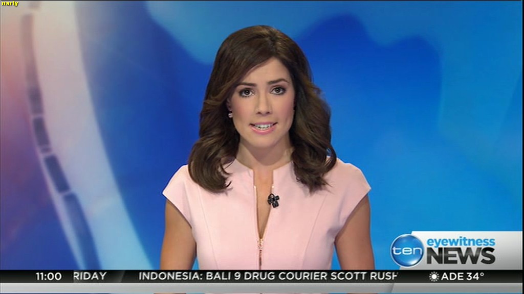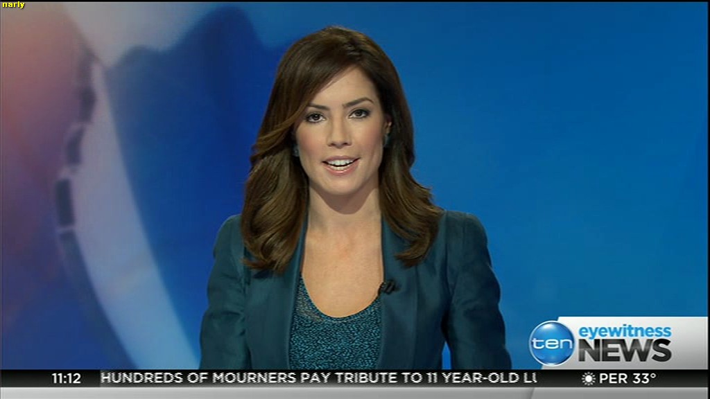 Ladies bringing us the news. Hermione Kitson is showing some leg.  BTW, She was born in New Zealand and is 30 years old.
