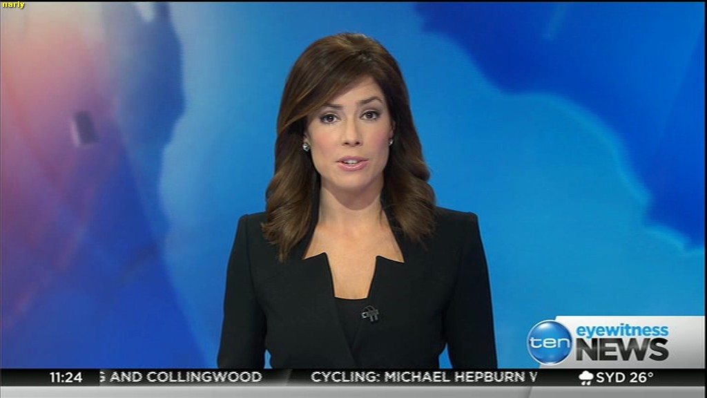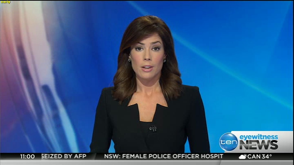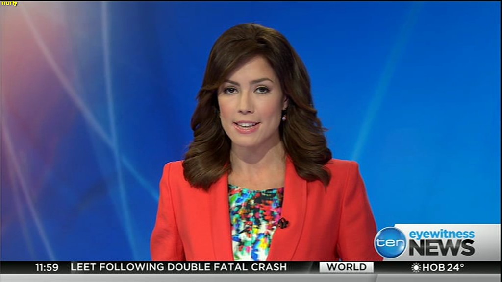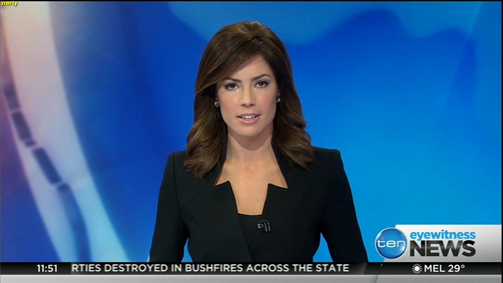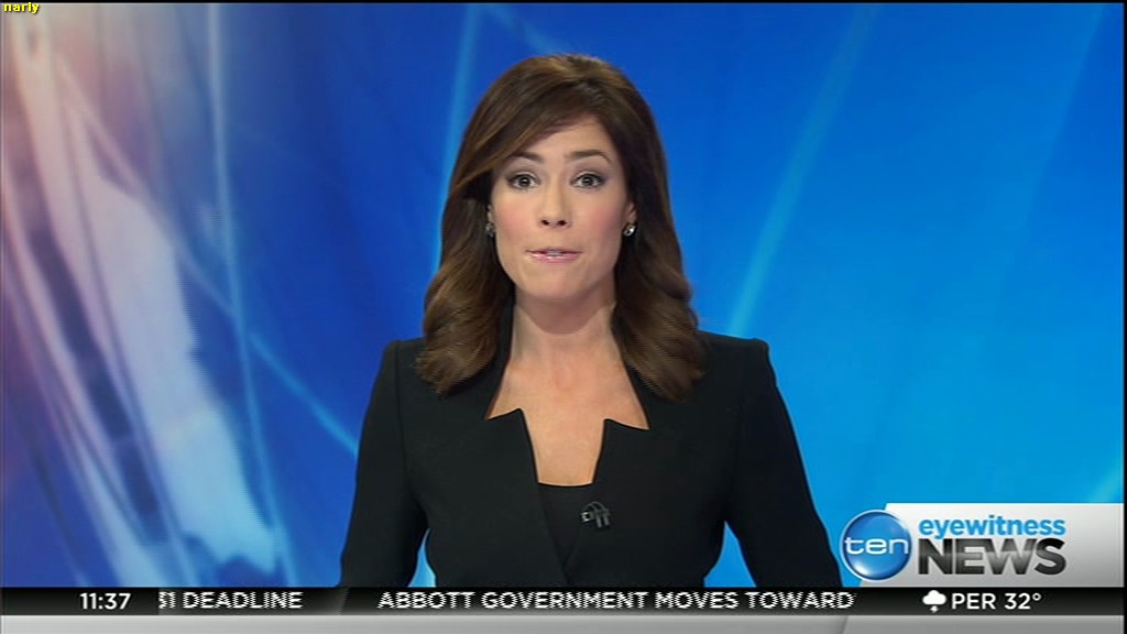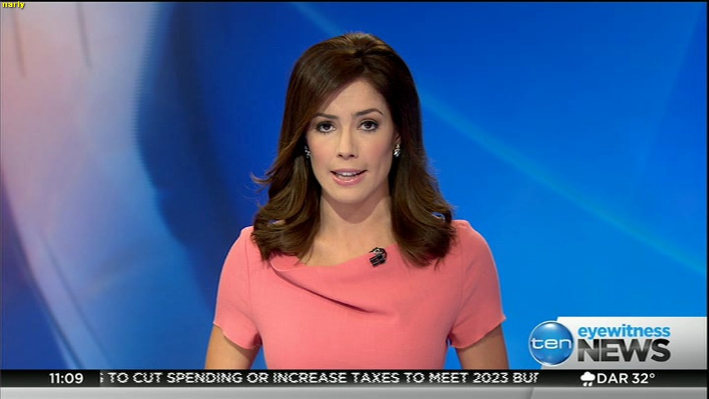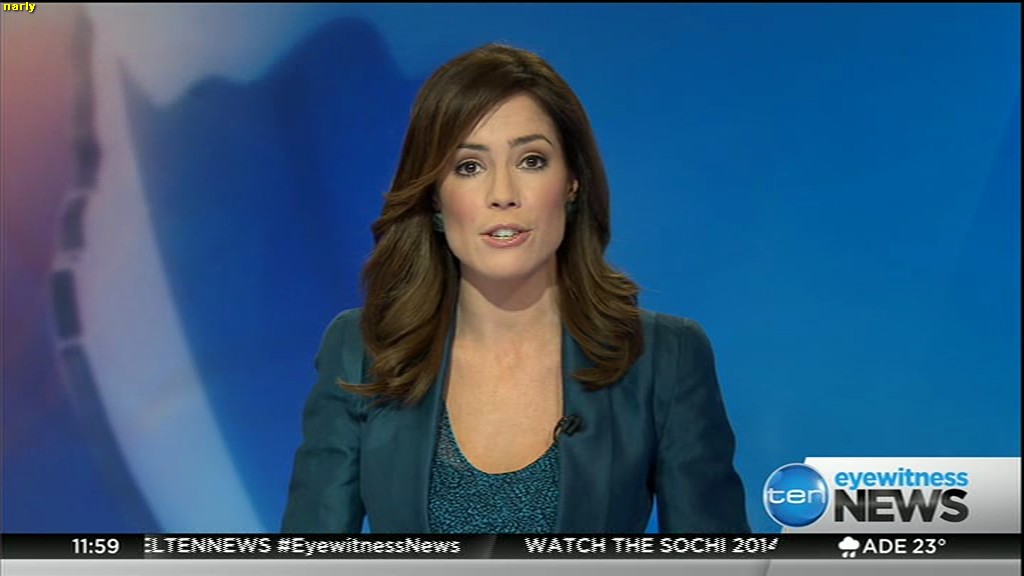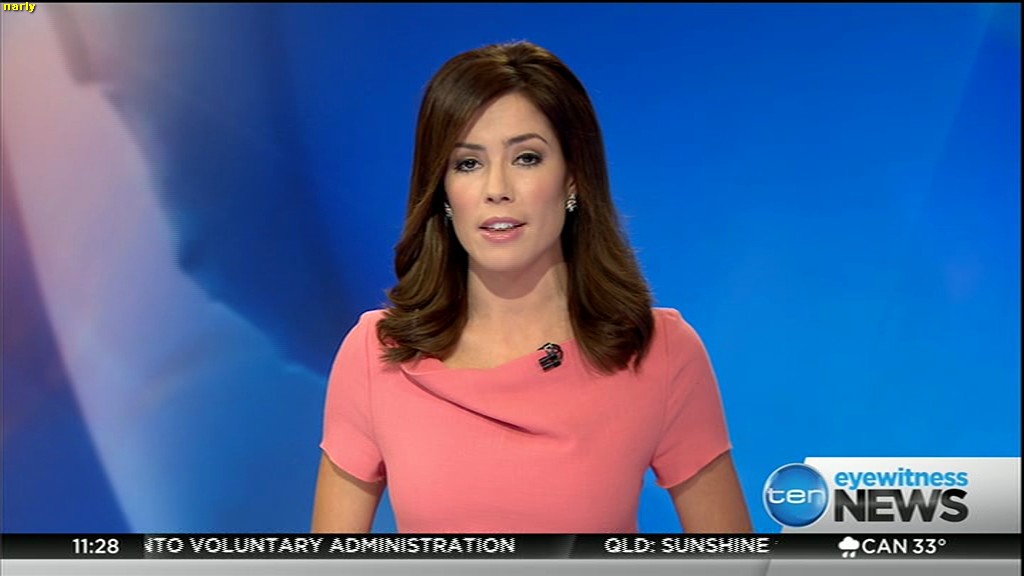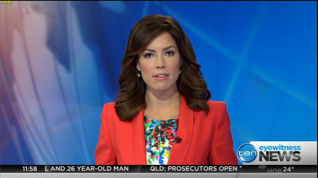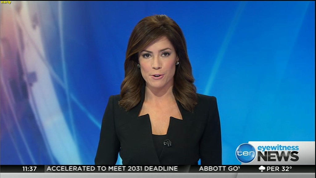 Ladies bringing us the news. Hermione Kitson is showing some leg.  BTW, She was born in New Zealand and is 30 years old.