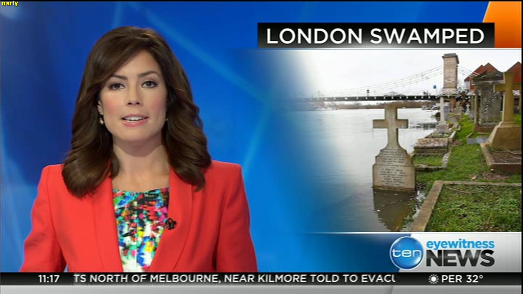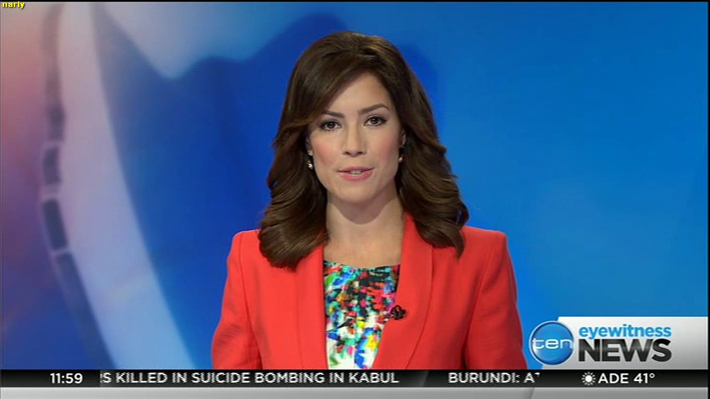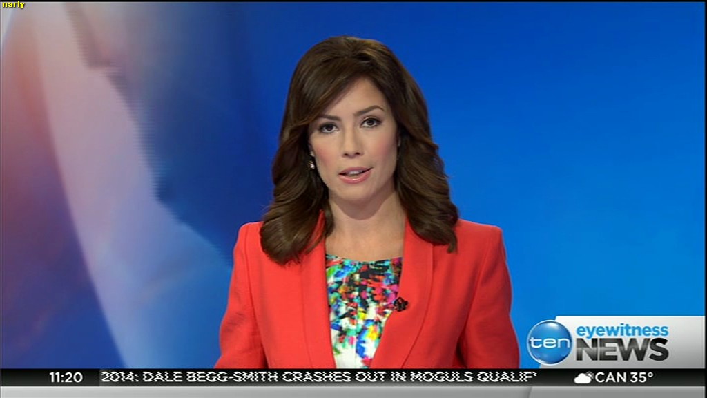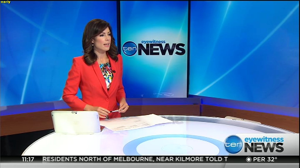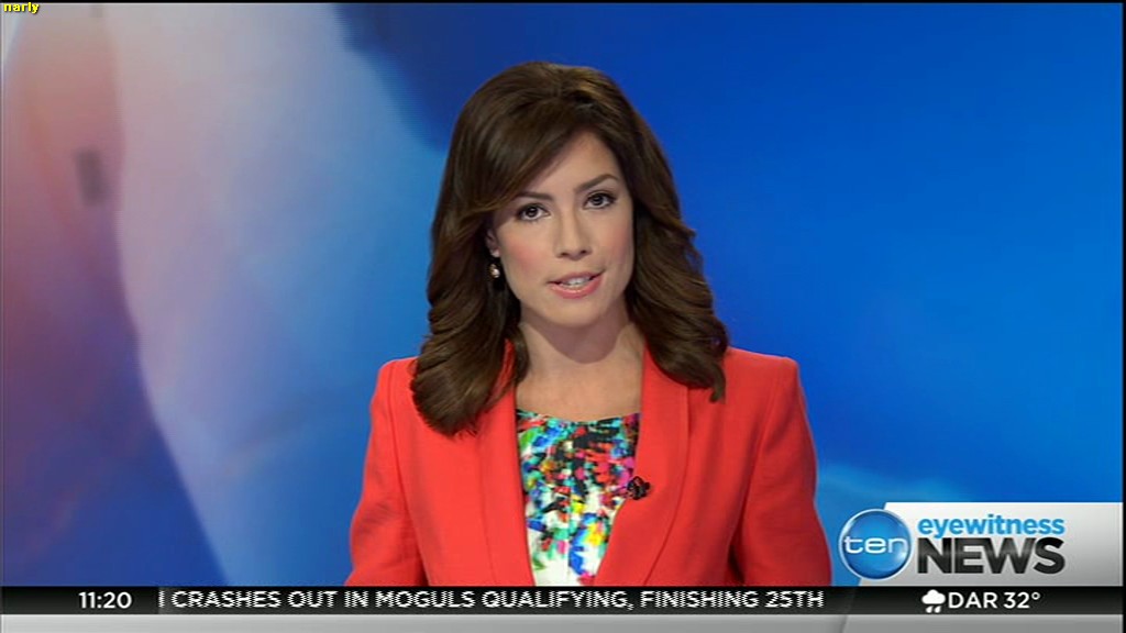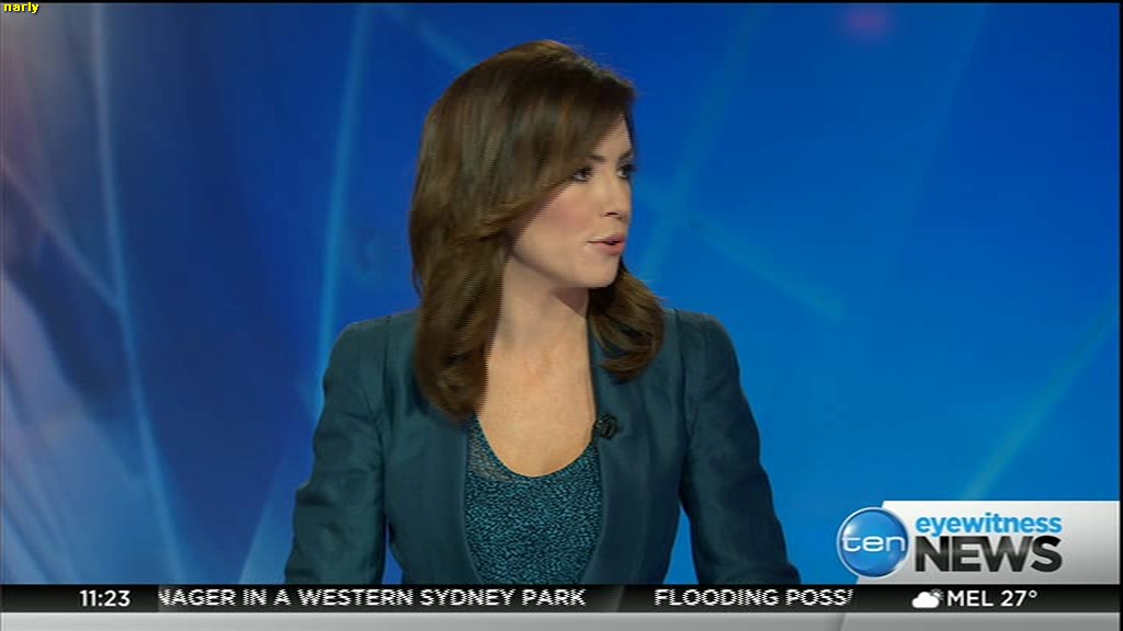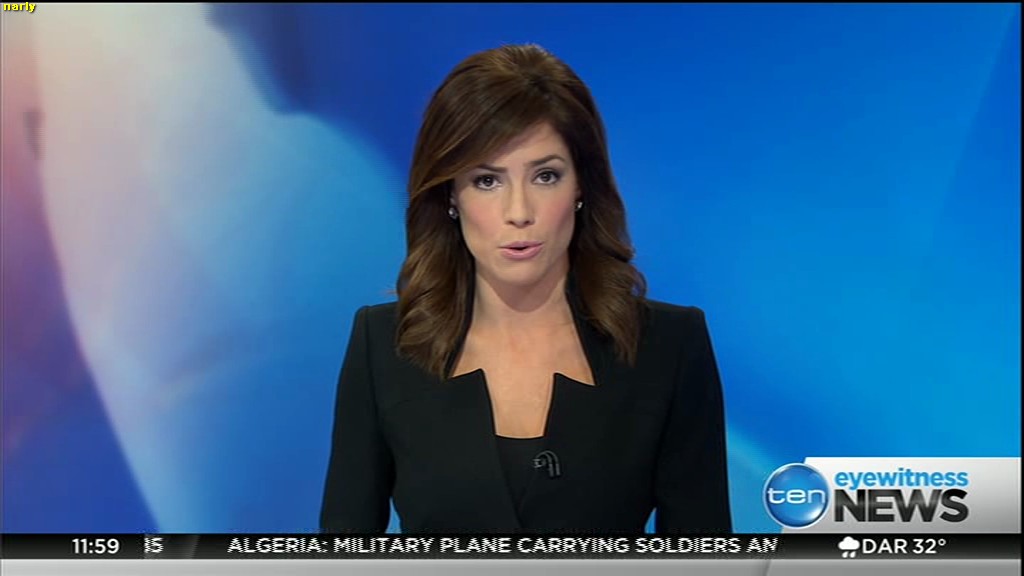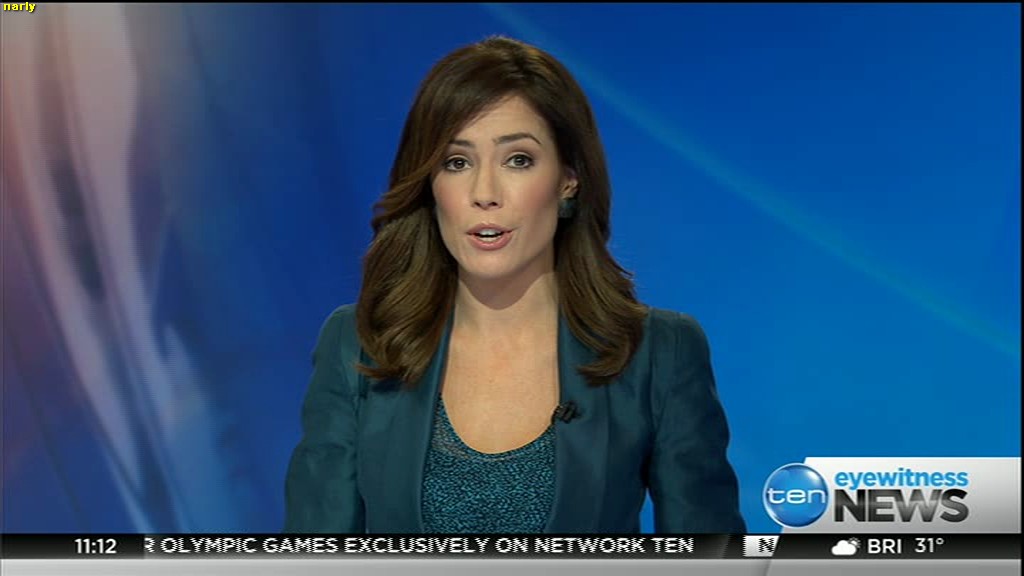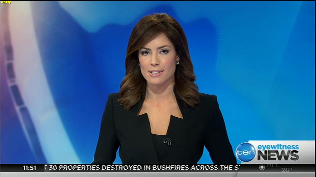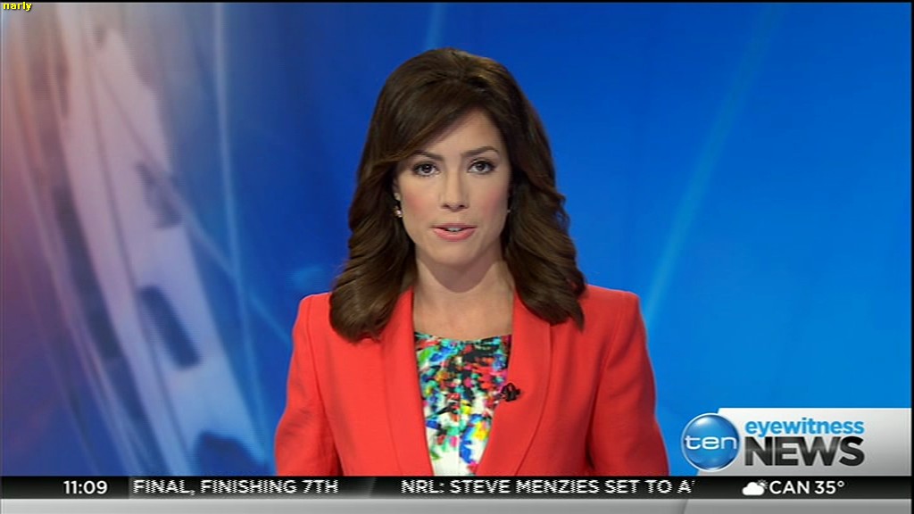 Ladies bringing us the news. Hermione Kitson is showing some leg.  BTW, She was born in New Zealand and is 30 years old.