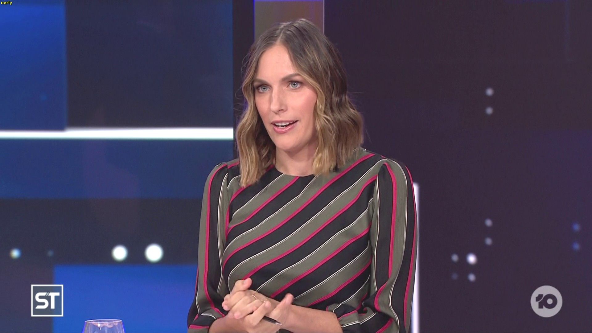 That was a very strange outfit last night. She looked like she was about to fall over all the way through the sport report. I'd still bang her after she hit the ground though