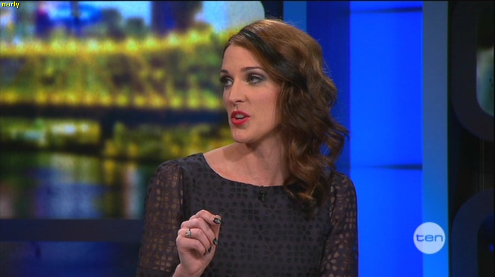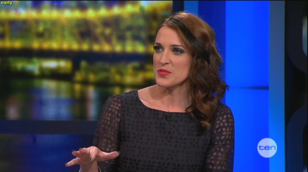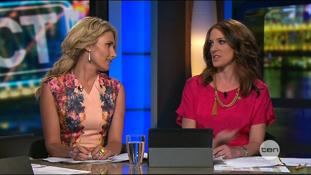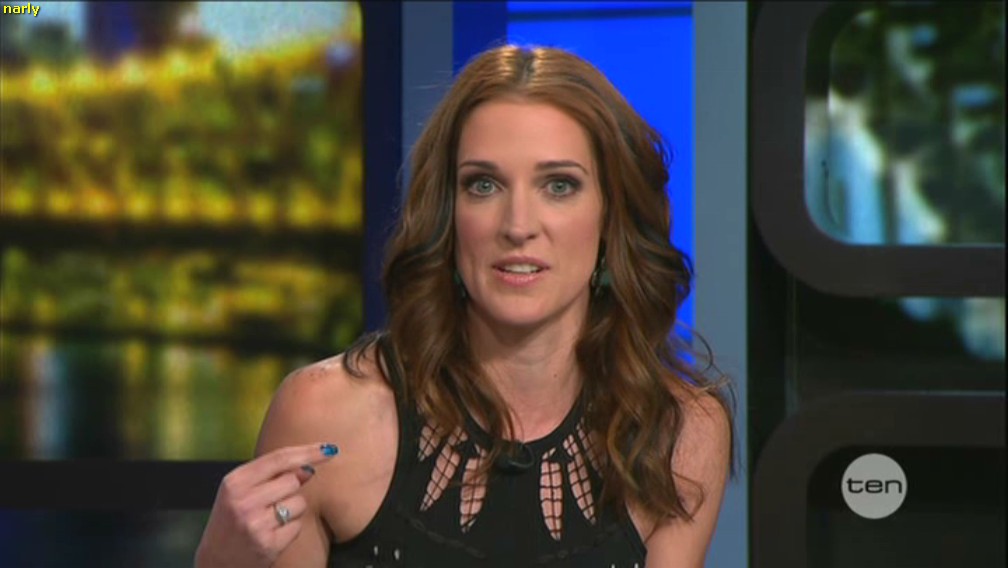 Lots of down blouse/cleavage of Jo on Slide Show Ch7. Not in a position to cap sorry.