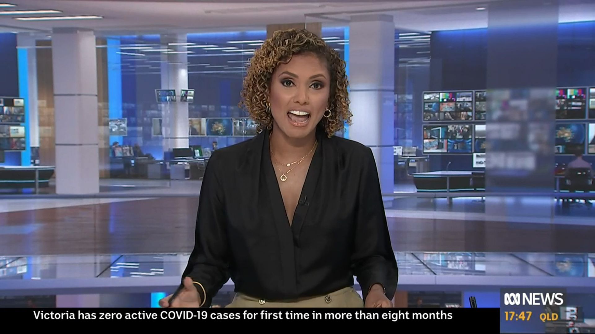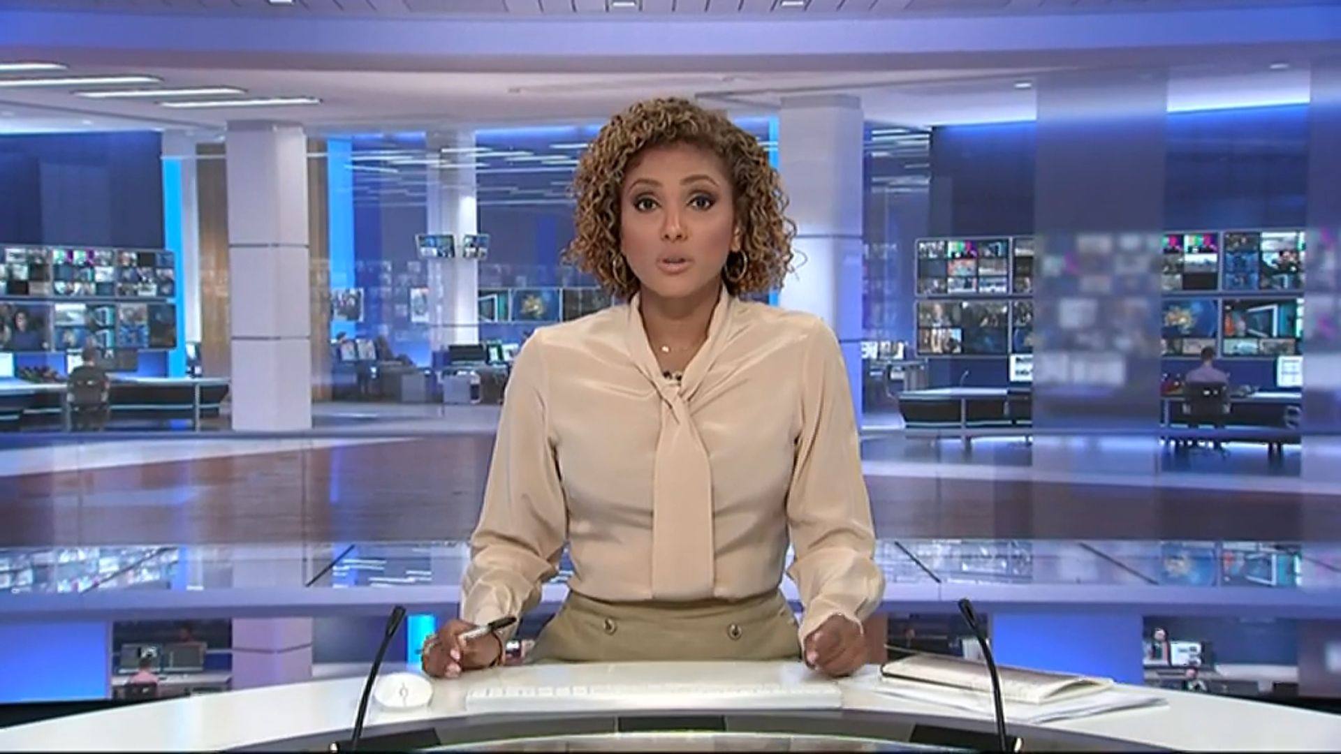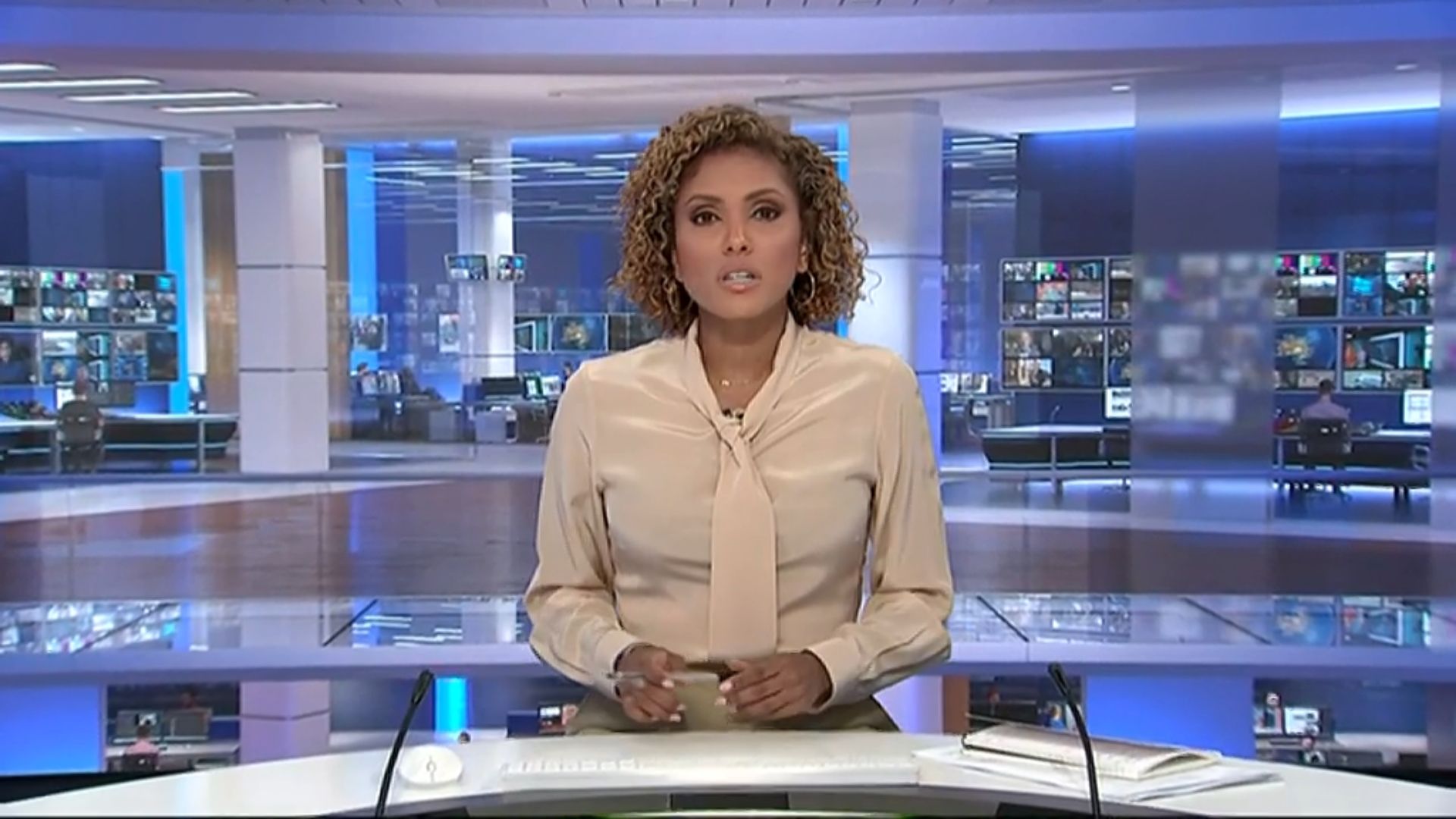 Looking very nice in a short dress today on 12pm News