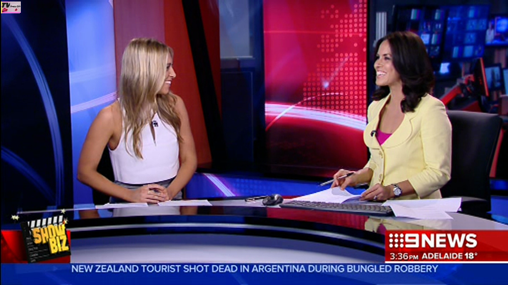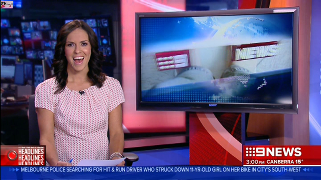 There was a nine news chatroom segment where she lifted up her dress to show her leggings, I have been searching for it for days but can't find it. Please someone help!