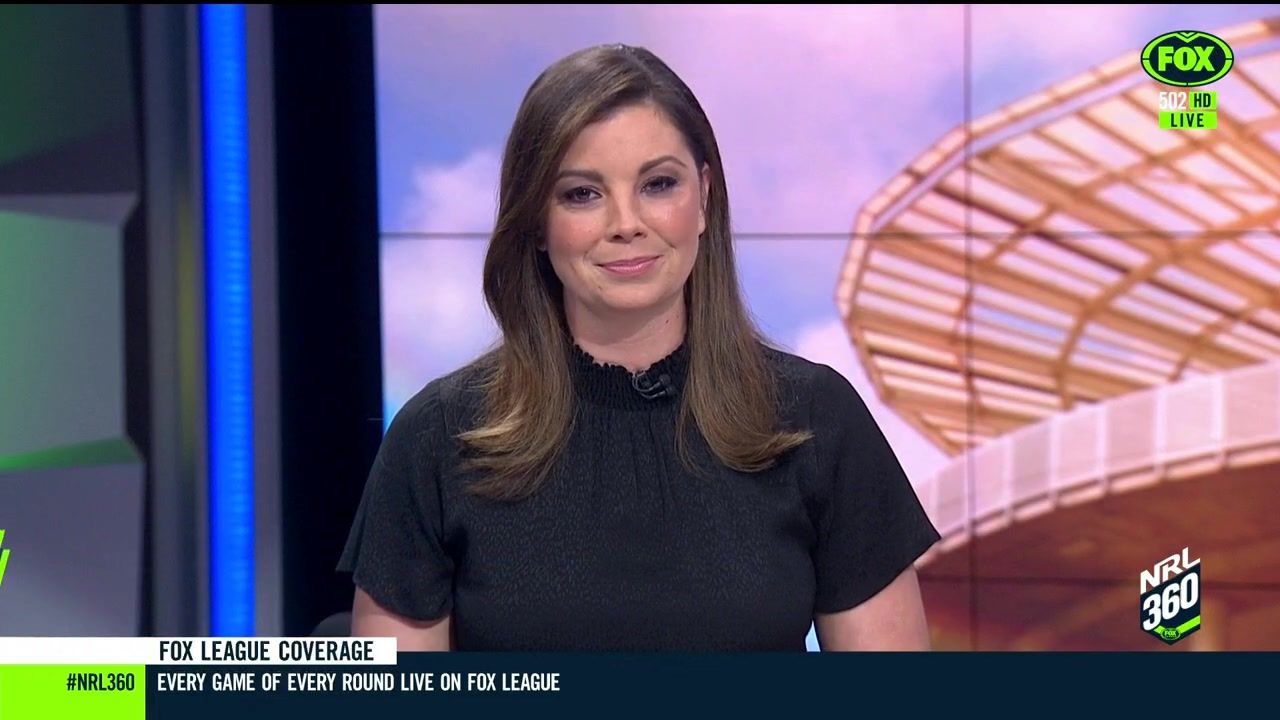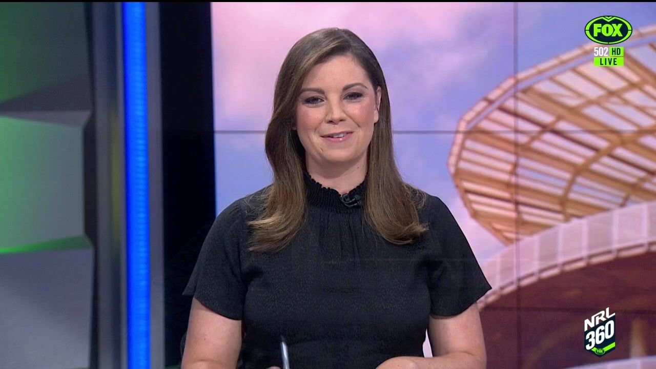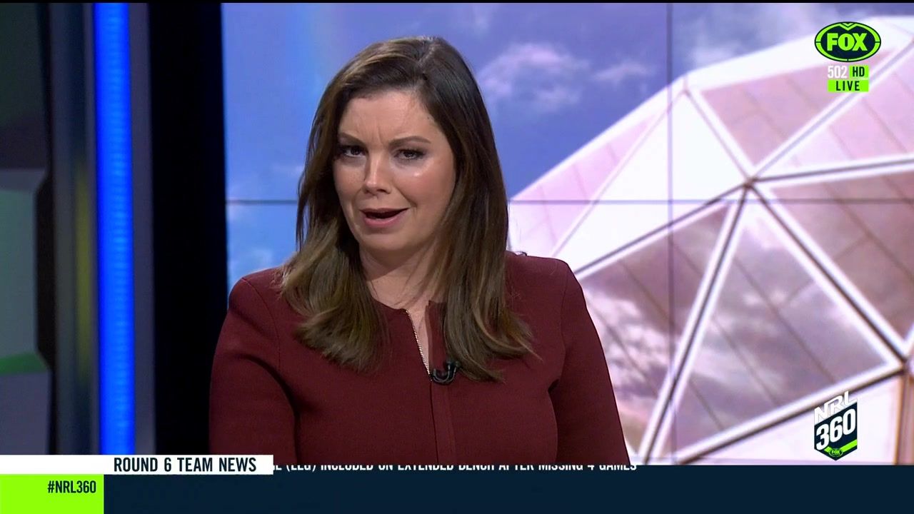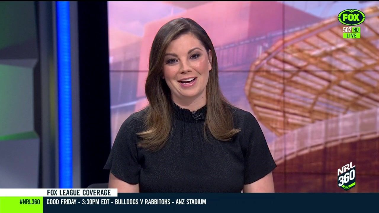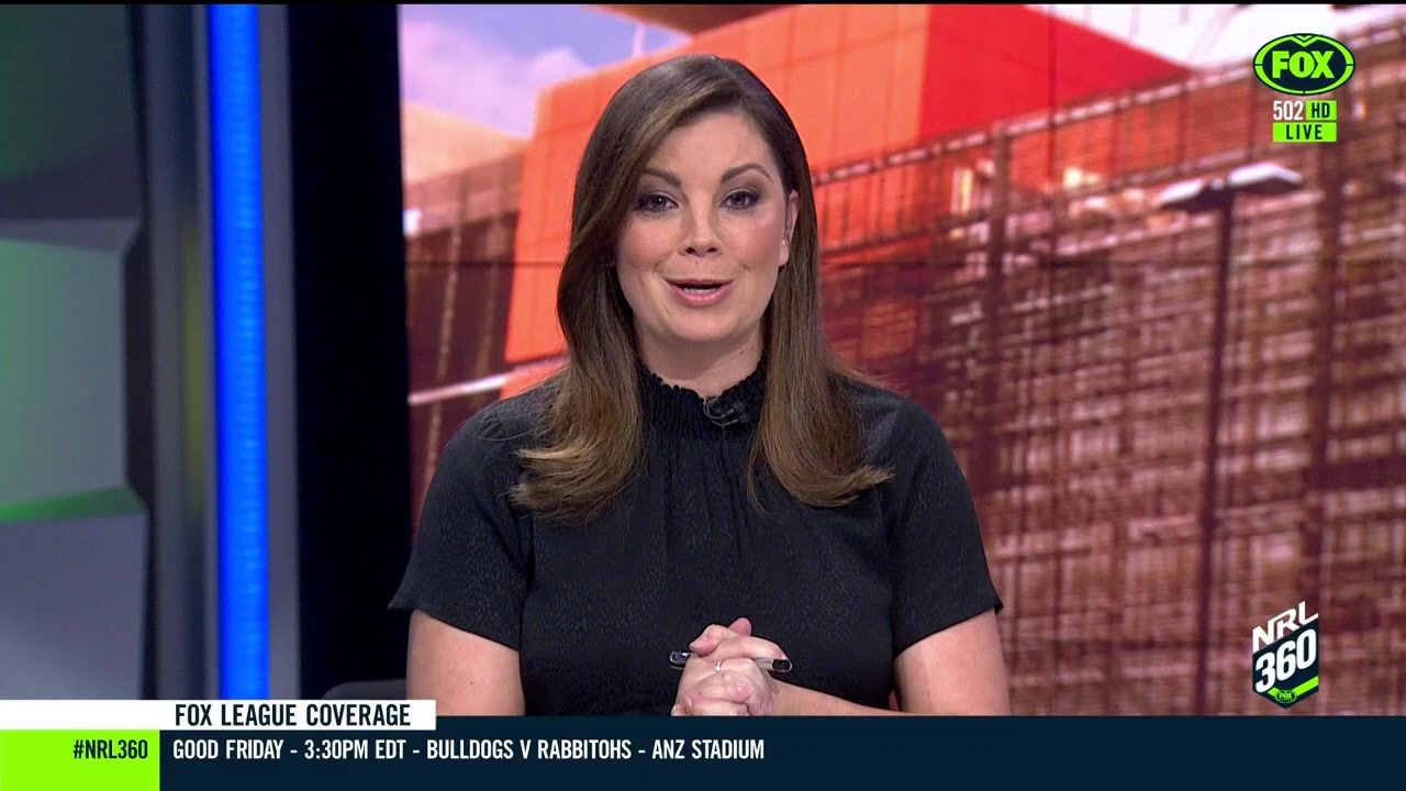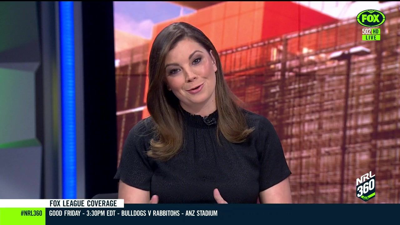 NRL 360 17.04.19 Manning the desk while Iken is on holiday. Atleast she's not wearing black for once.